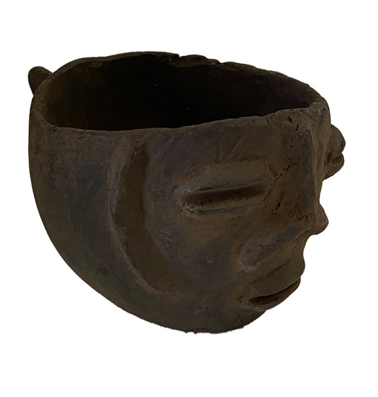 #3745 African Kuba Wooden Cup Figural Head Congo 4" H