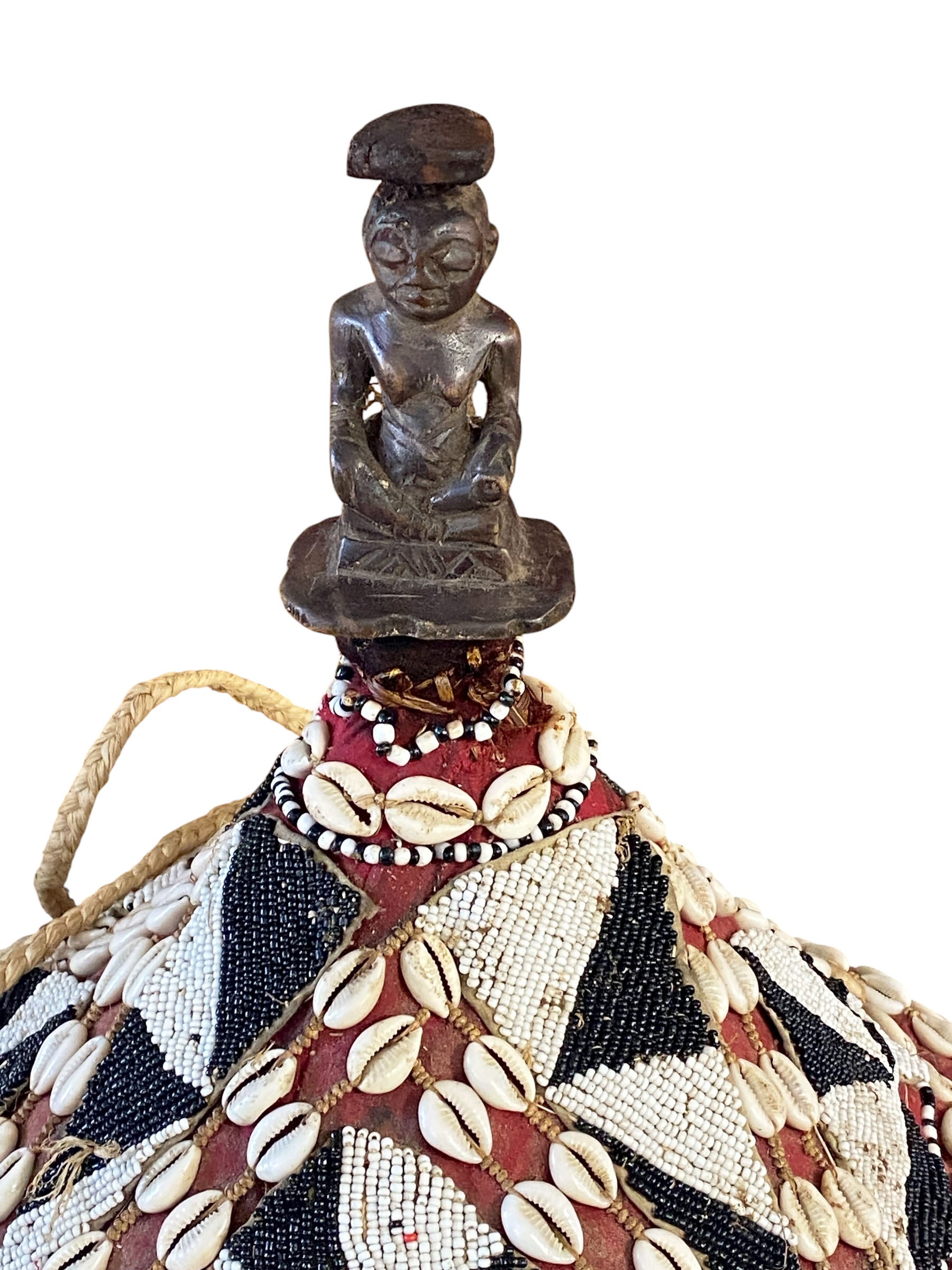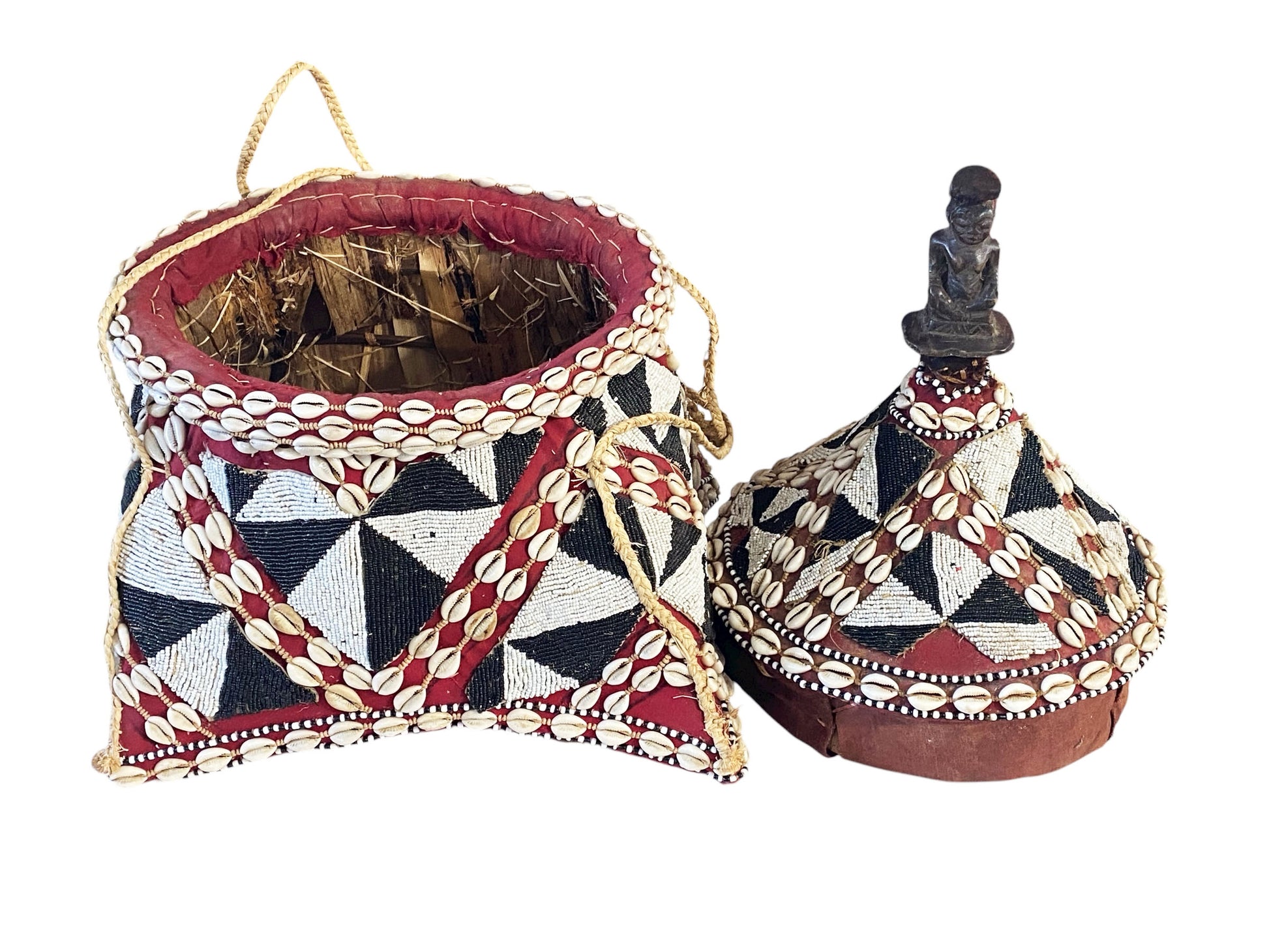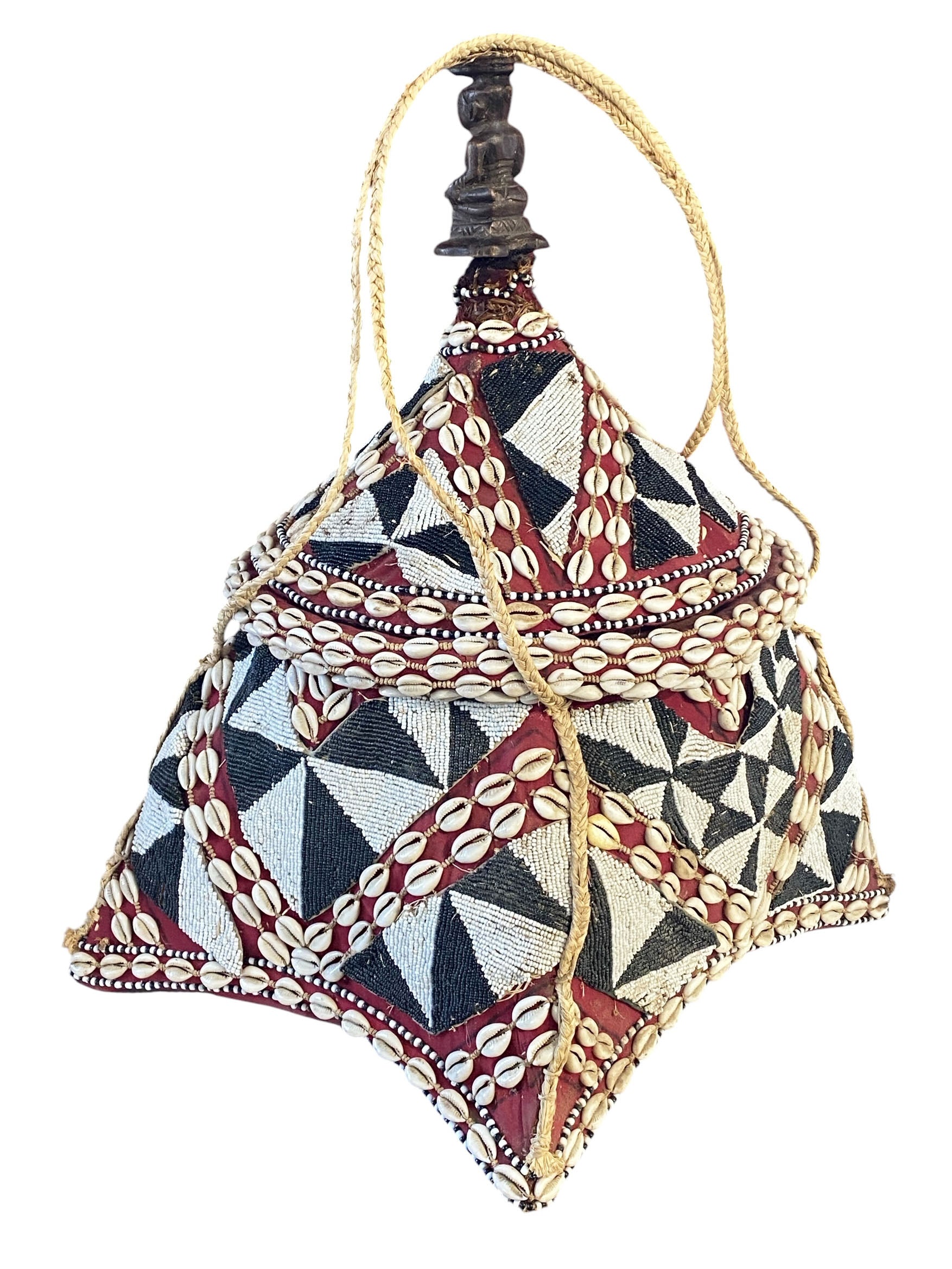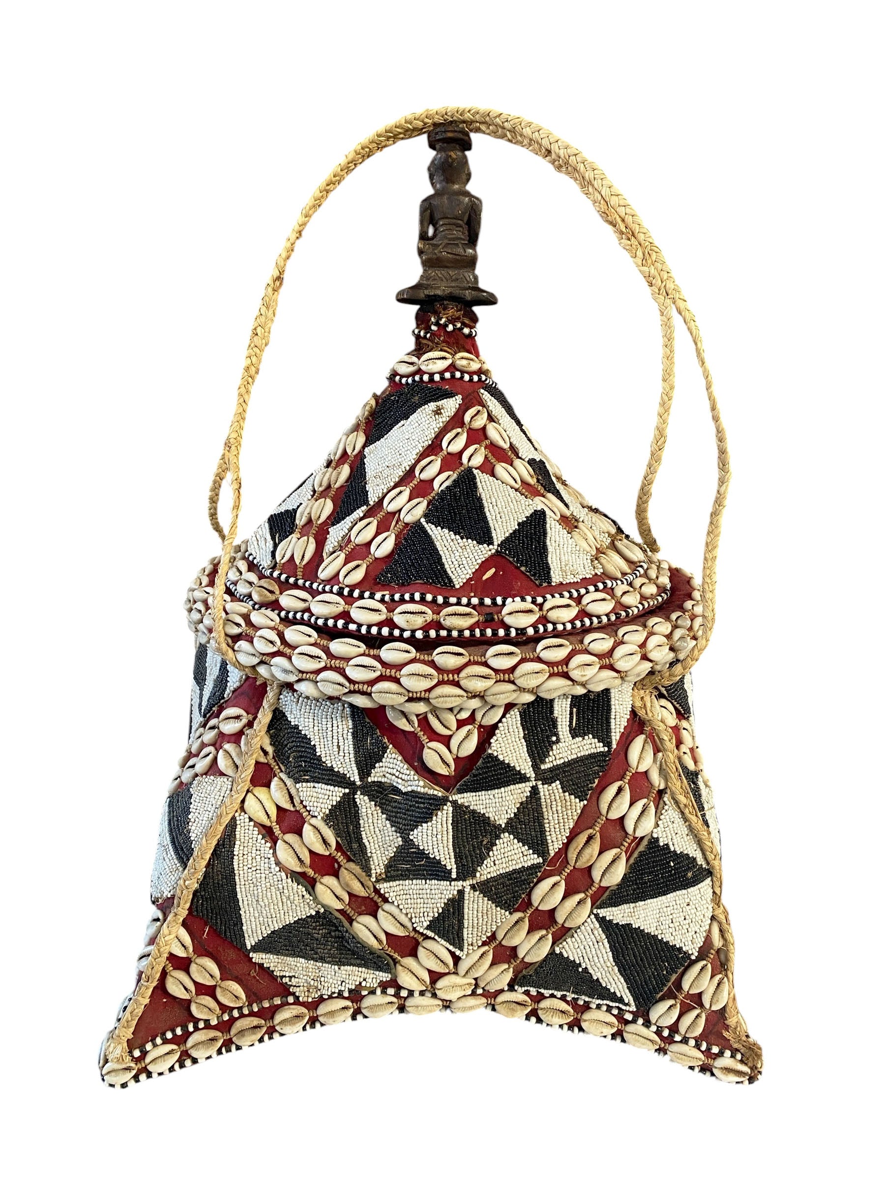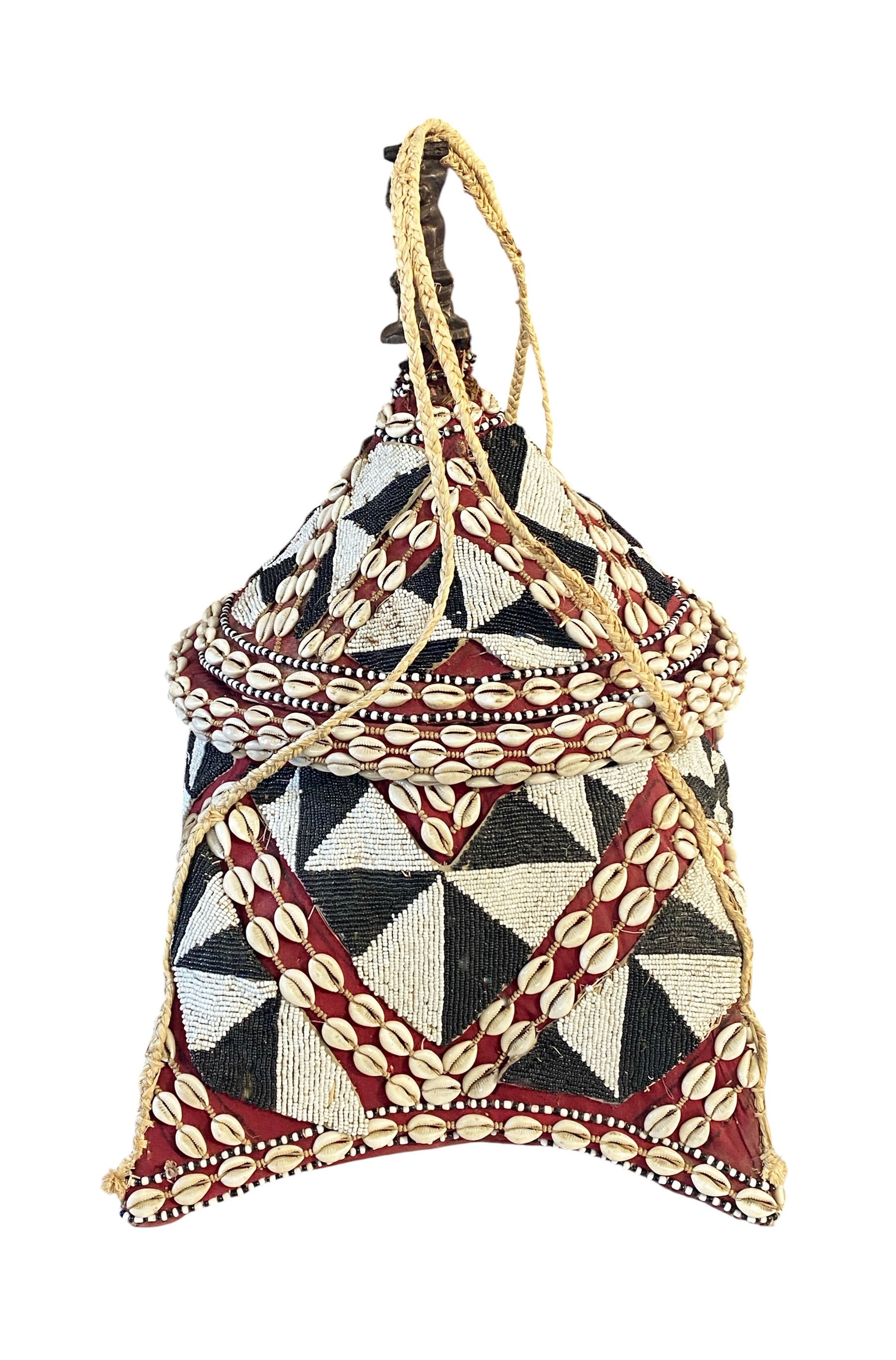 #1124 Vintage Large Kuba Royal Beaded Basket Congo 22" H