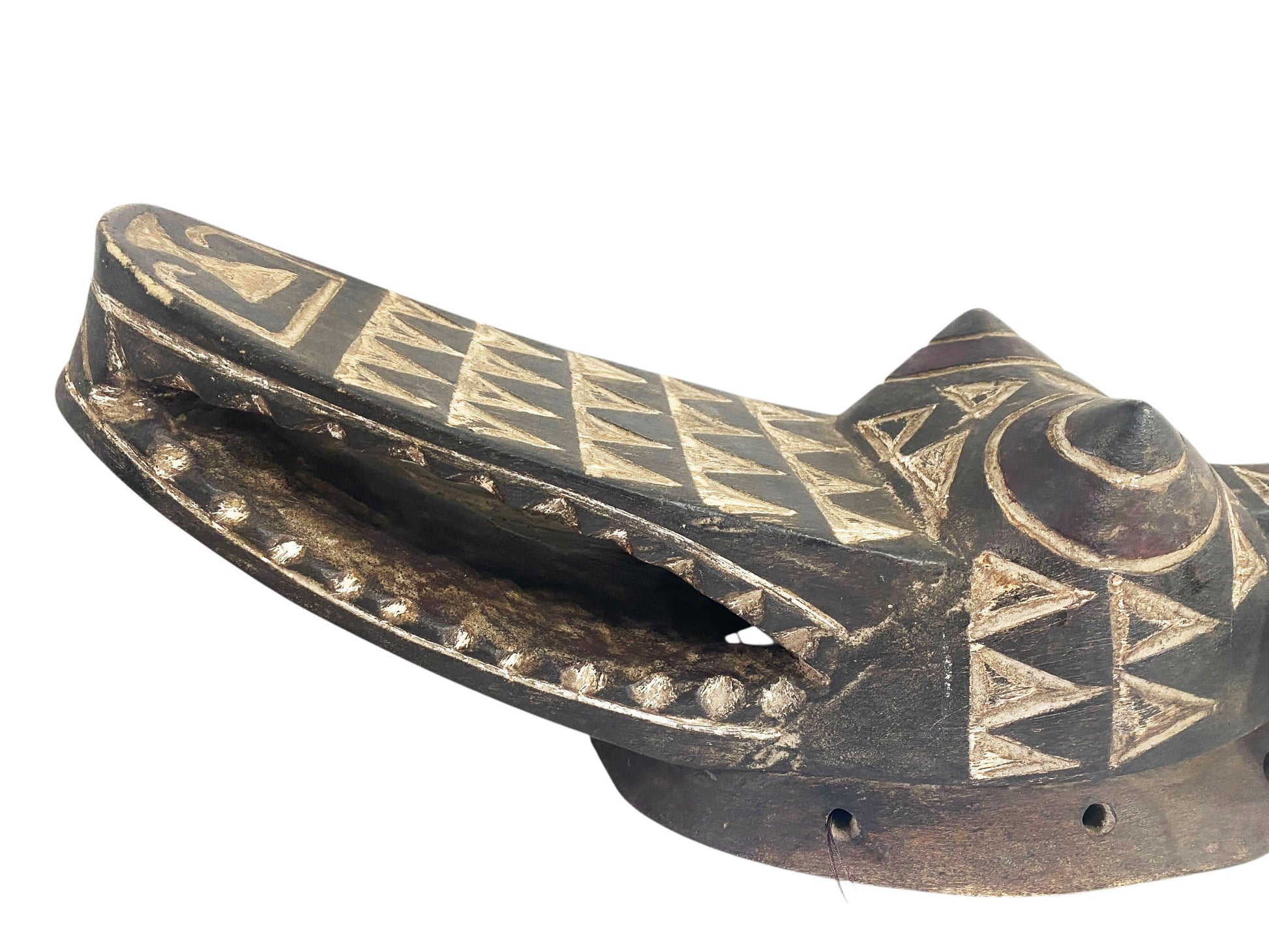 This Bobo crocodile mask functions as a versatile sculptural installation, equally commanding whether mounted as a wallop on the floor.