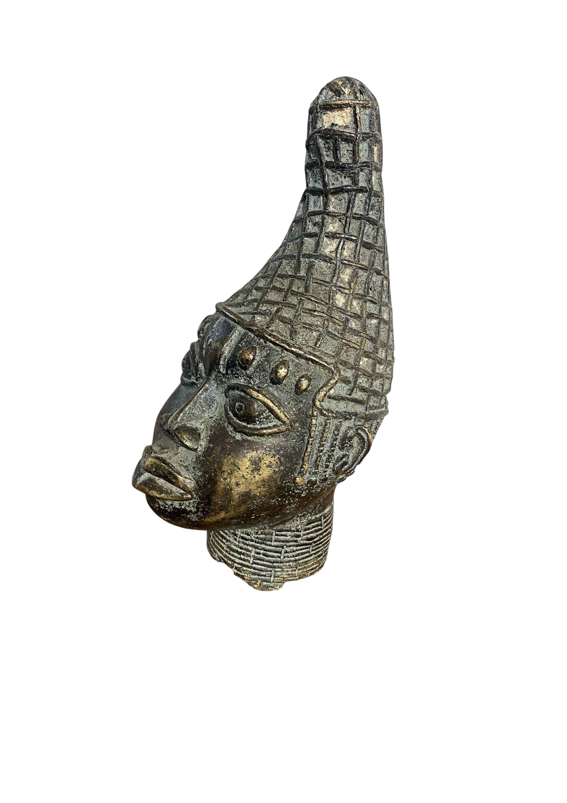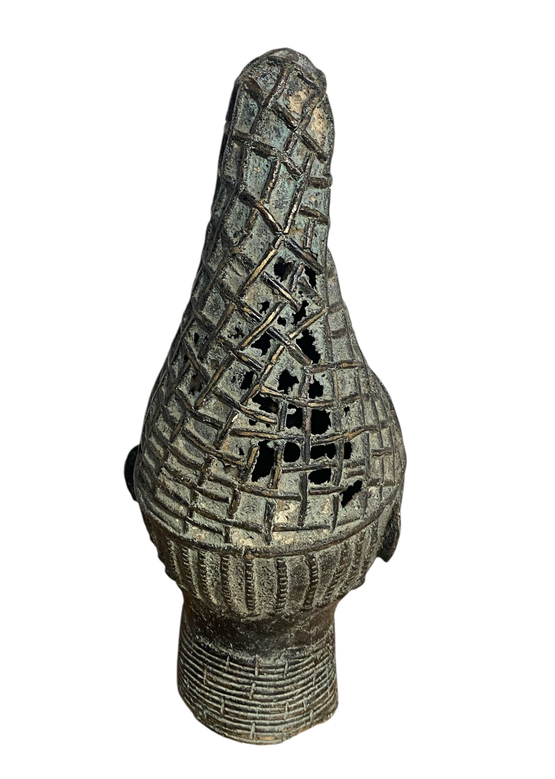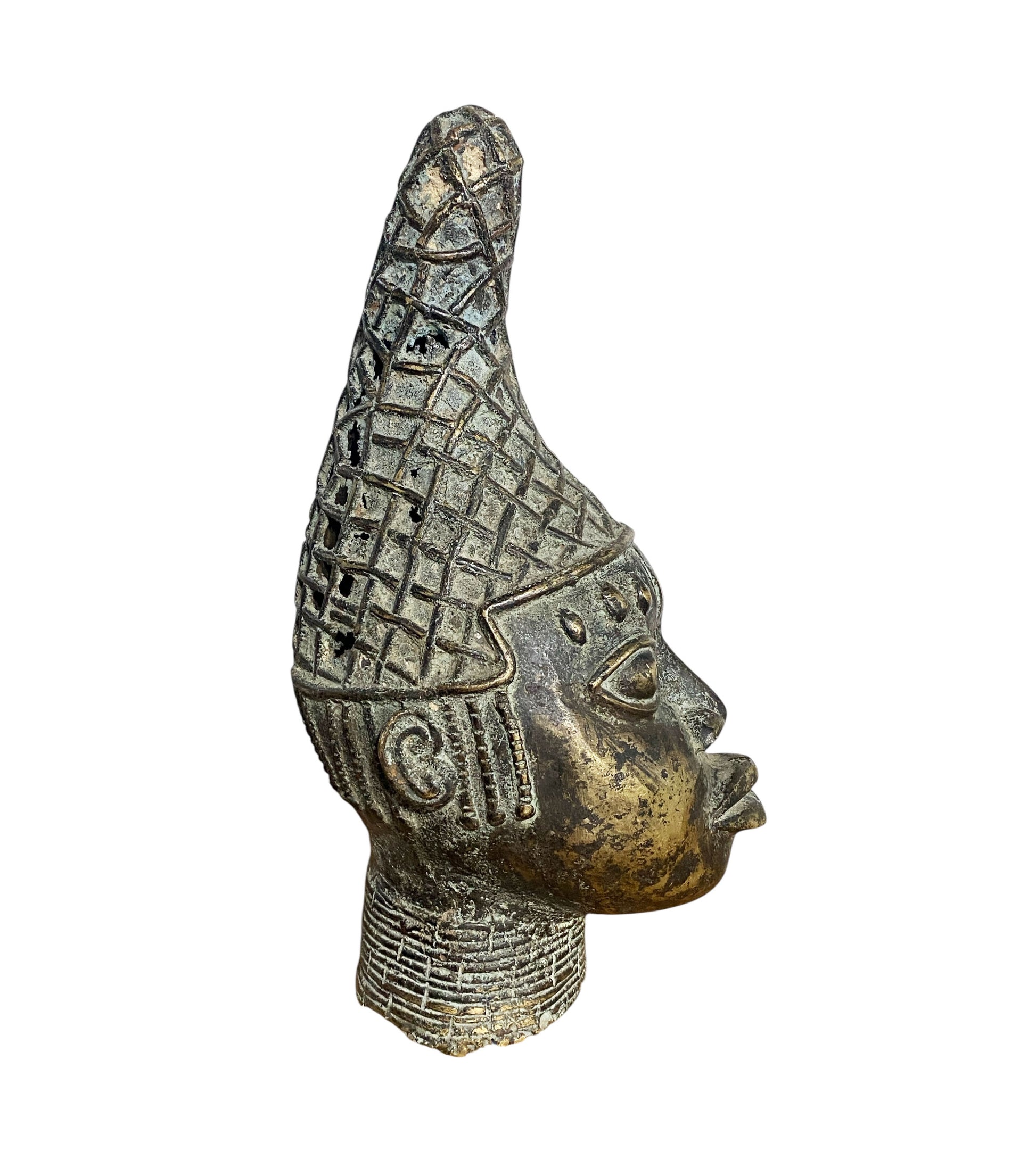 #1130 Vtg Benin Bronze Head of a Queen Nigeria 14" H