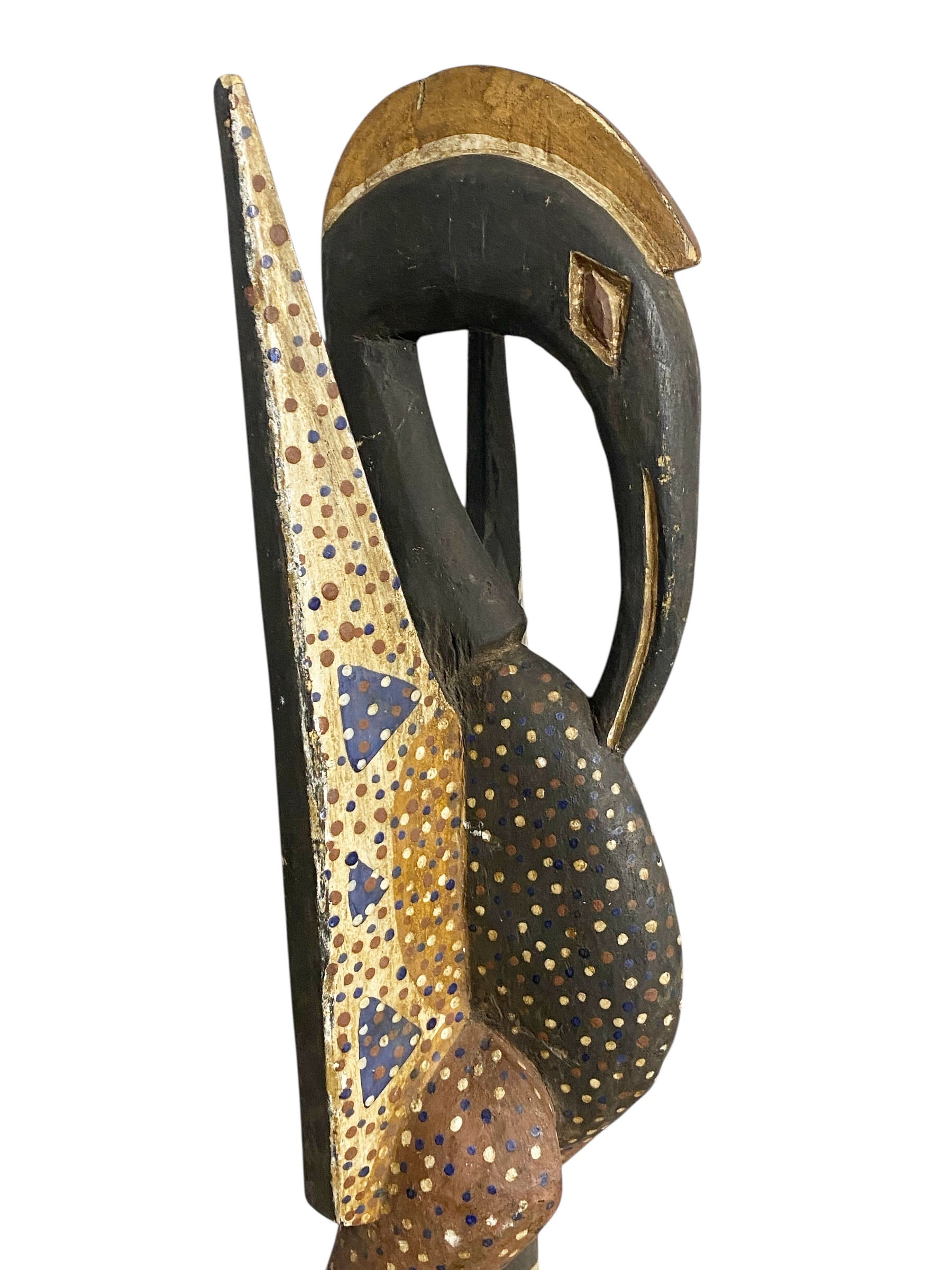 #1140 Senufo Wood sculpture of a Hornbill Bird 25.5"