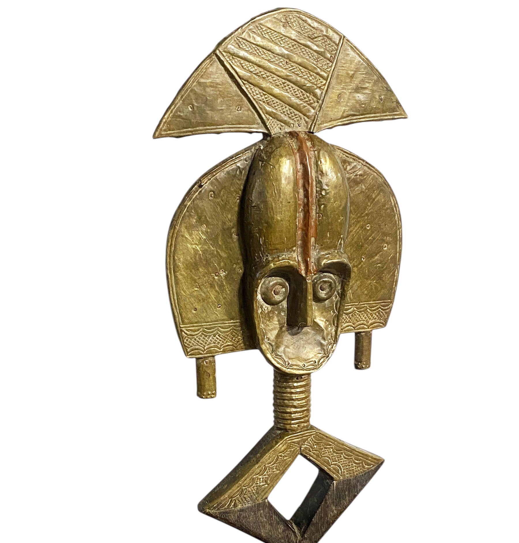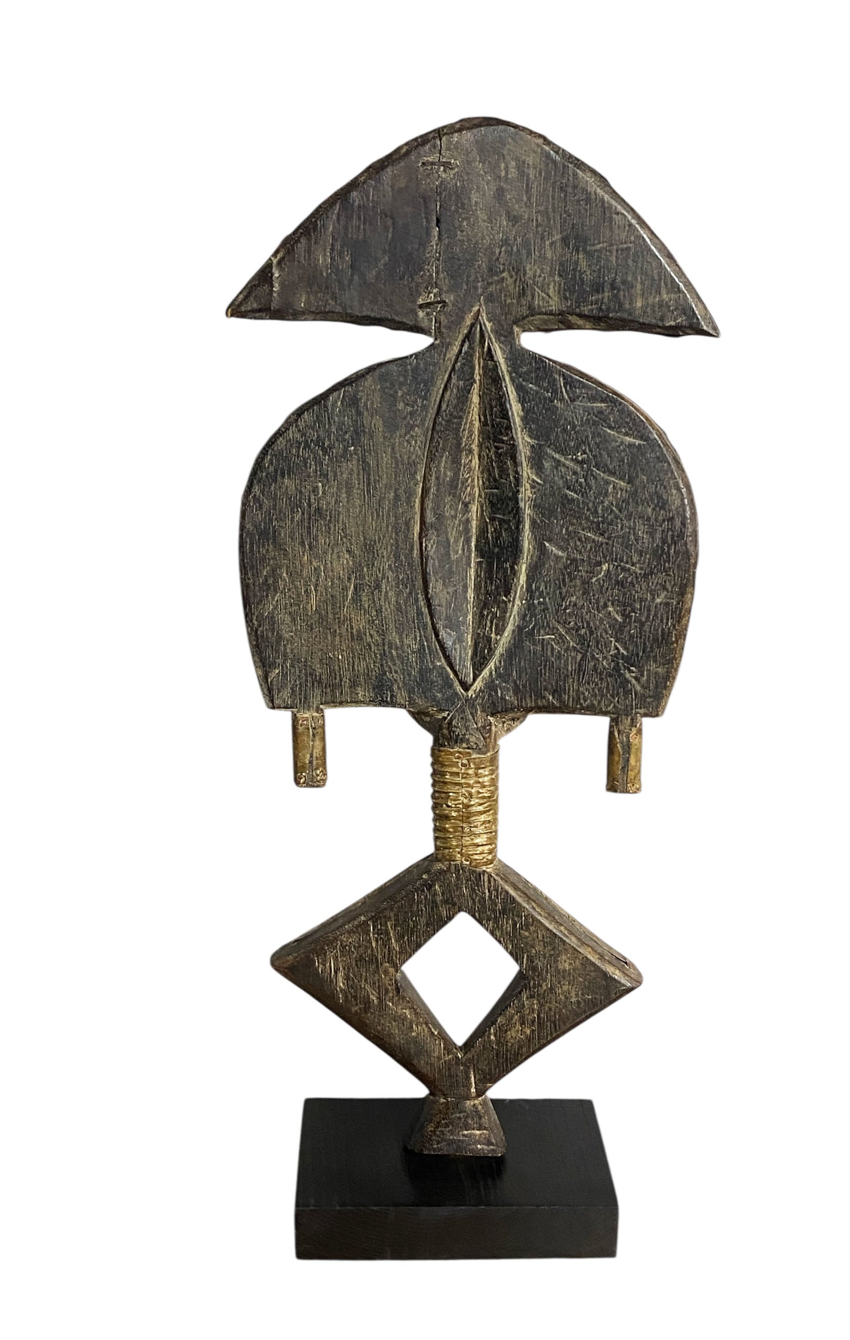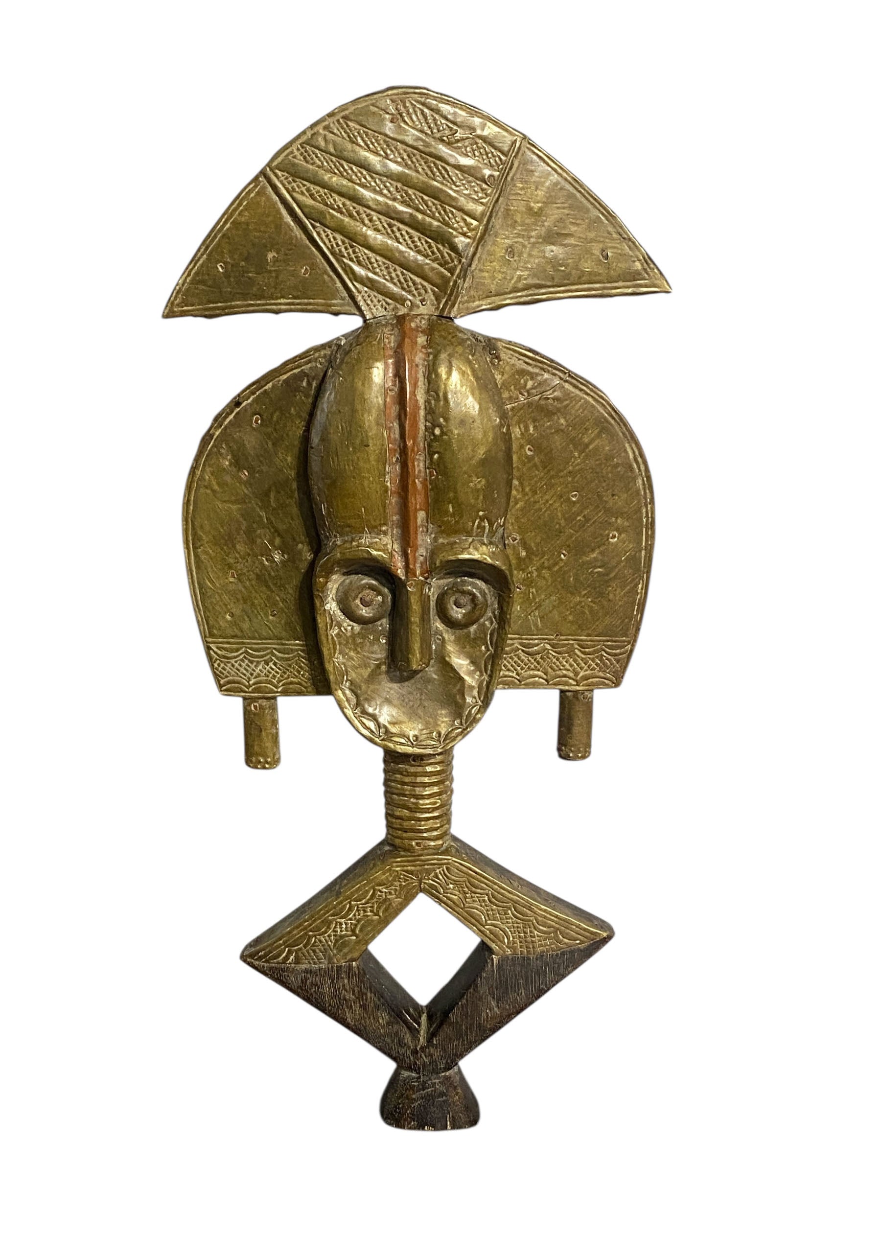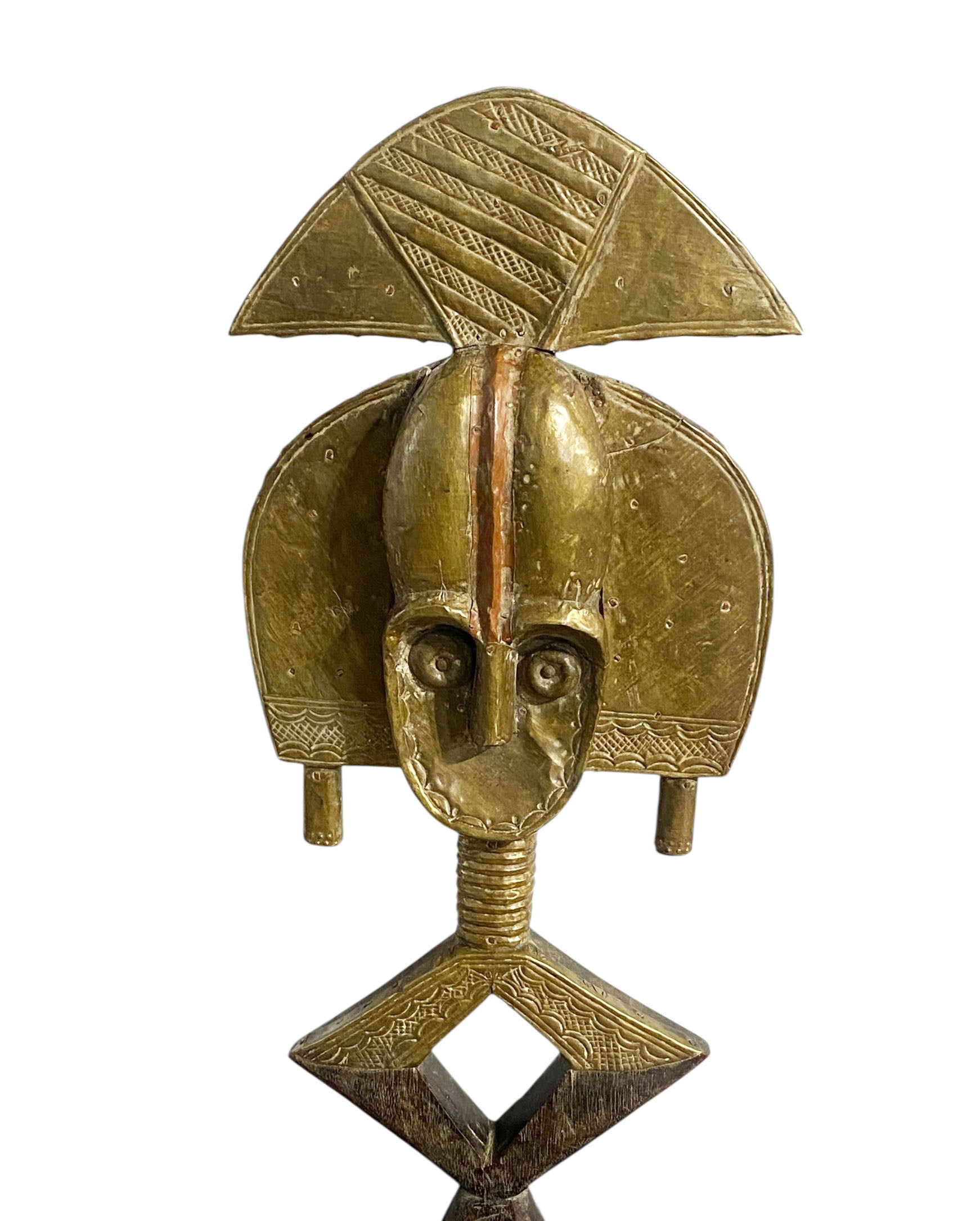 #1174 VTG Bakota Brass and wood Sculpture w/Stand 23" H