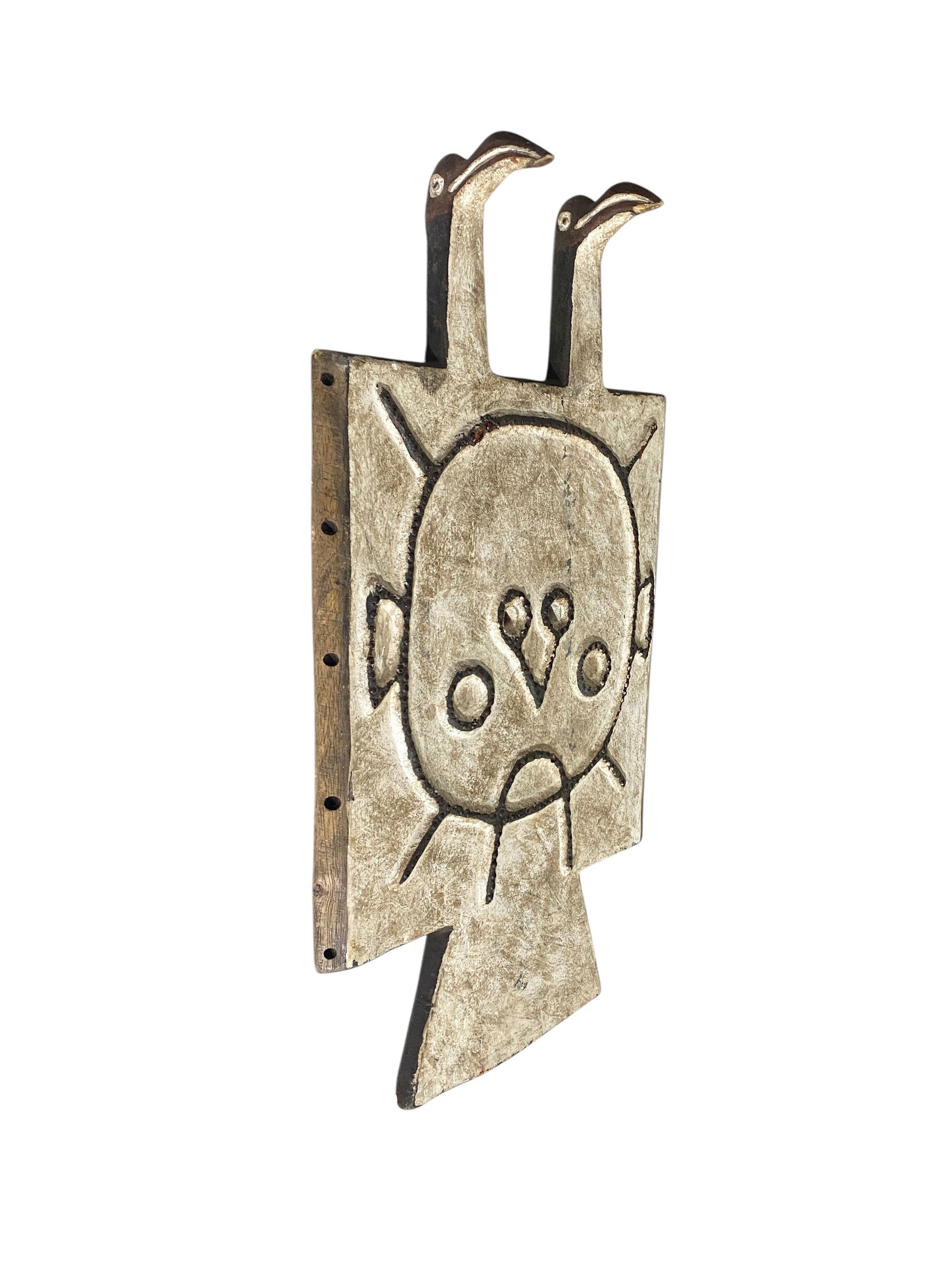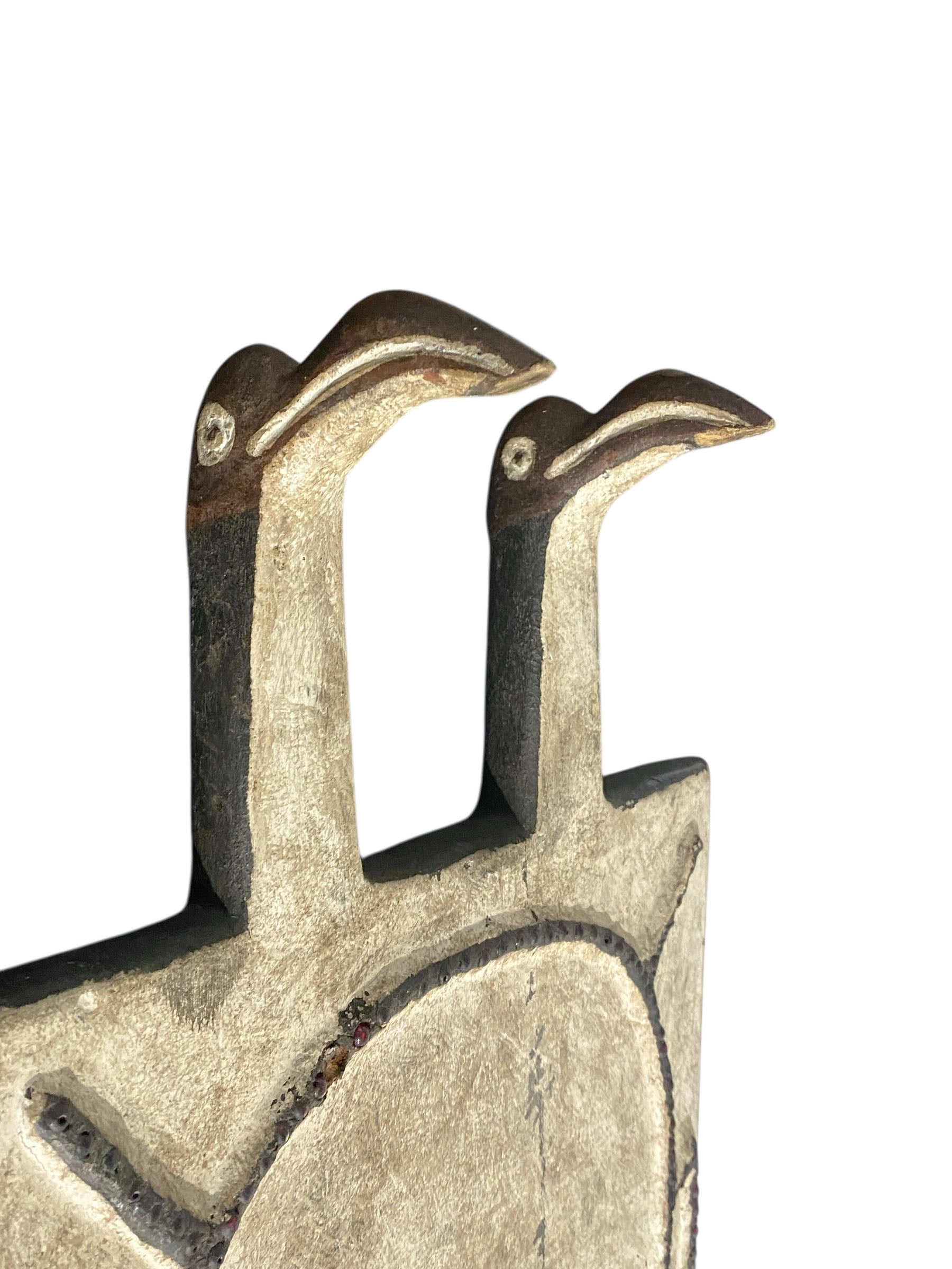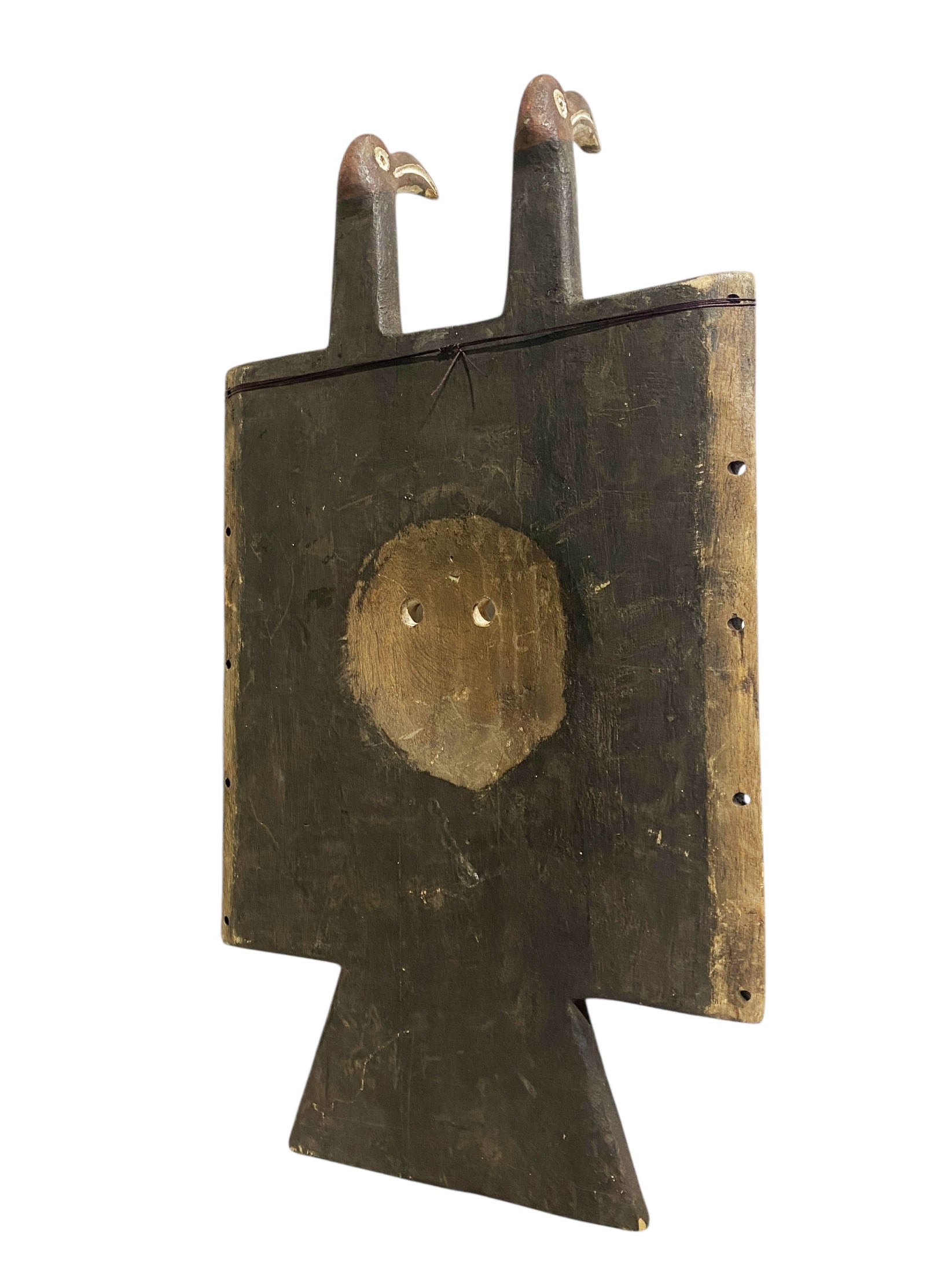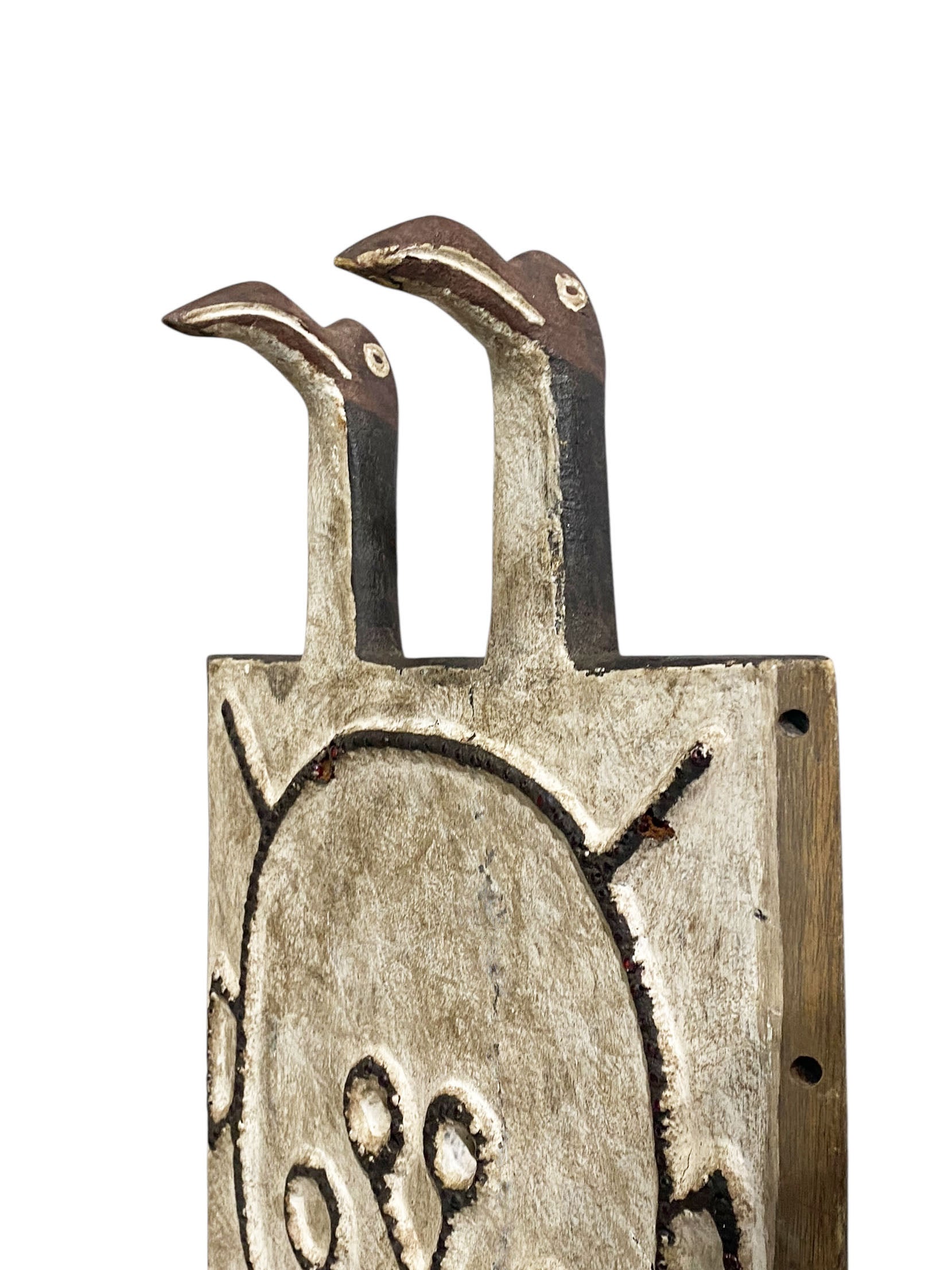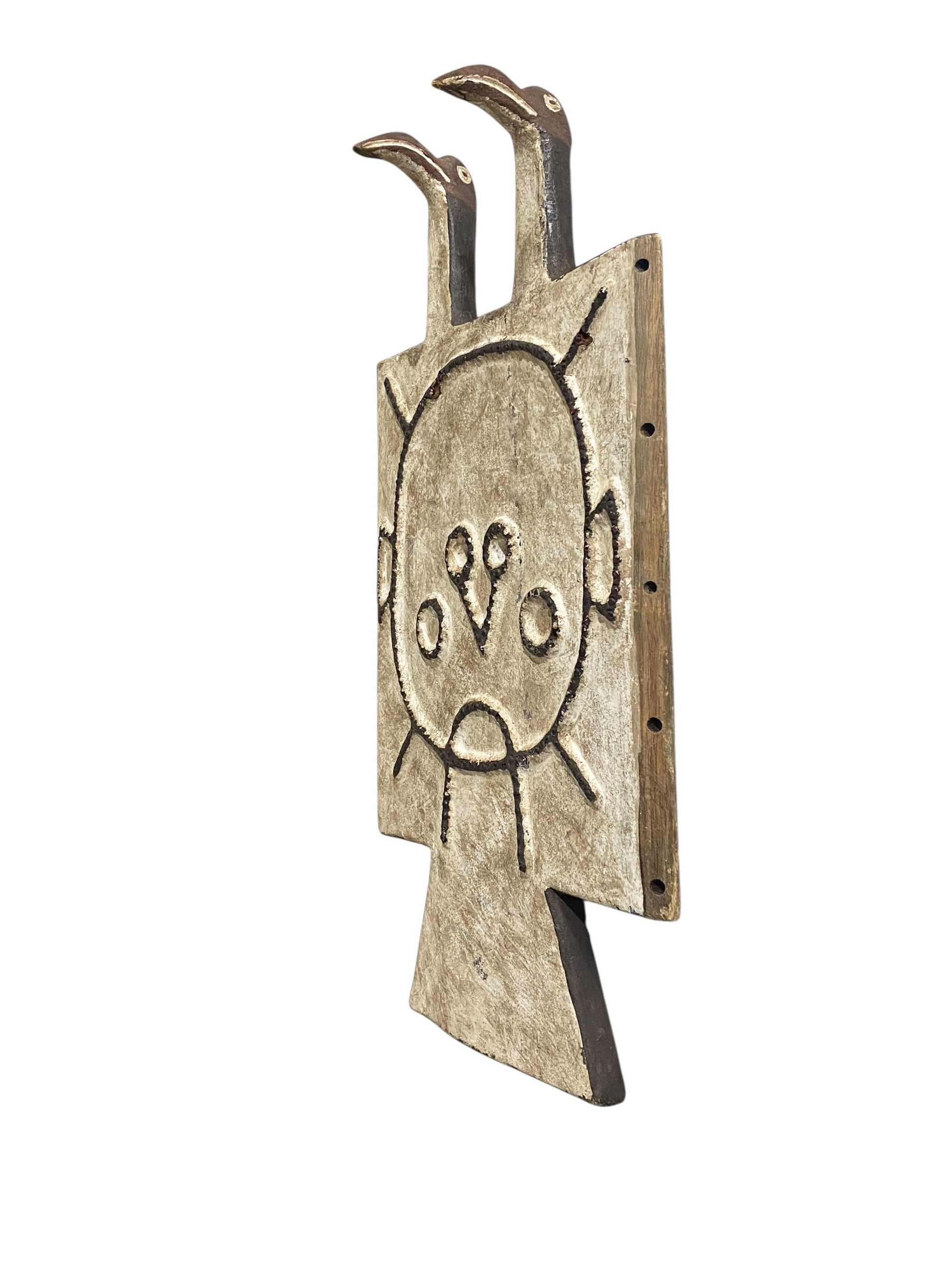 #1177 VTG African Toussian Bird Mask Carved Wood Plank Crest -Burkina Faso 25.5" H