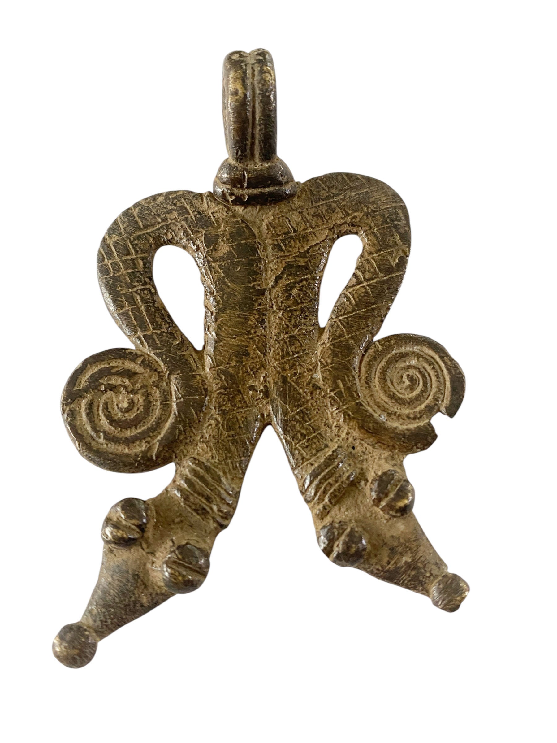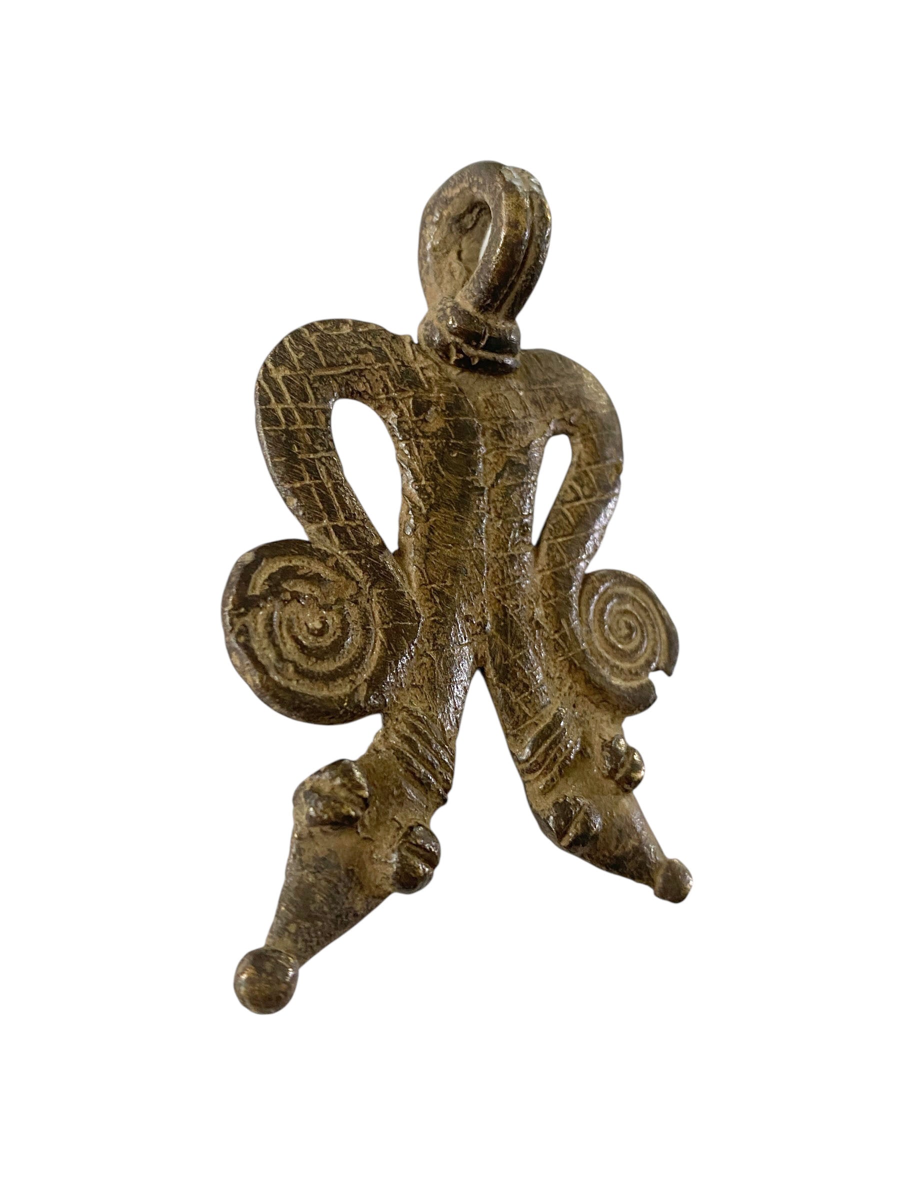 #1181 Vtg Gan Bronze Amulet Pendant/gold Weight / Ornate Serpents Burkina Faso