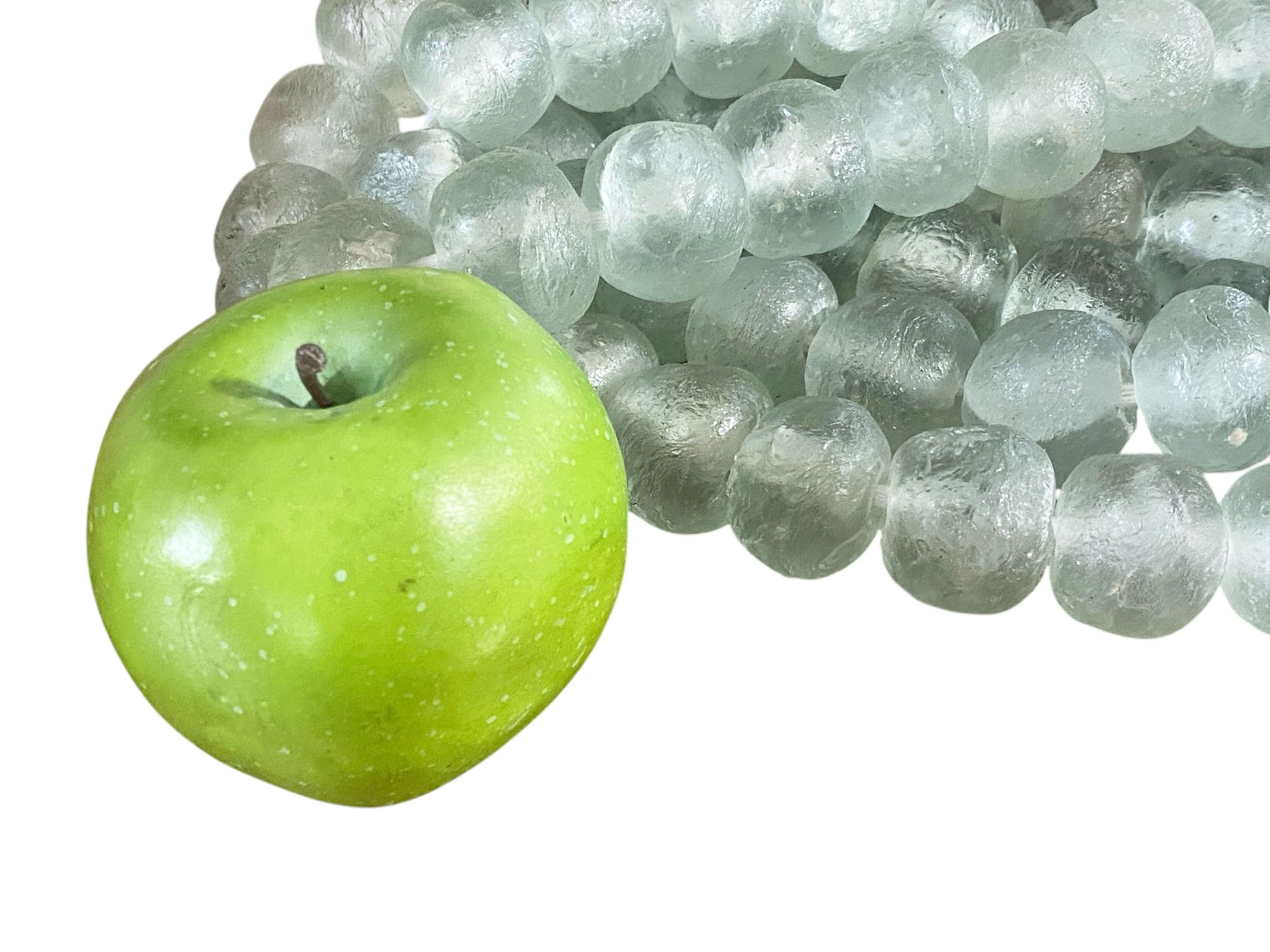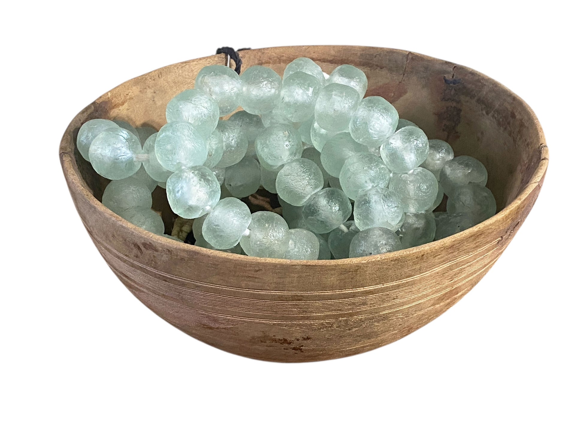#1191 African Large Glass Light Green Trading Beads Necklace One String