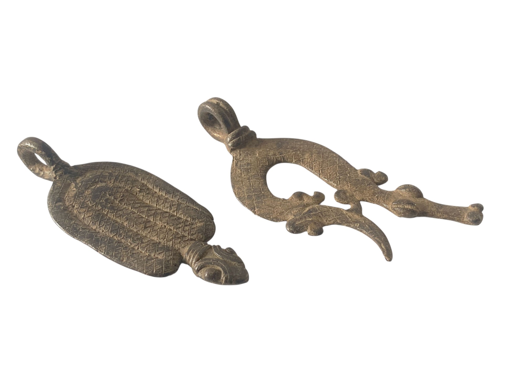 #1193 Vtg Set of Two Gan Bronze Amulet Pendant/Gold Weight / Burkina Faso