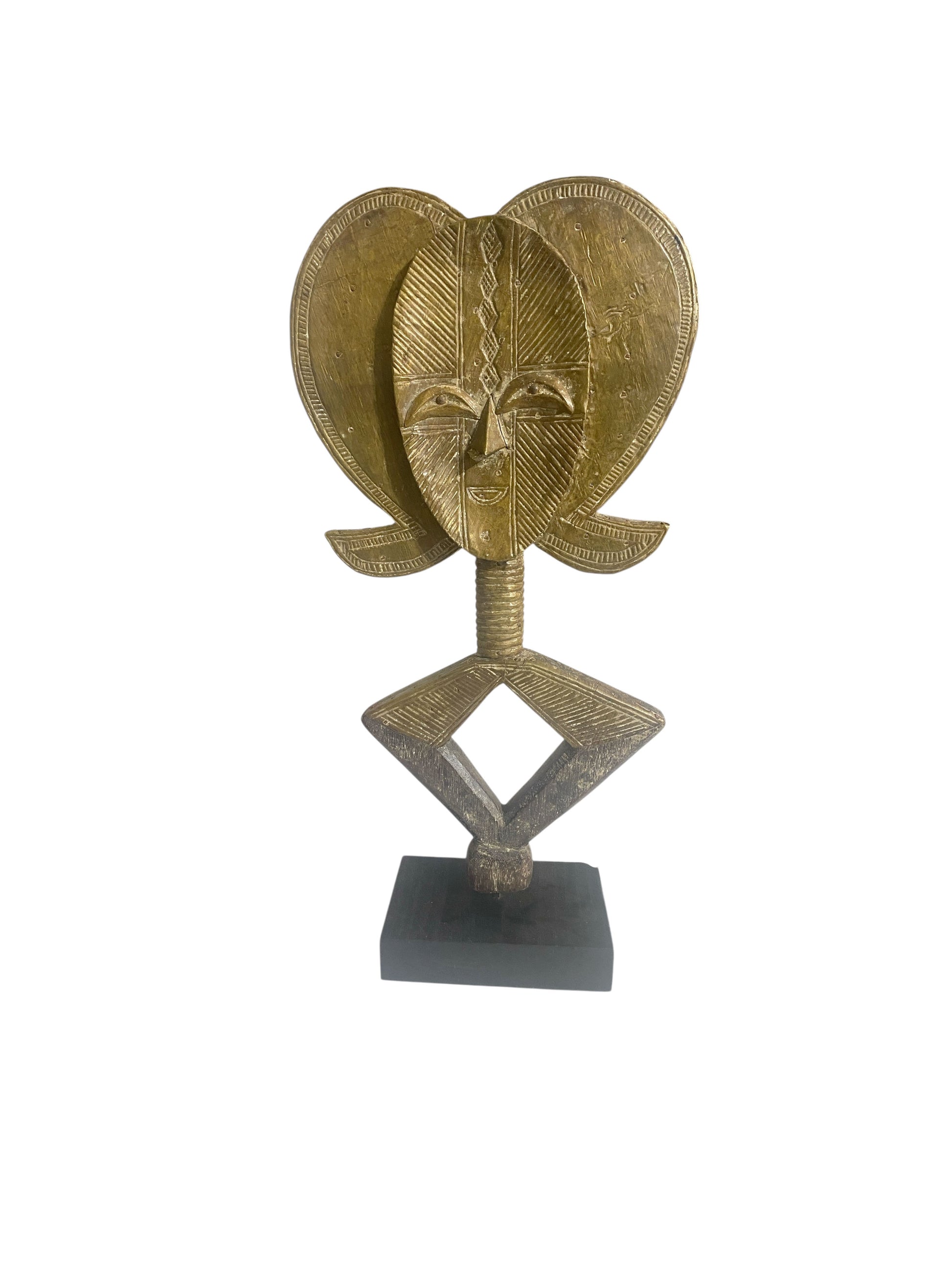 #1195 VTG Bakota Brass and Wood Sculpture w/Stand 22" H