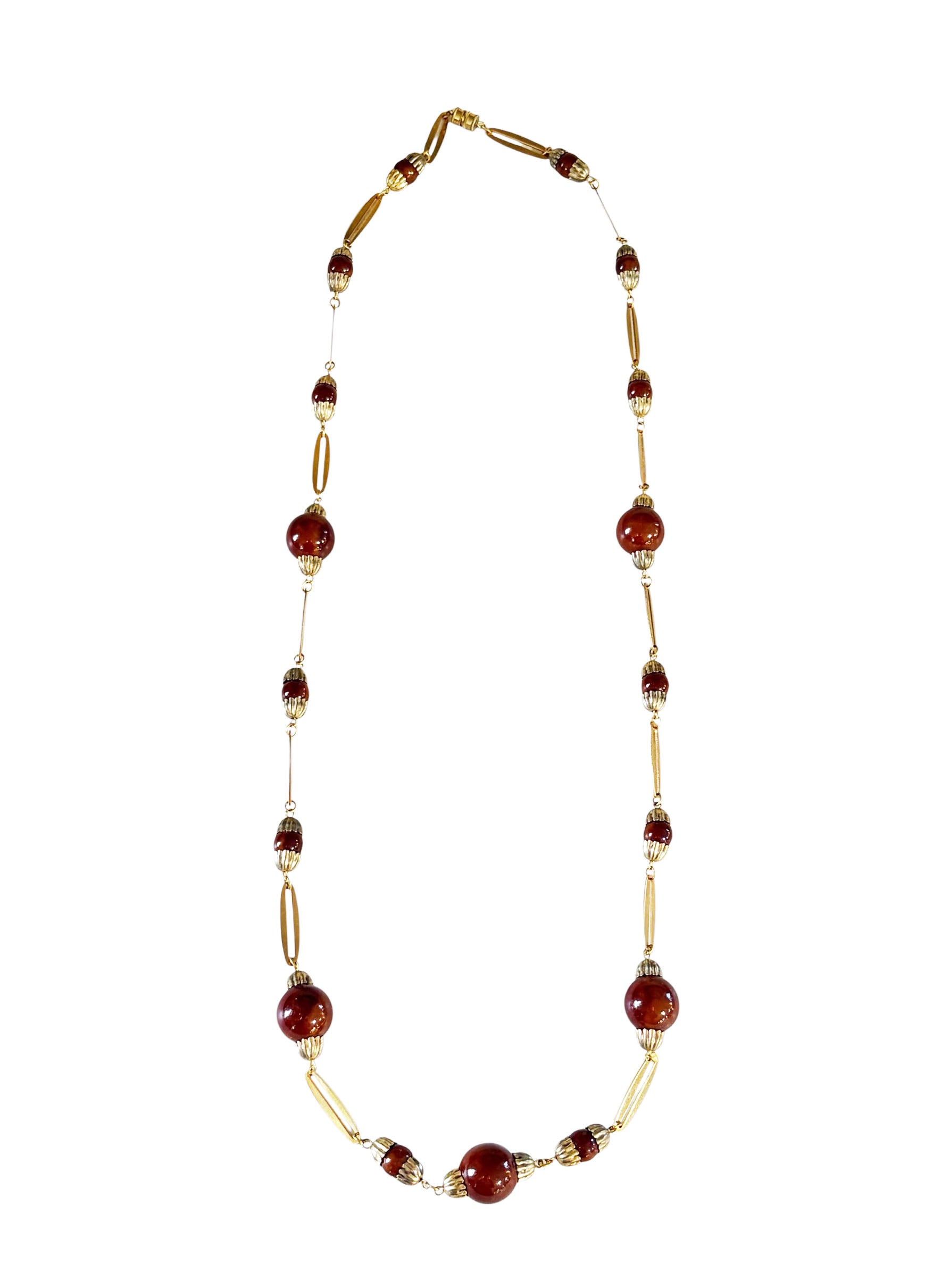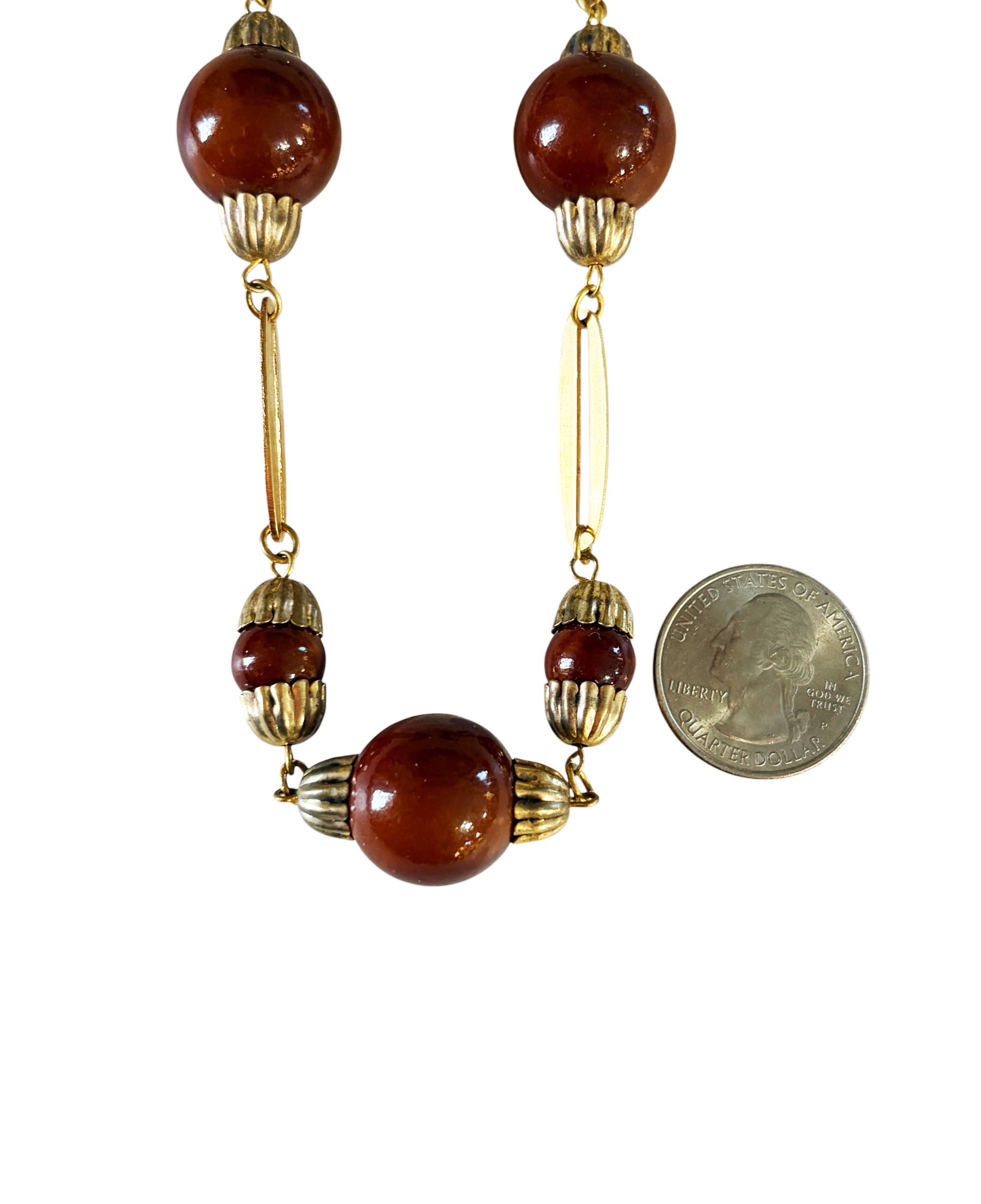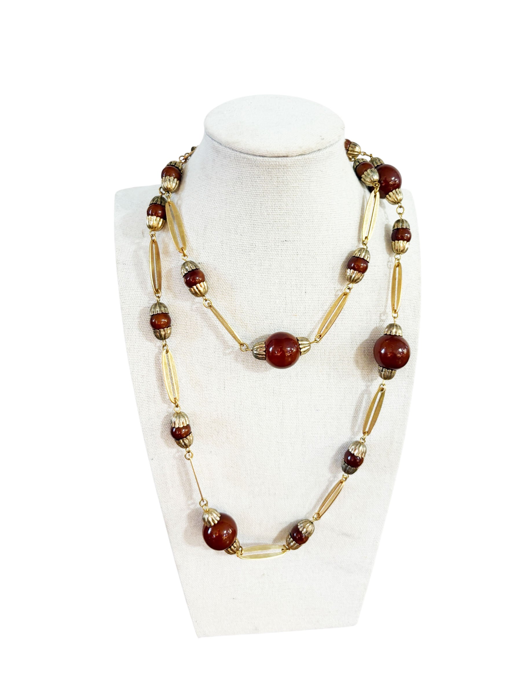 #133 Vintage Gold-Tone and Brown Beads Necklace 18.5" H
