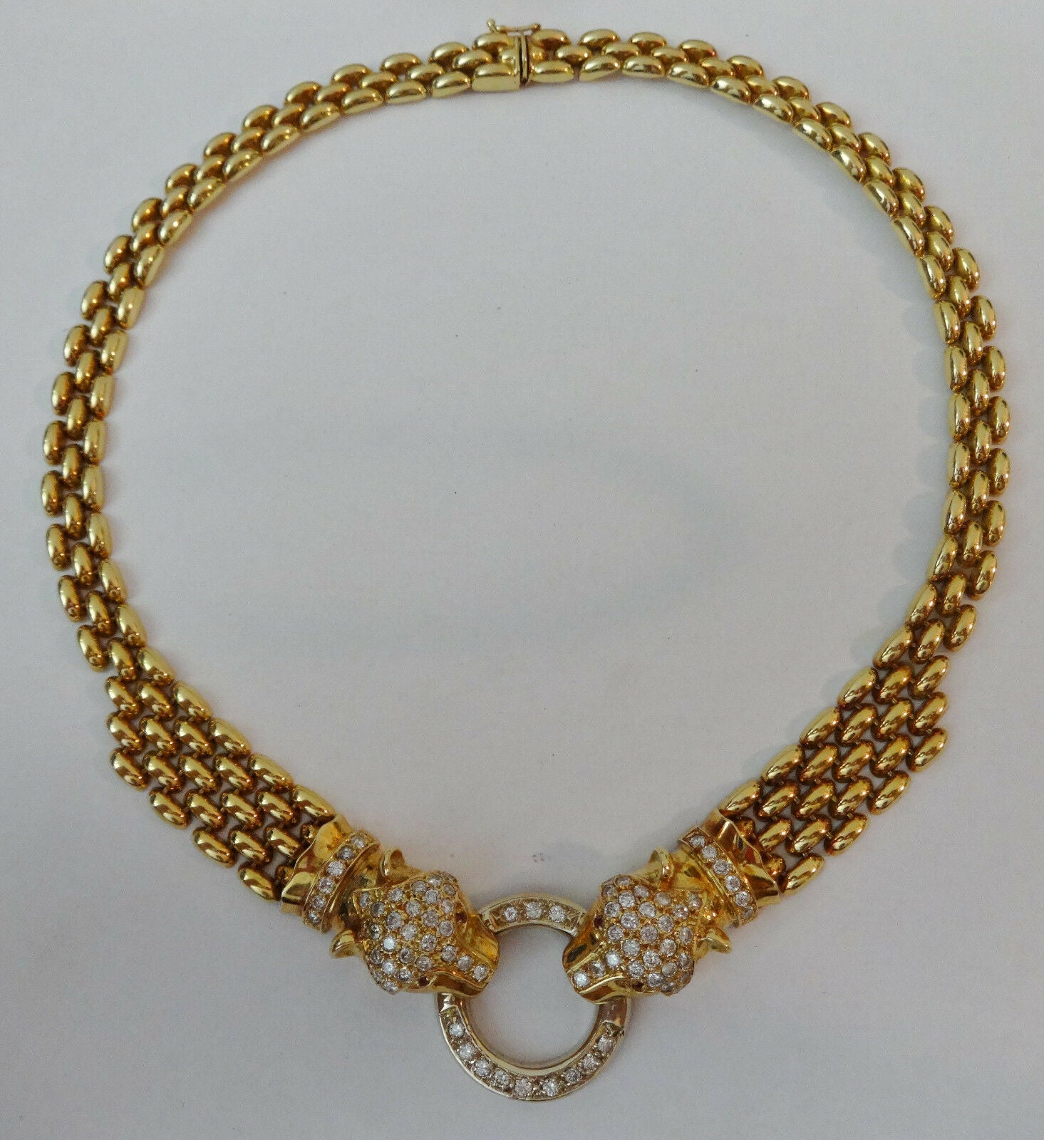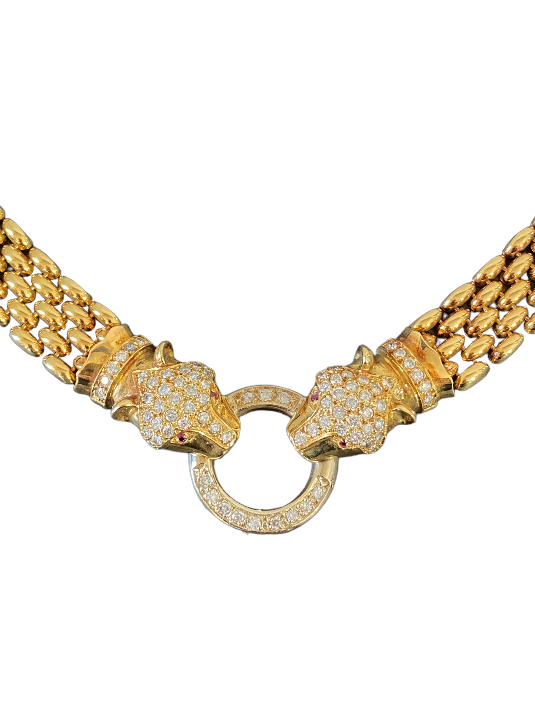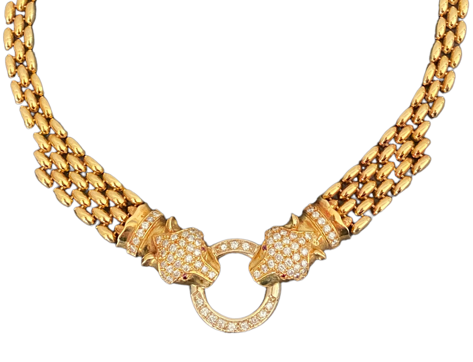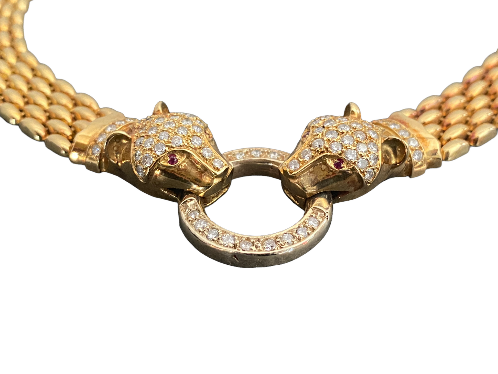 #1954 18KT Gold / Diamond Panther Head Necklace Cartier Style