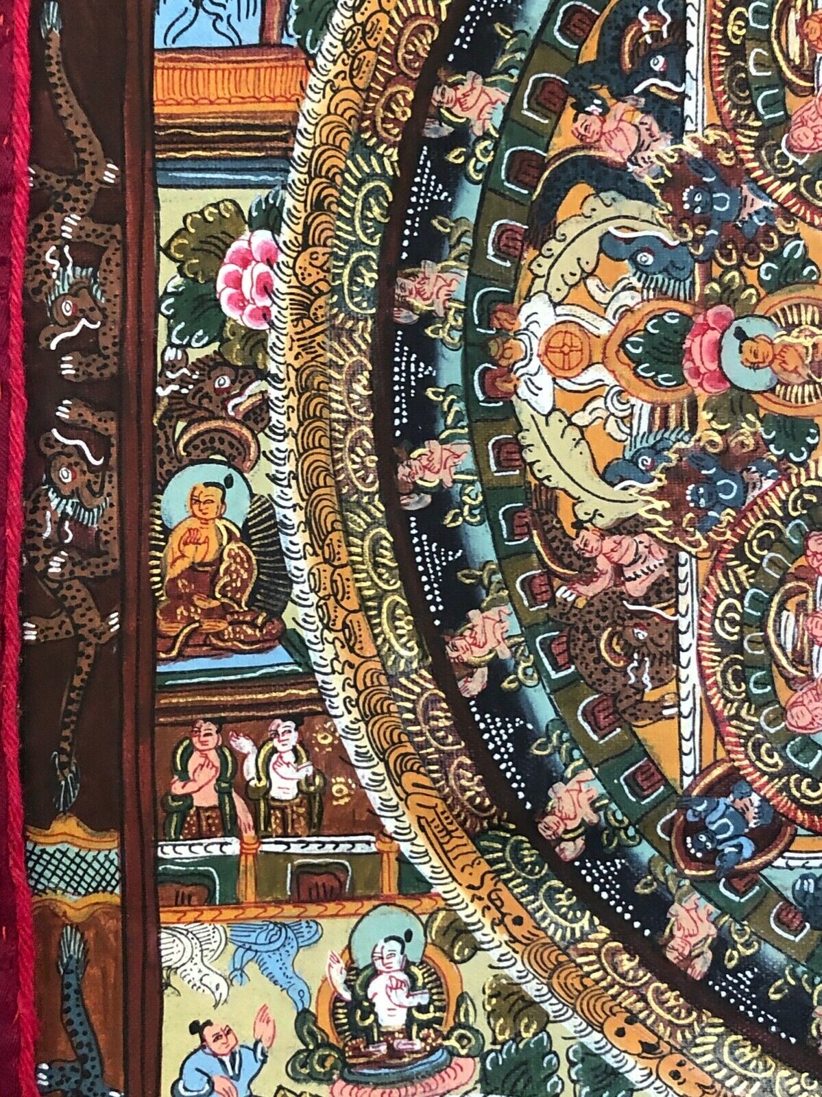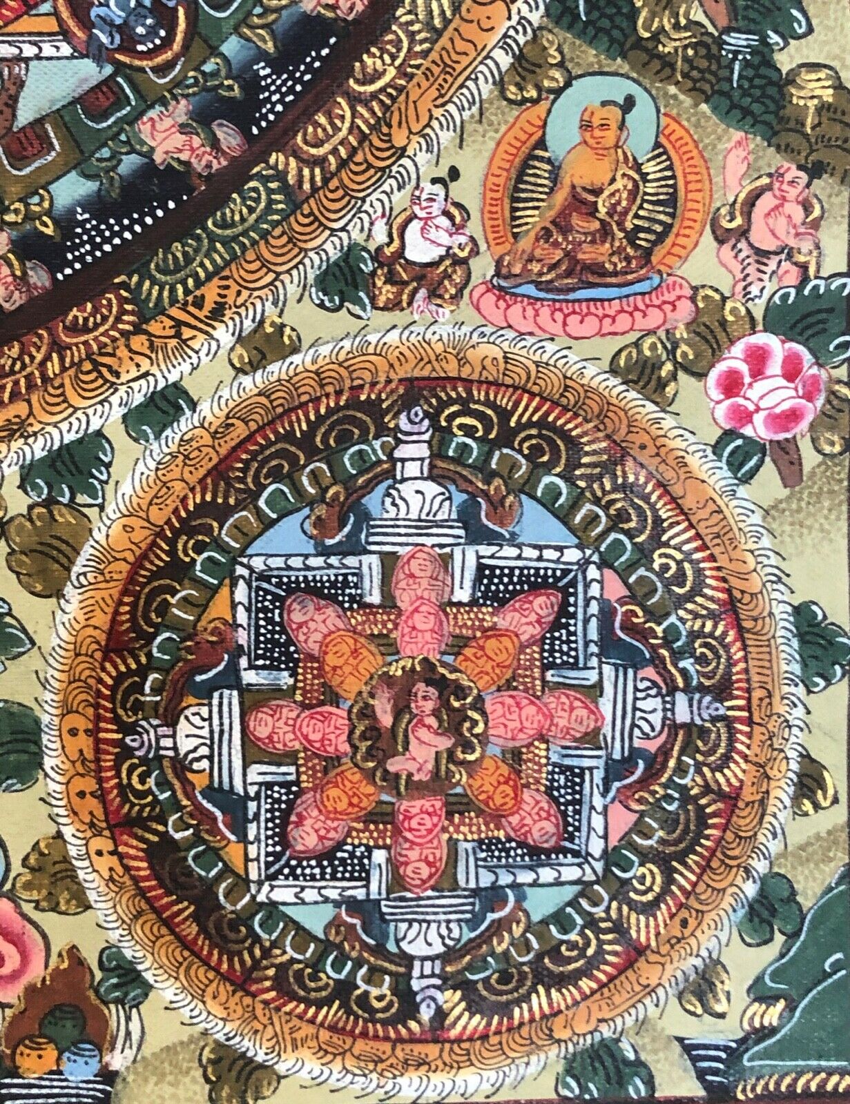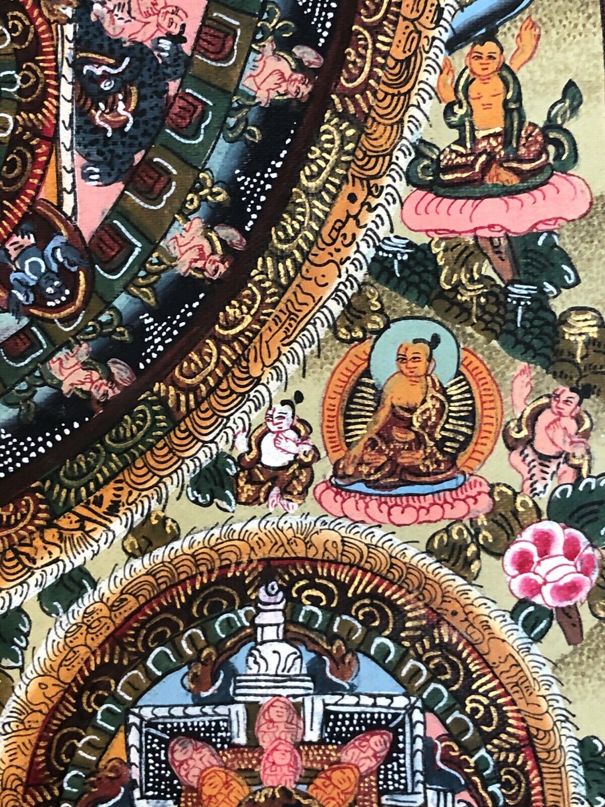Museum Quality Piece ,Fine Old Sino Tibetan Hand painted Buddhist Thangka ca. 1900's or older ,depicting the wheel of life used as a meditation tool to help bring one further down the path of enlightenment