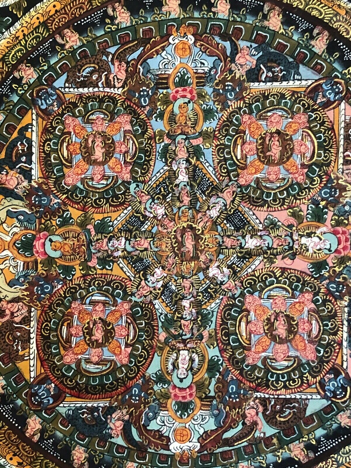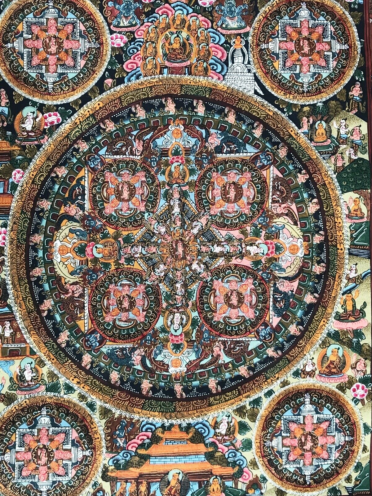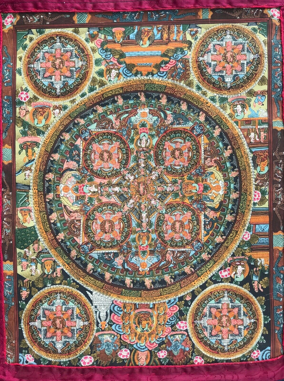 Museum Quality Piece ,Fine Old Sino Tibetan Hand painted Buddhist Thangka ca. 1900's or older ,depicting the wheel of life used as a meditation tool to help bring one further down the path of enlightenment