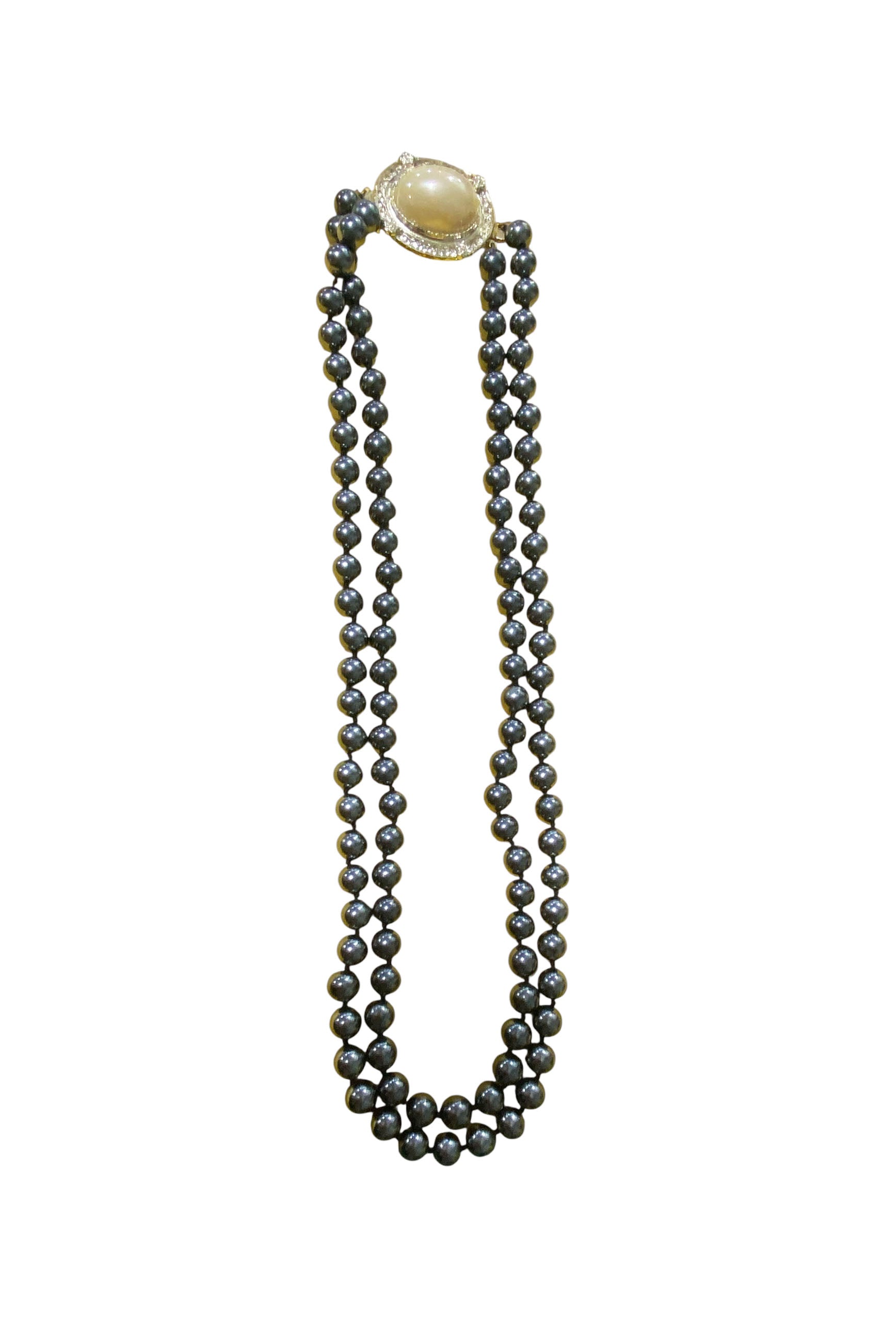 #22 Long Vintage two Strand Faux Black Pearl with Beige Focal Necklace
