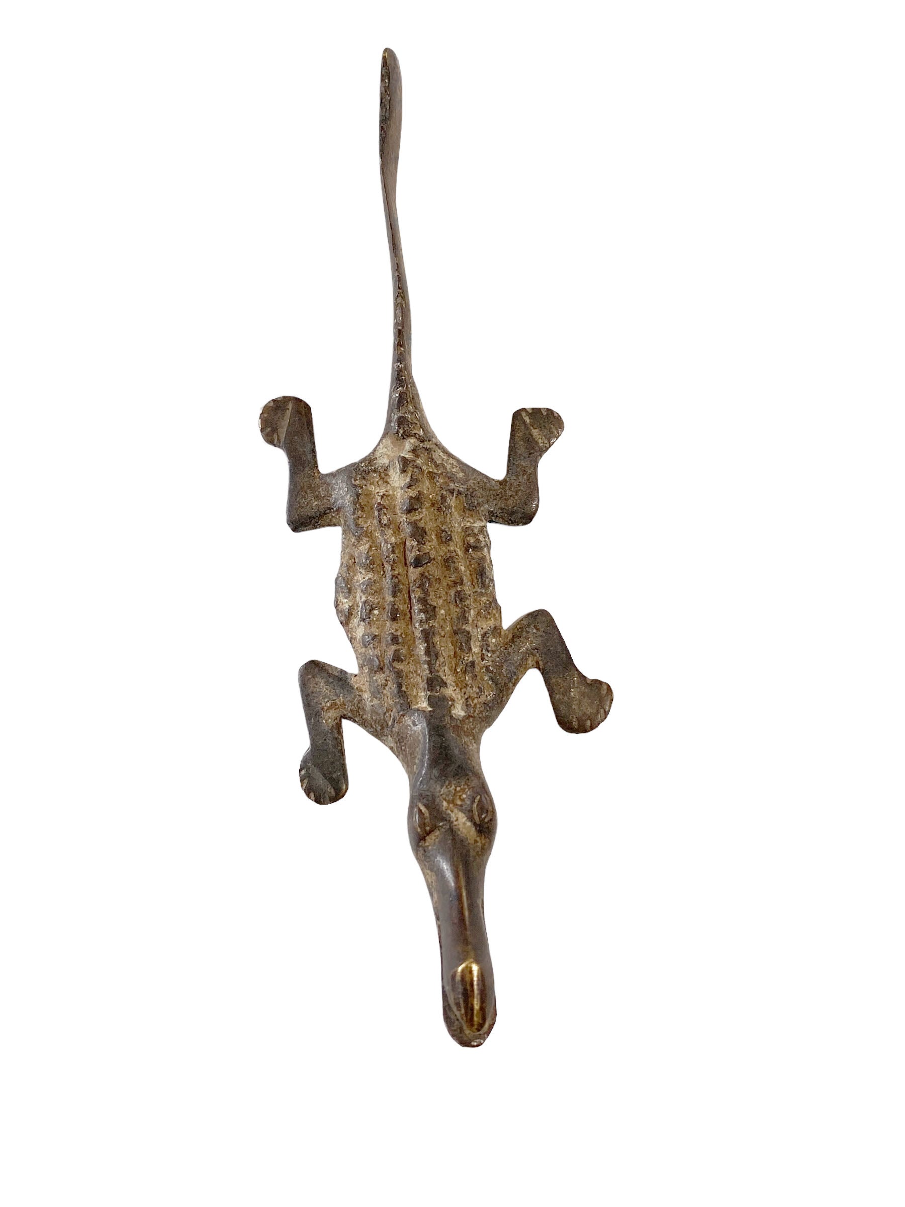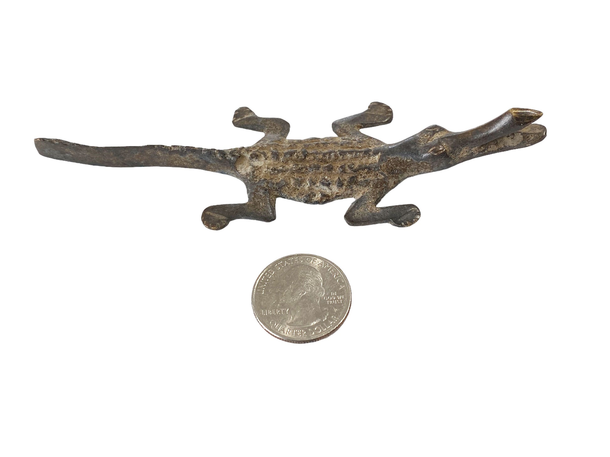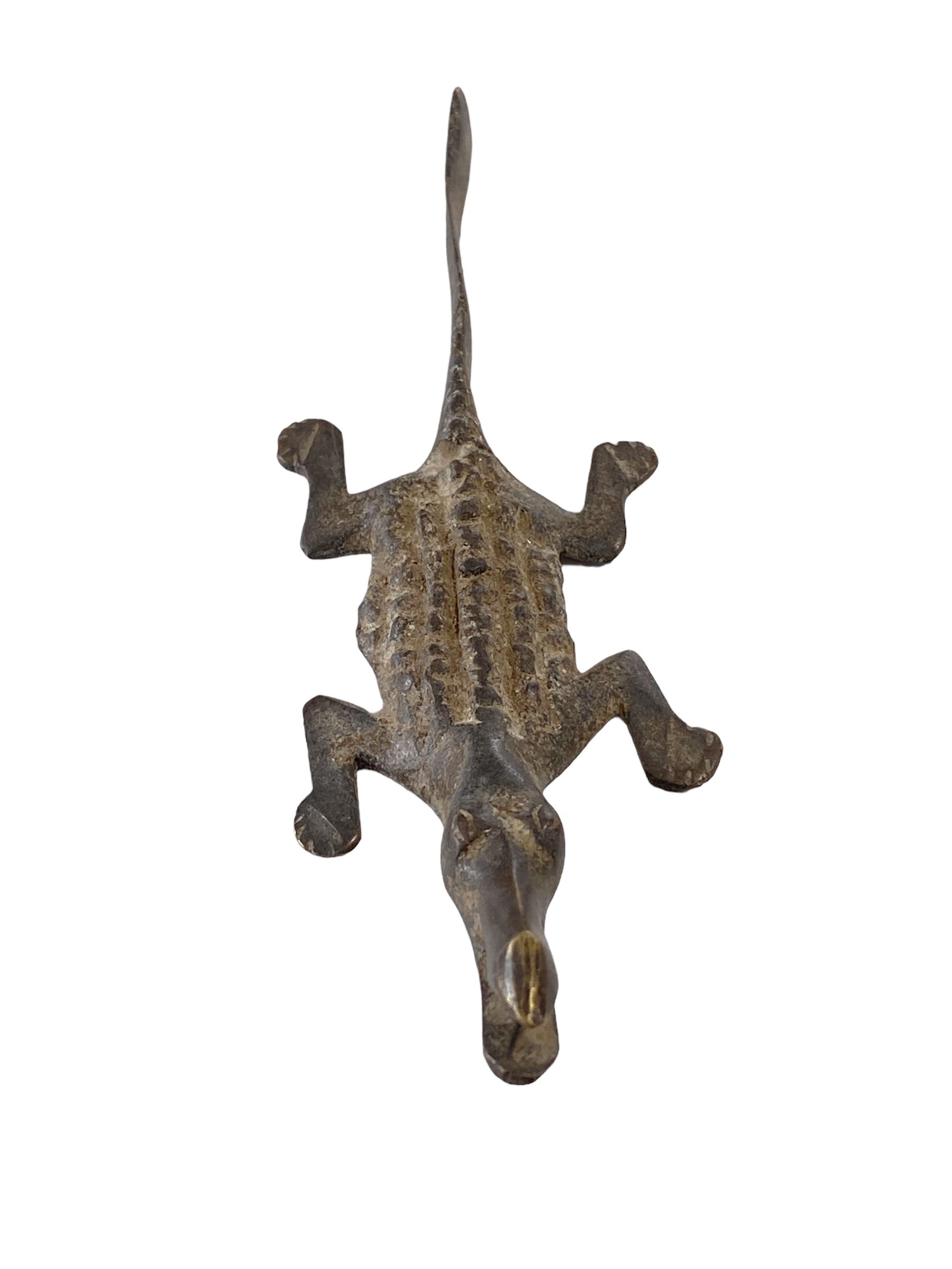 #2215 Lobi tribal Bronze Gold Weight Crocodile Burkina Faso Africa 5.25" W