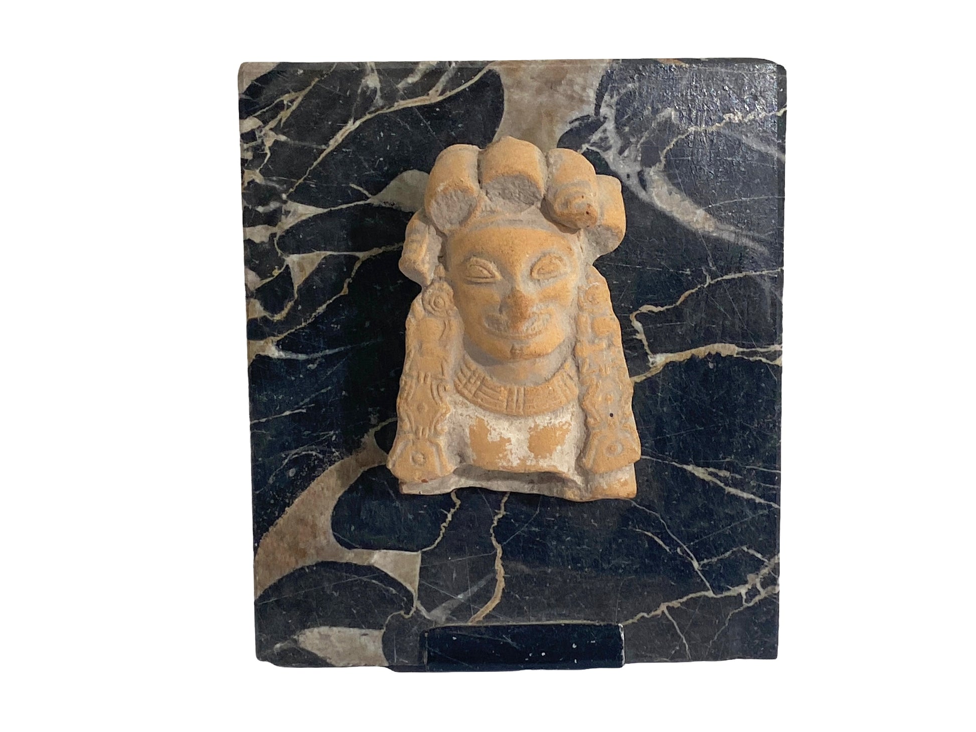 - From my private collection Pre-Columbian pottery fragment of a Valdivia female figure,These so called Venus figures are one of the first pottery figures to be found in south America ,mounted on a Italian marble display stand. Fragment, 2.5"H x 1.75"L. 4" L x 1" W x 4.25"