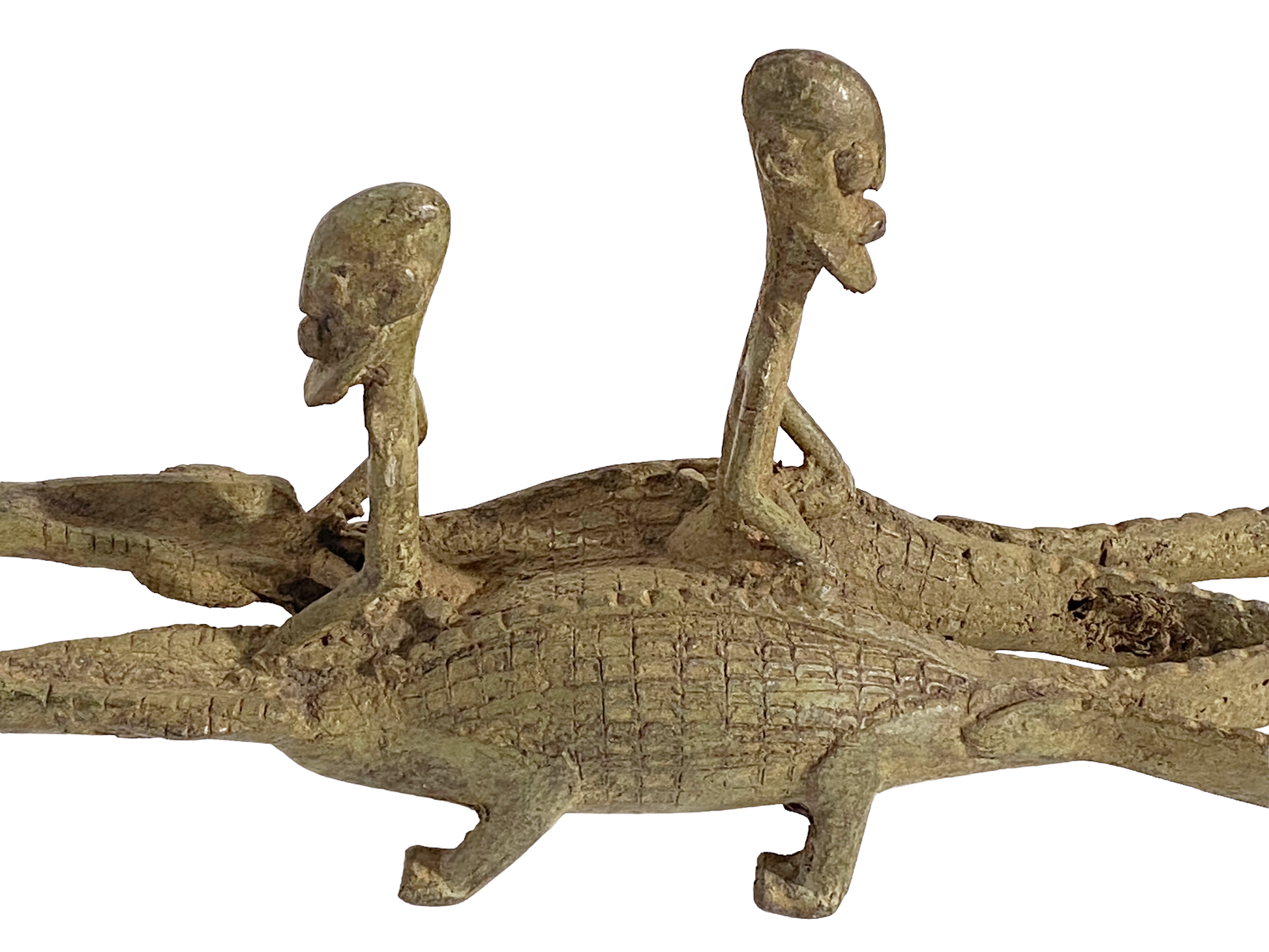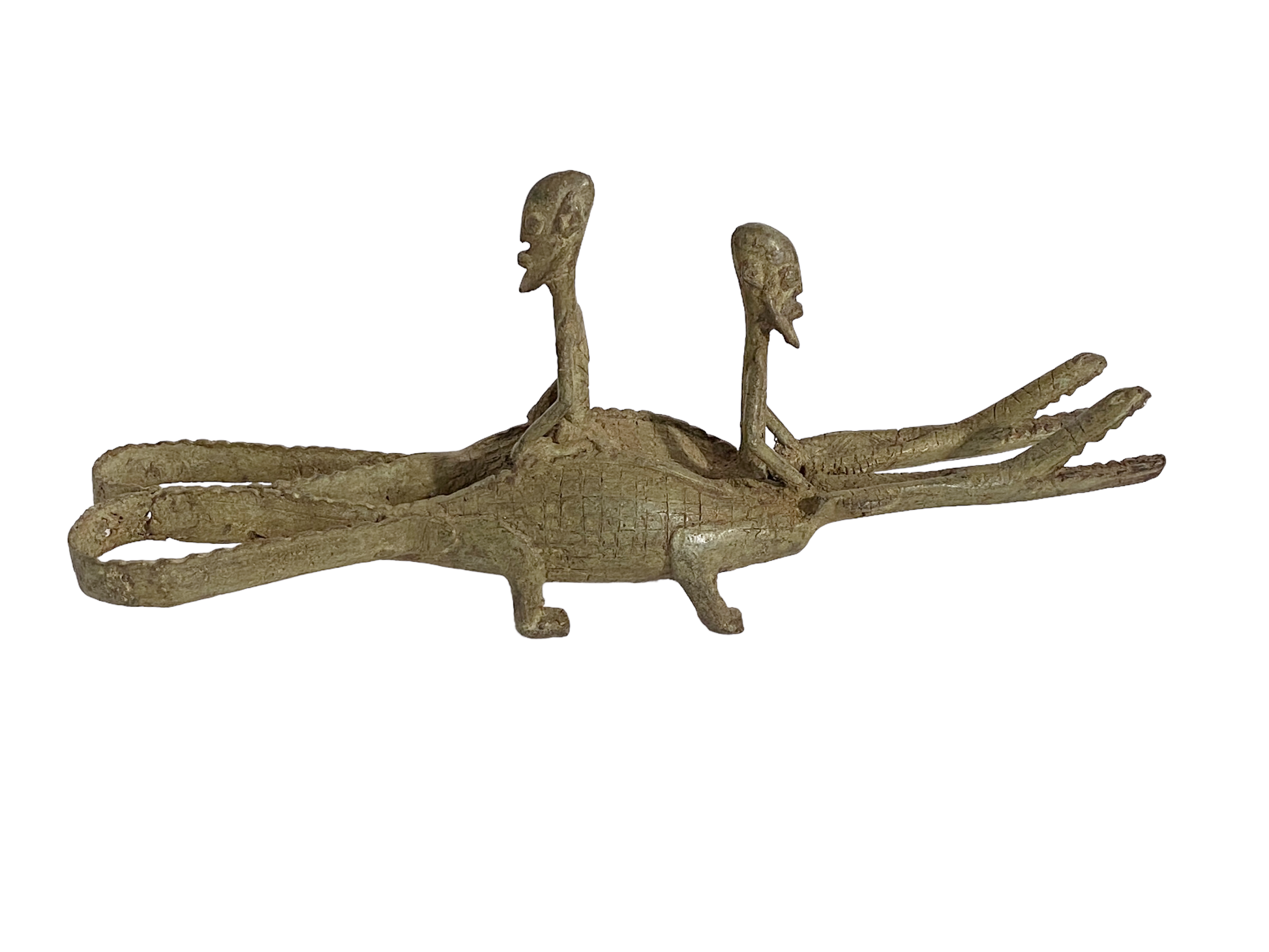 # 239 Dogon Bronze Ancestors Riding a crocodile , Mali.15 " W