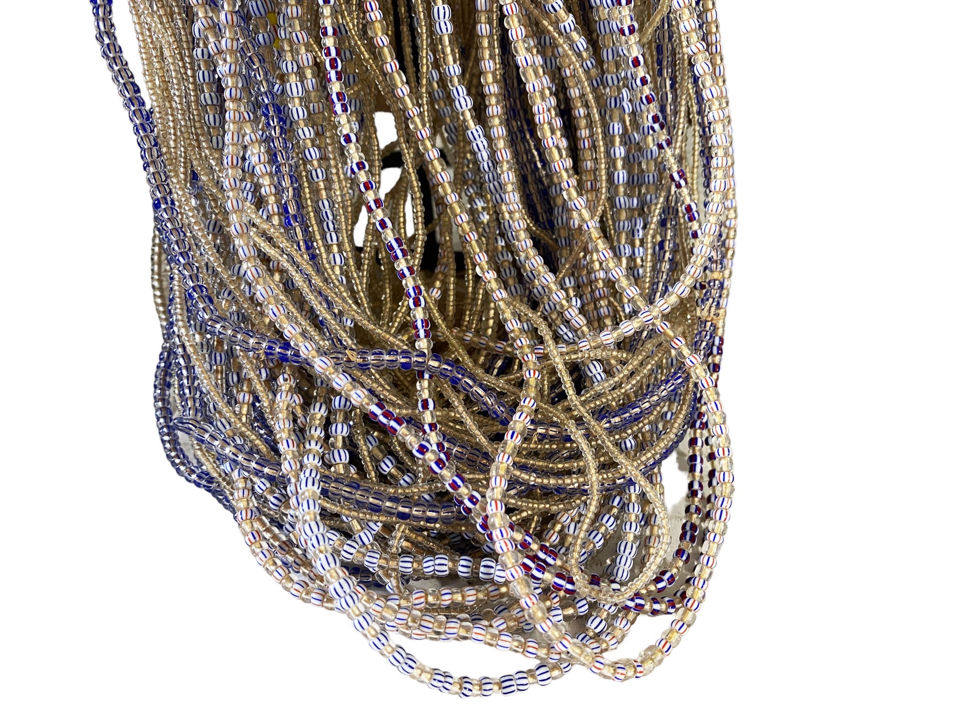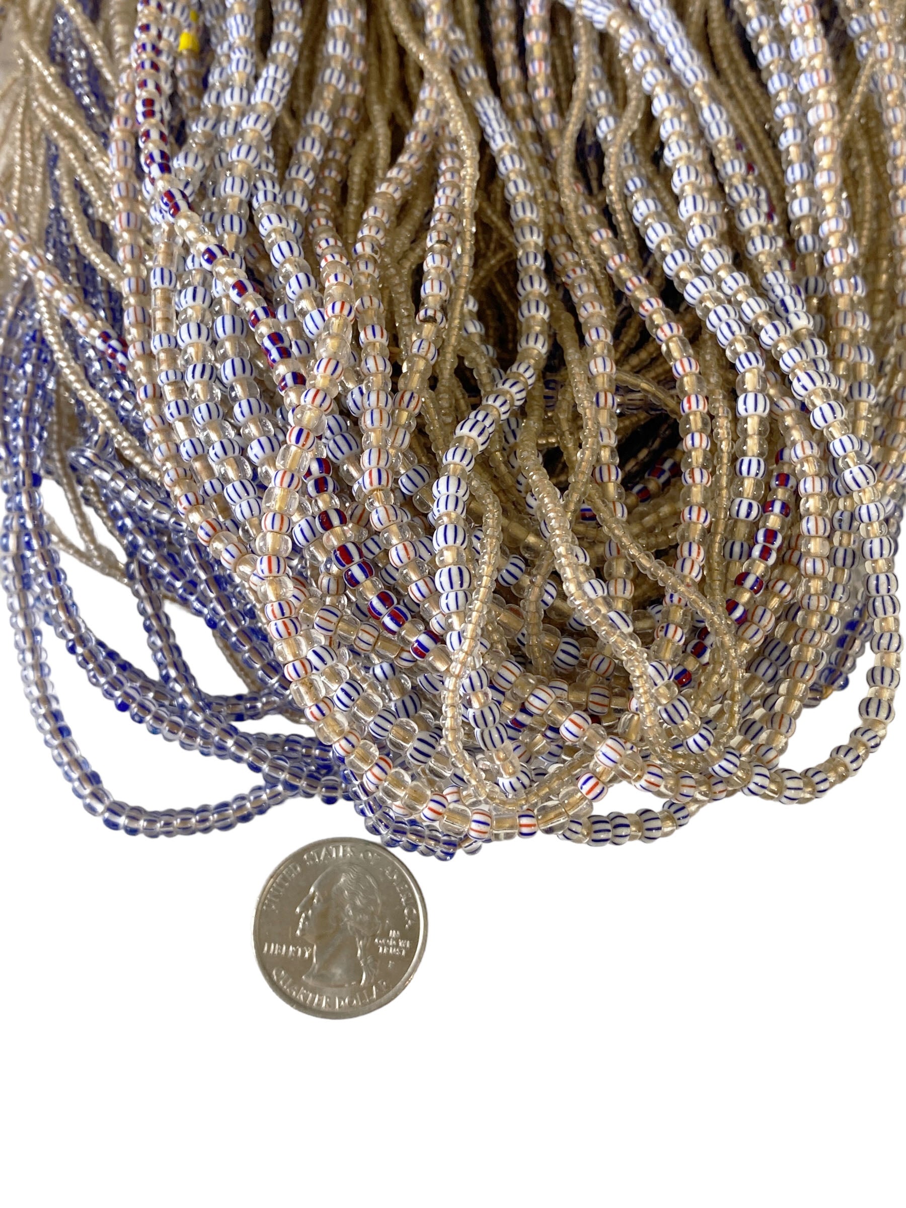 This listing includes 101 African-Ghana necklaces composed of chevron-shaped beads, each measuring 13 inches in length. The beads vary in size: please refer to the accompanying images for more information.