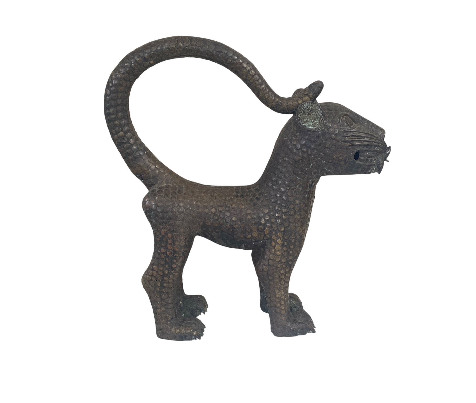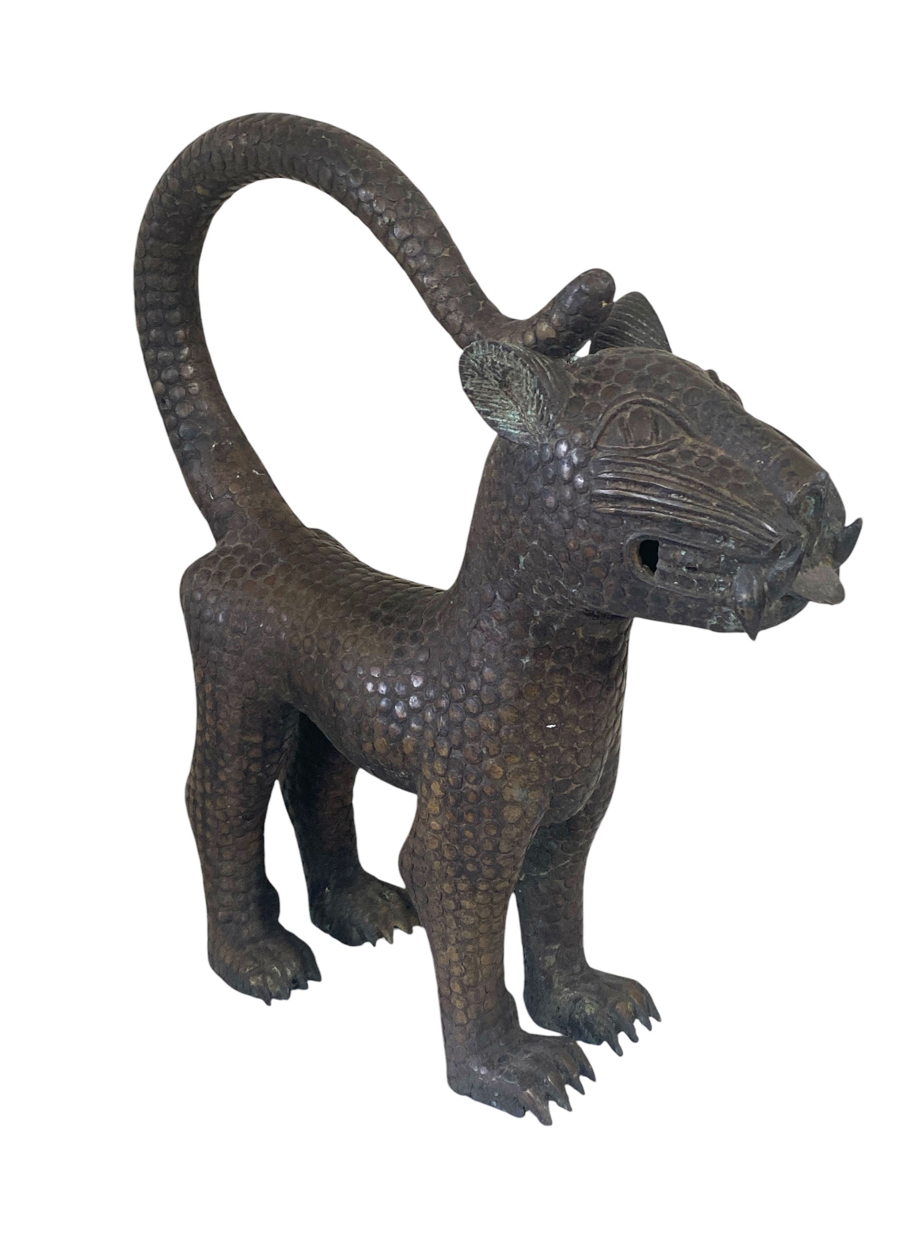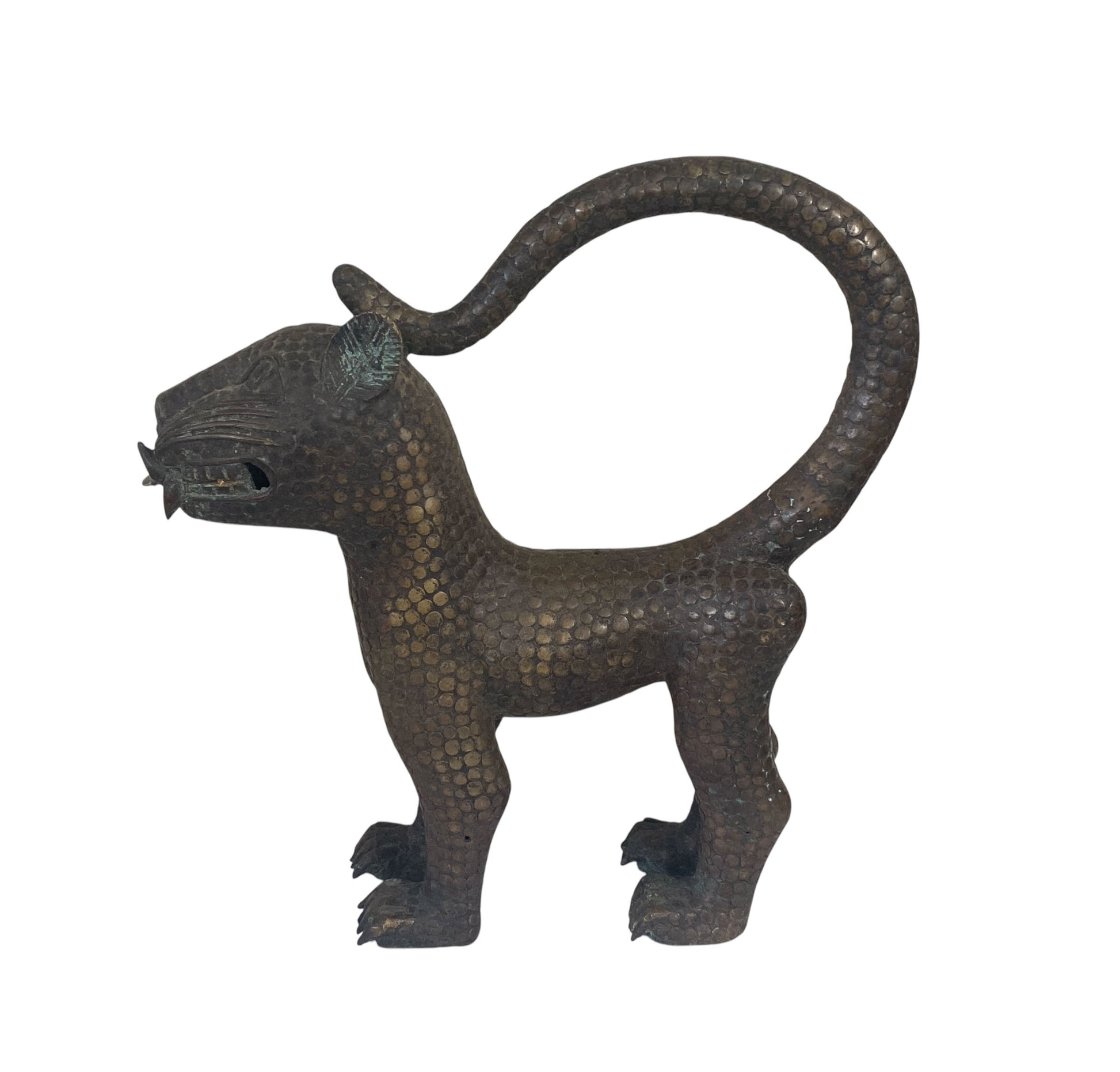 Superb Vintage large Benin bronze leopard. Benin art is royal art, made to glorify the great king, or OBA, who is considered to have divine ancestry. Benin castings were all made by the lost wax technique, which produces one-of-a-kind pieces.