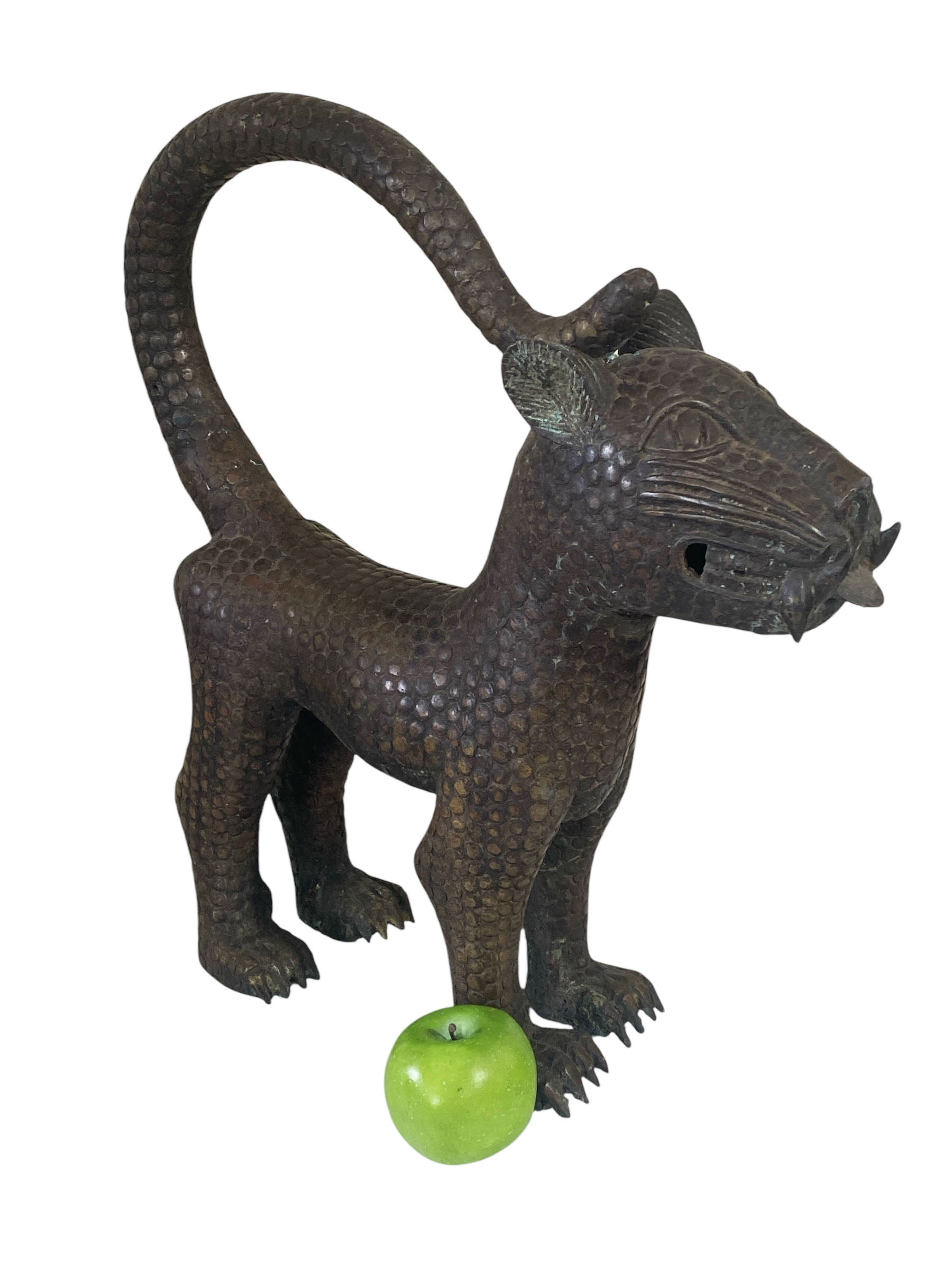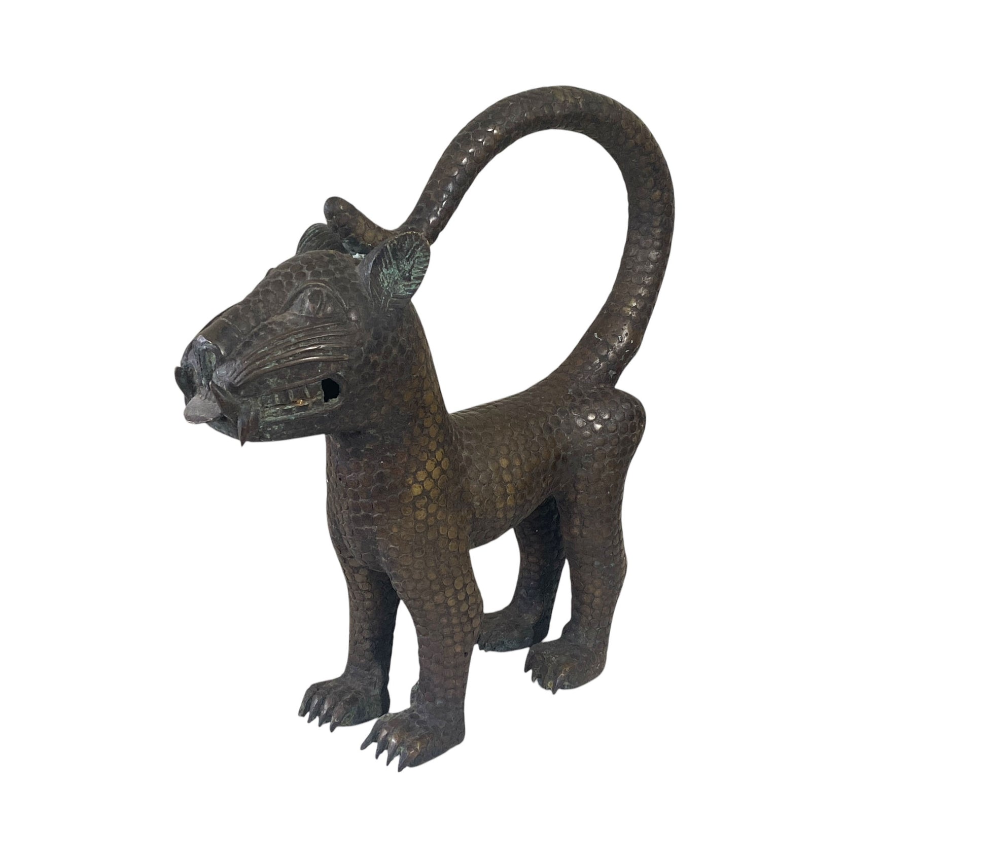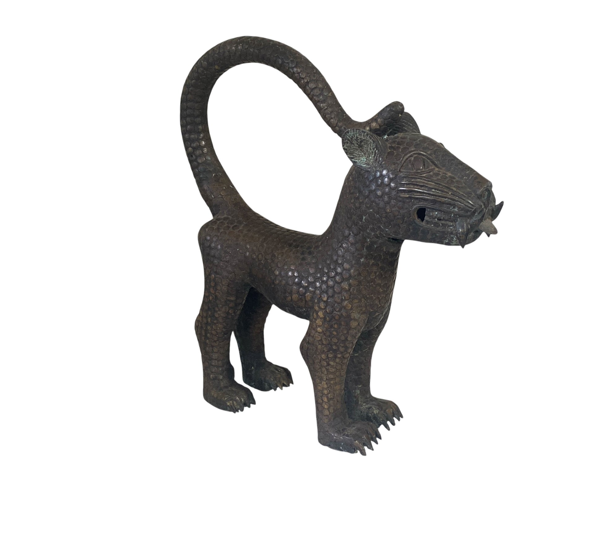 Superb Vintage large Benin bronze leopard. Benin art is royal art, made to glorify the great king, or OBA, who is considered to have divine ancestry. Benin castings were all made by the lost wax technique, which produces one-of-a-kind pieces.