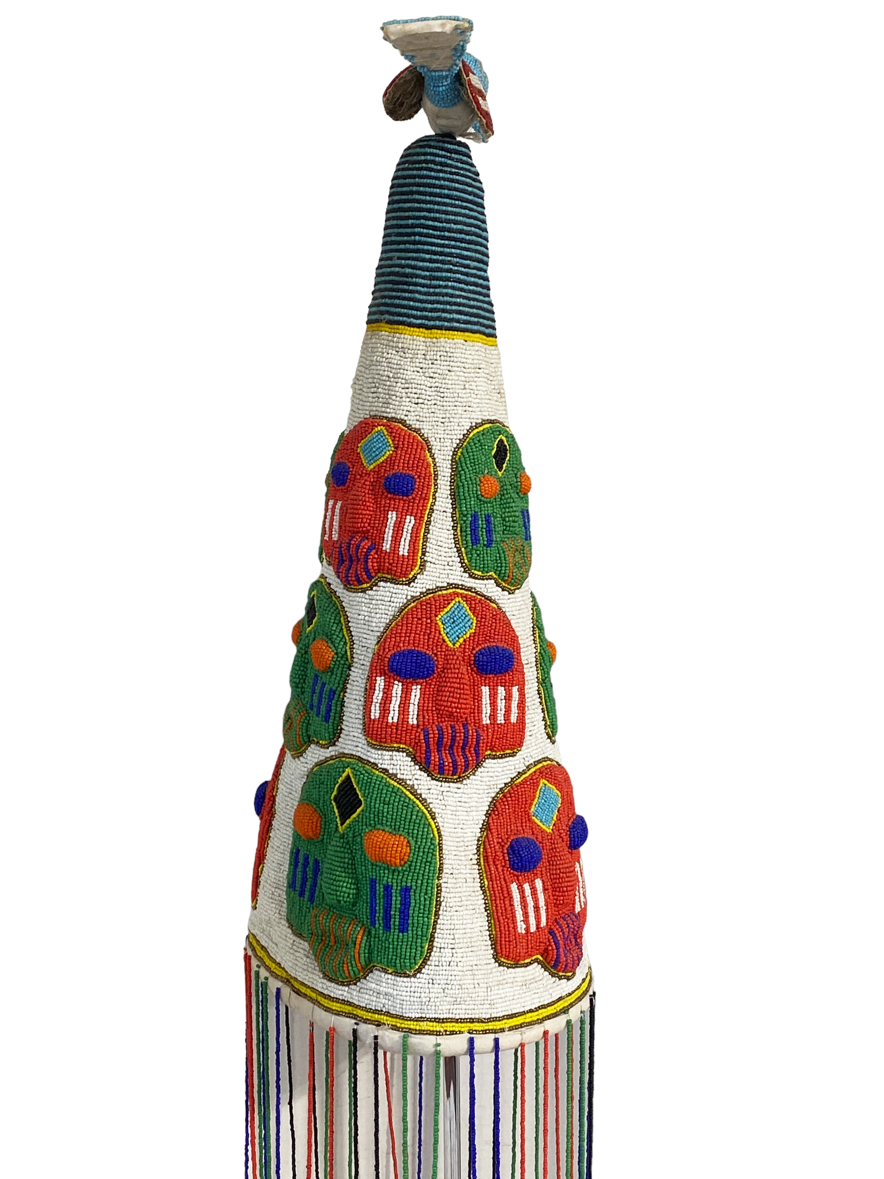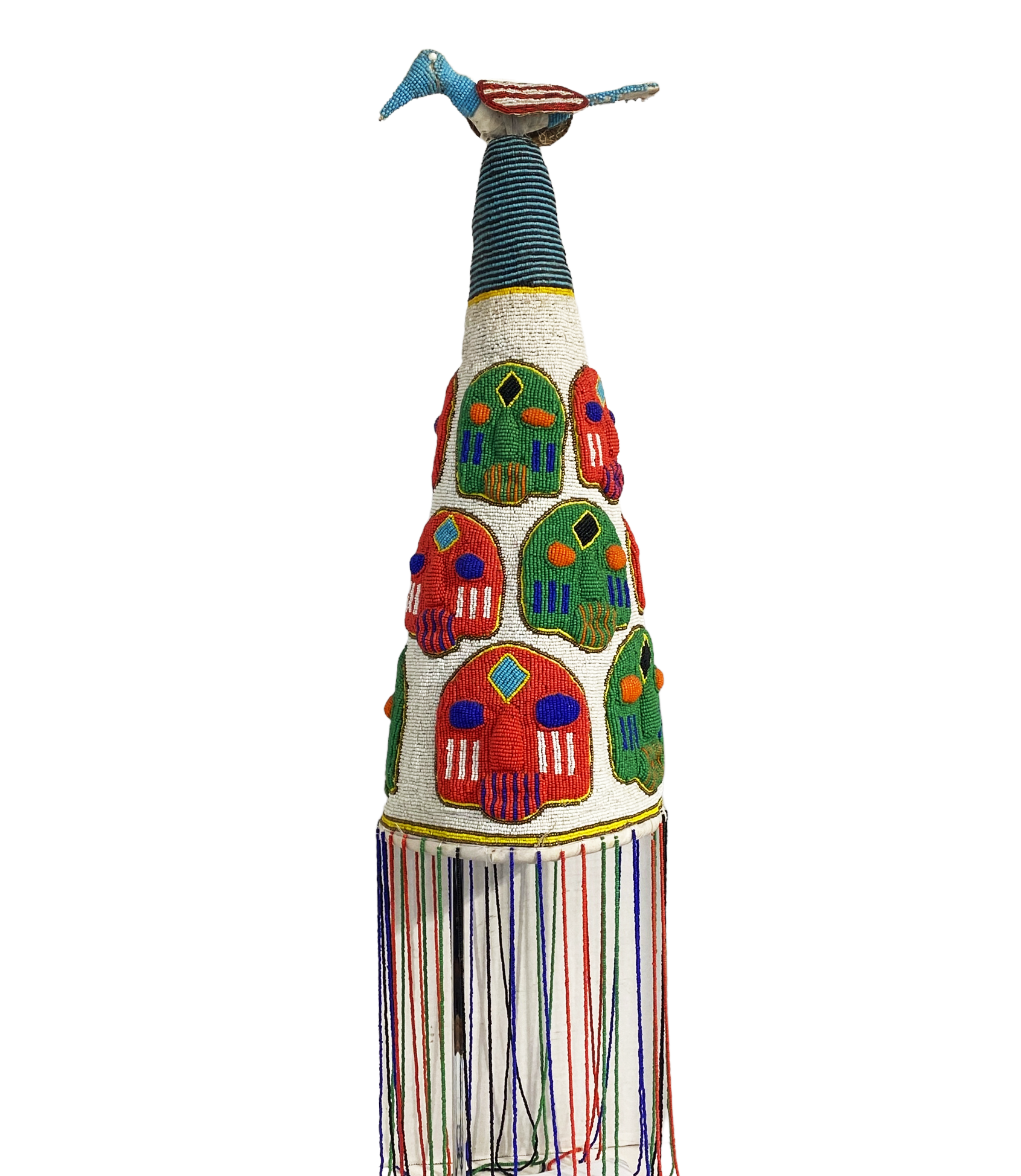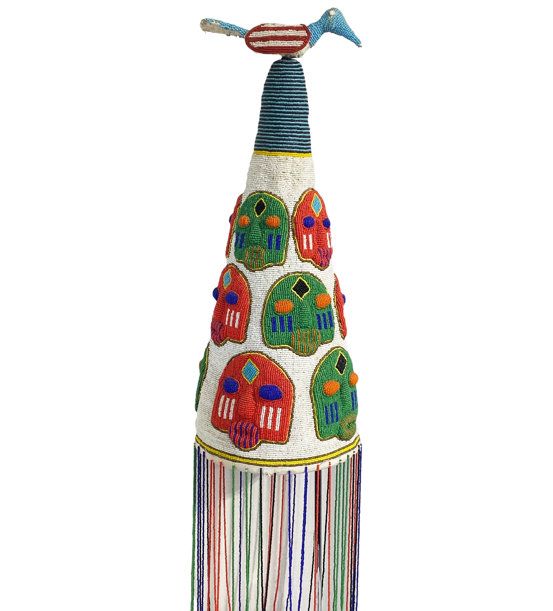 #3748 Stunning African Yoruba Beaded King Crown 23.5" H Nigeria