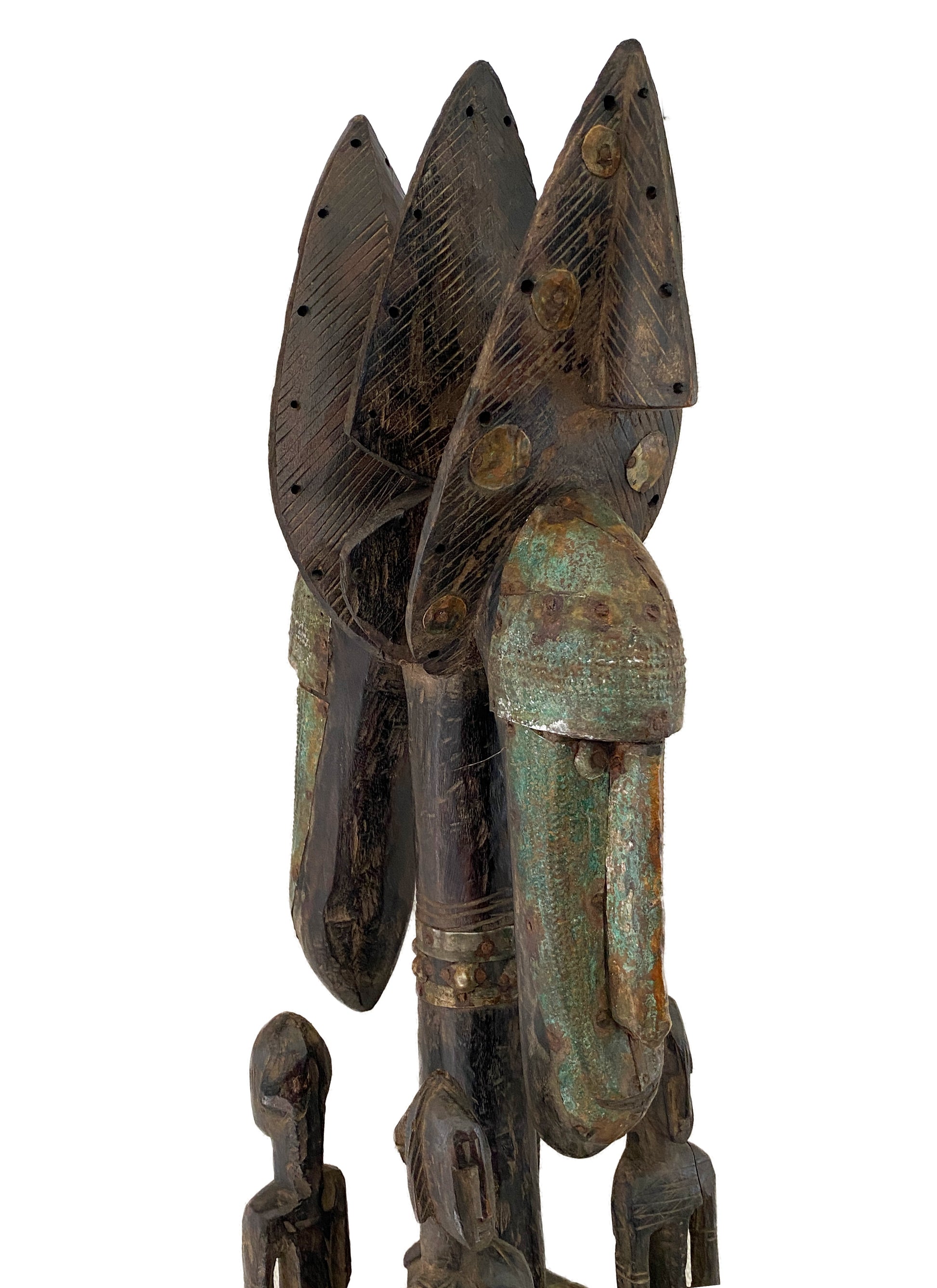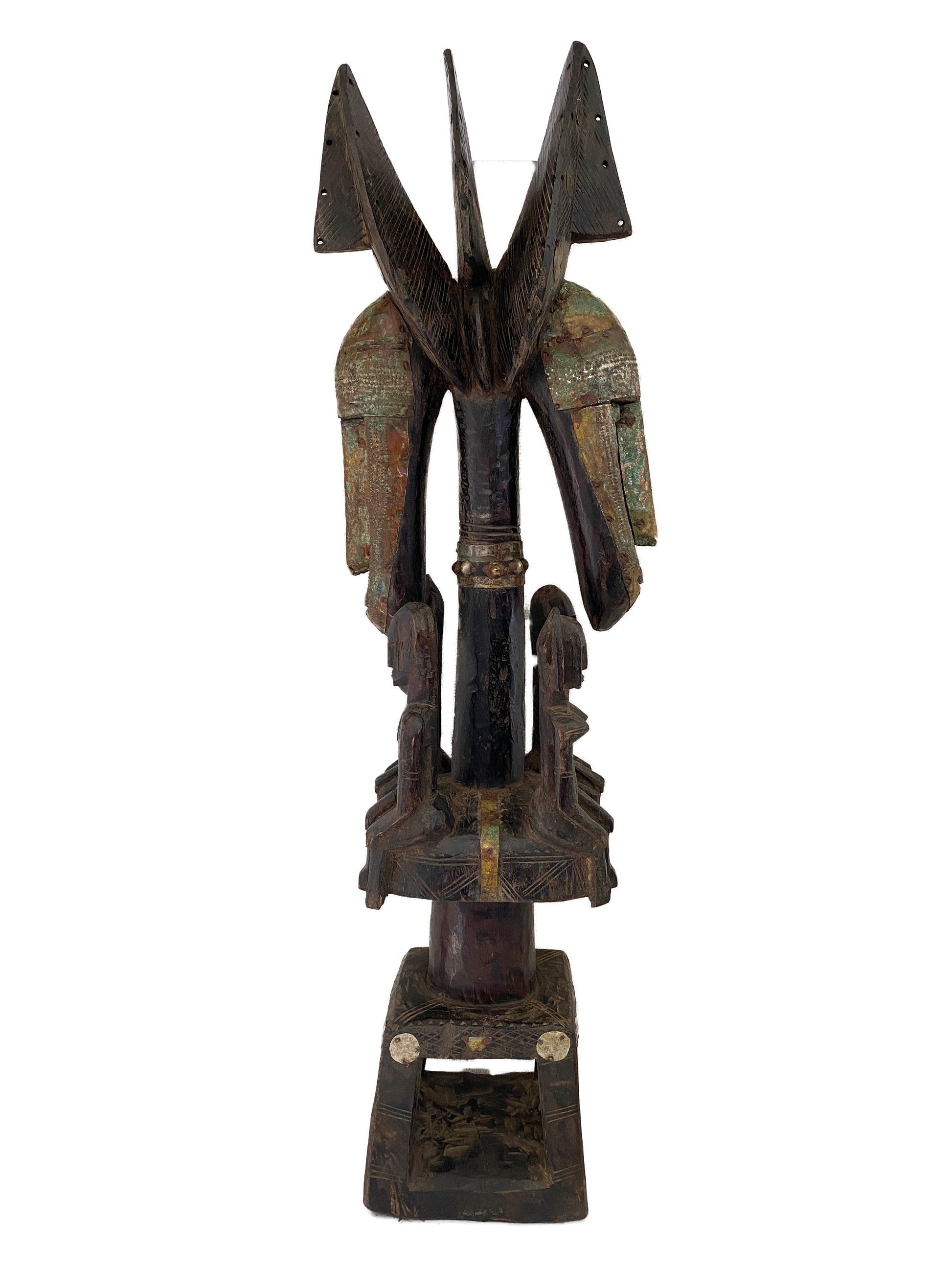 w/nice patina ,faces Adorned with gold metal Studs.