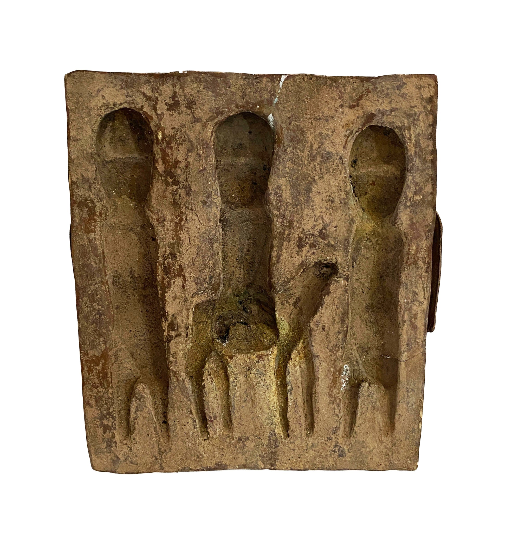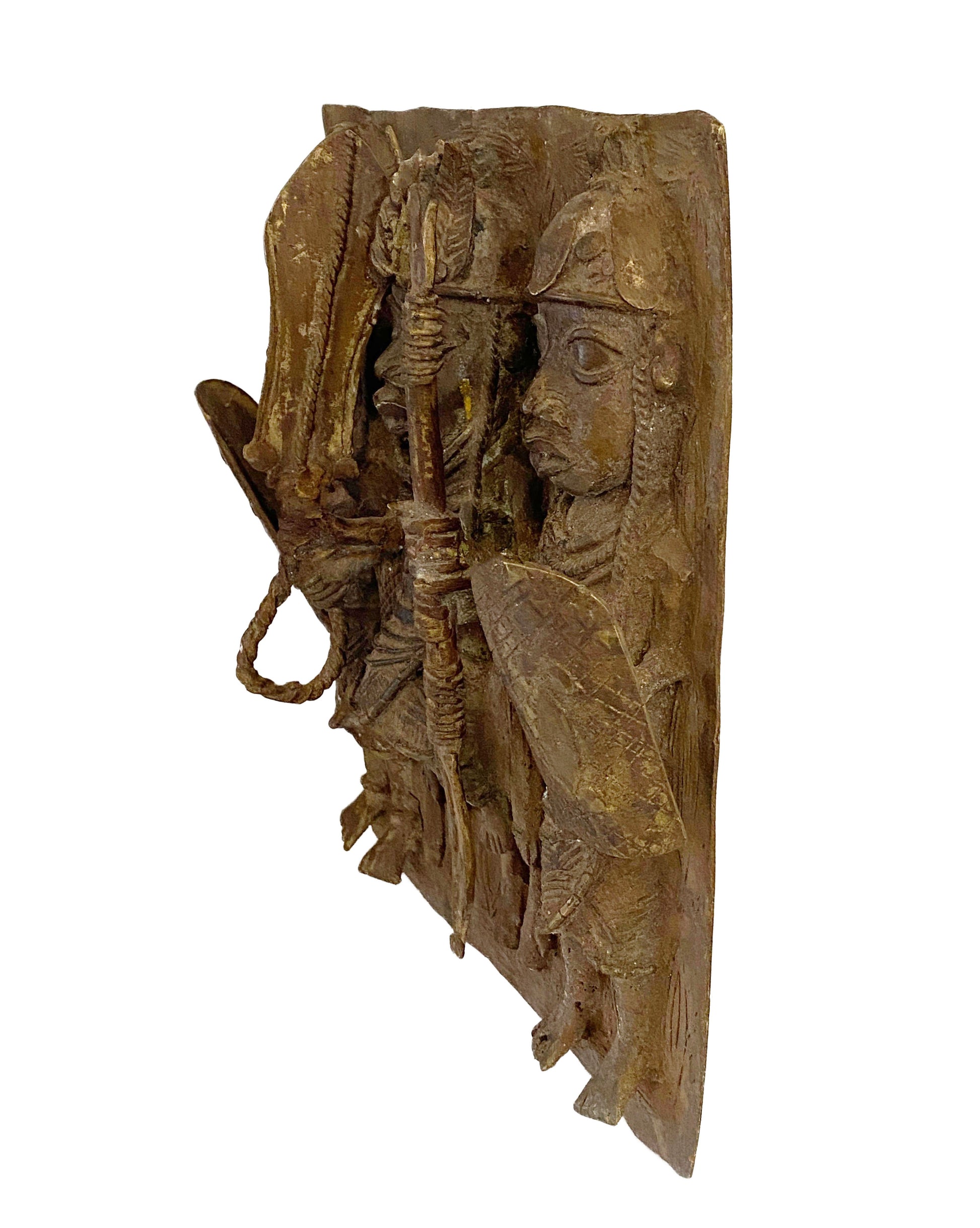 #3925 African Benin Bronze Plaque W/ Warriors 13.25" H