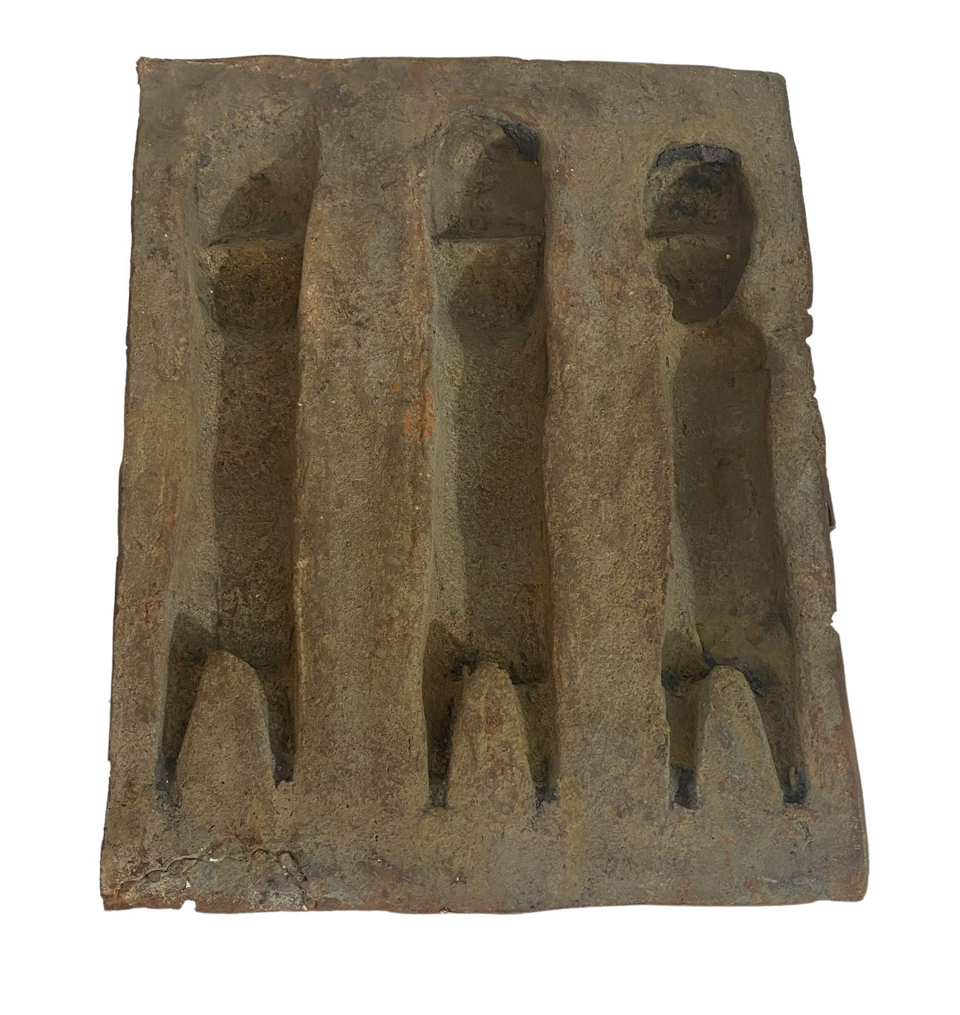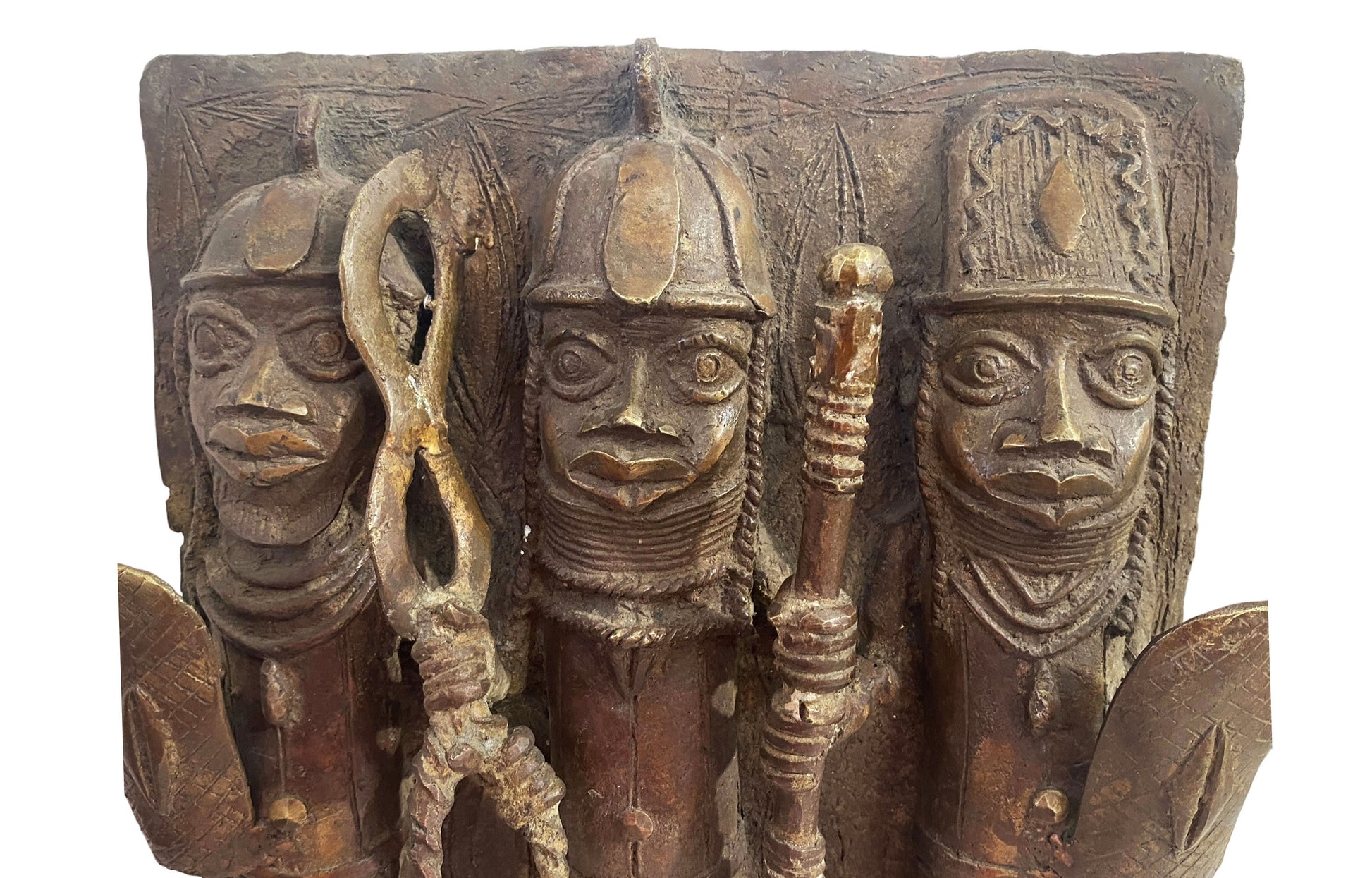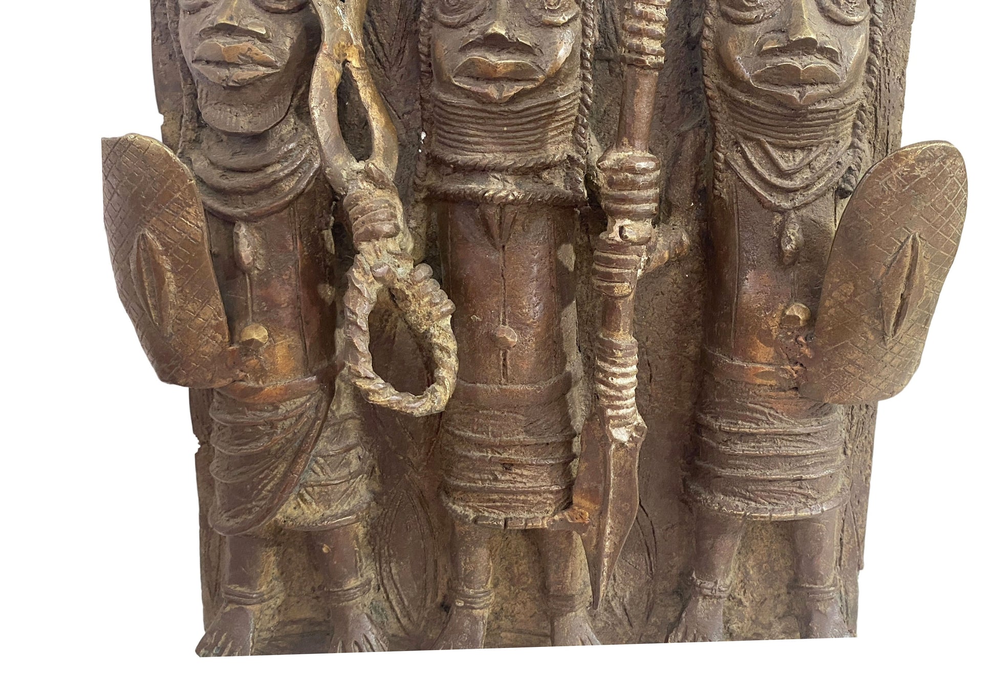 #3929 Vintage African Benin Bronze Plaque W/ Warriors 13.5" H