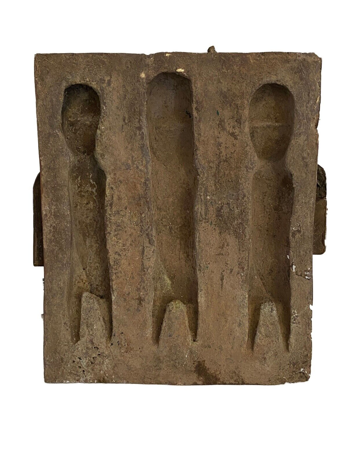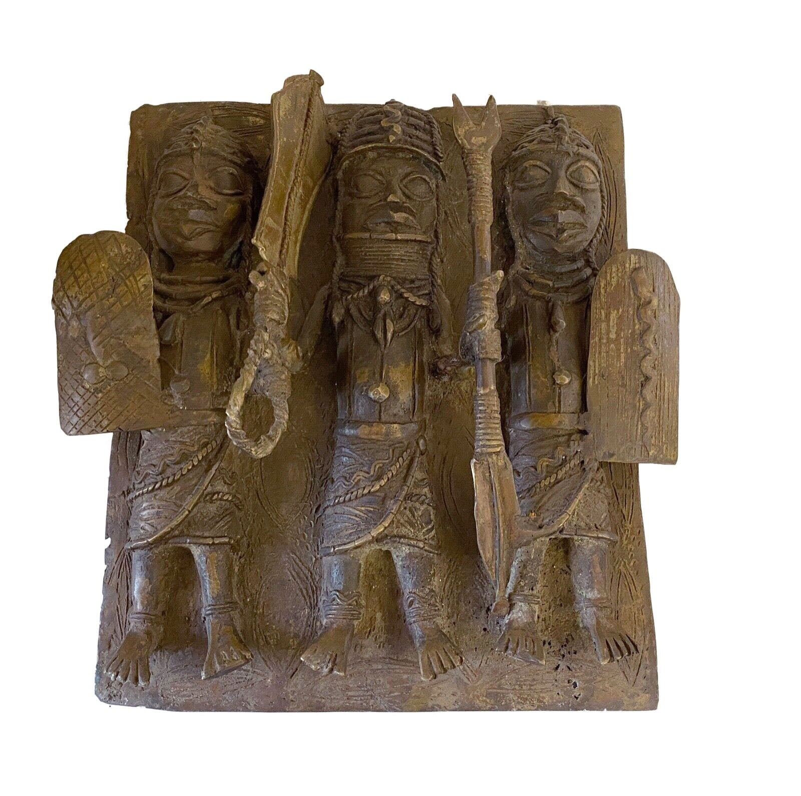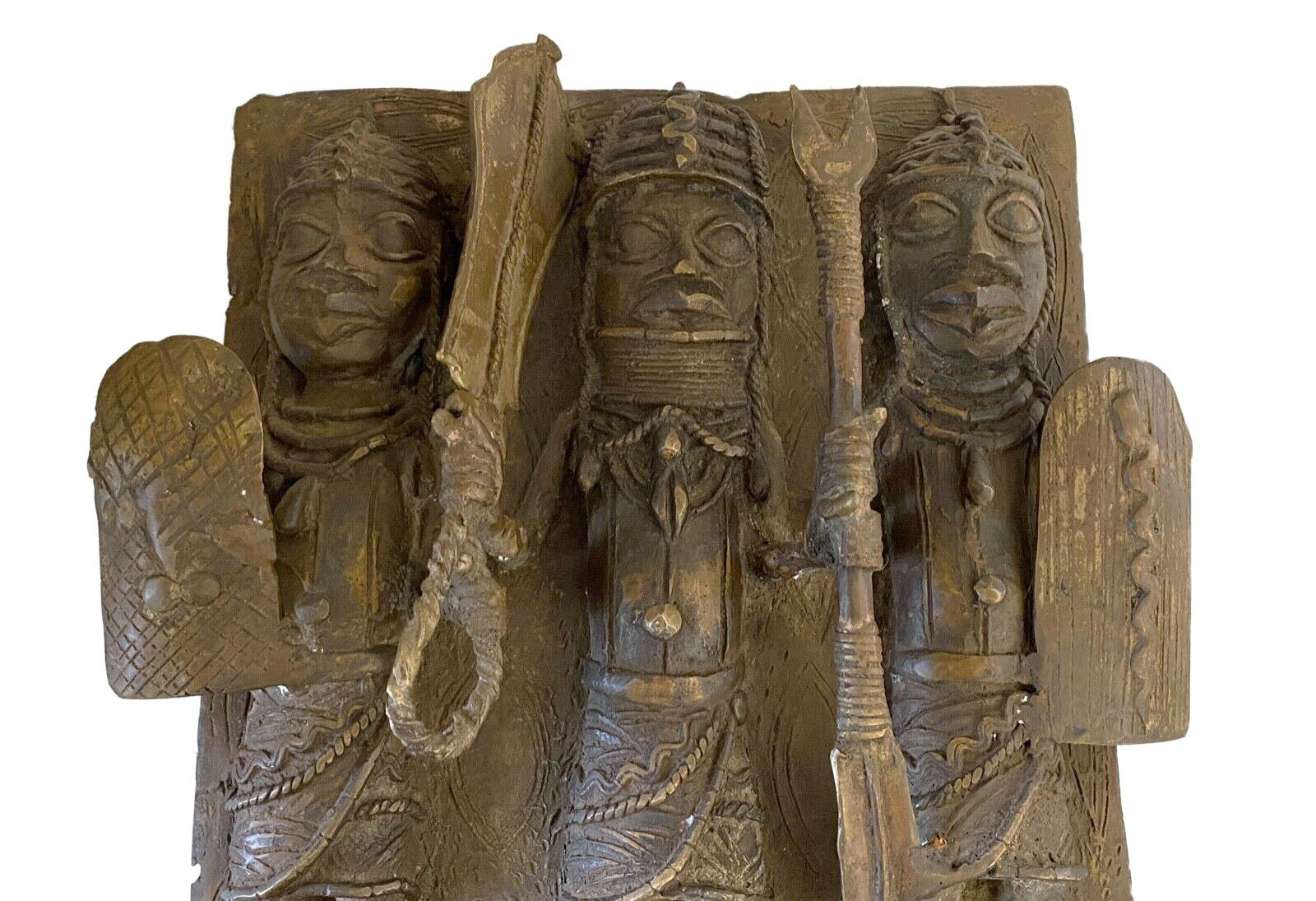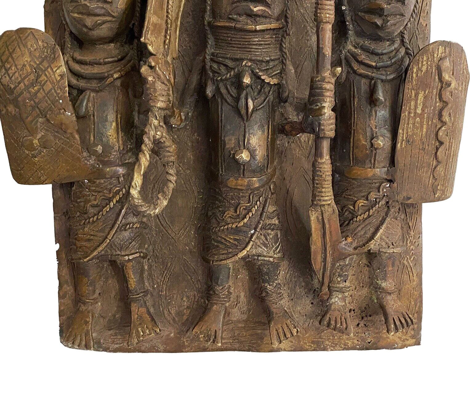 #3931 Vintage African Benin Bronze Plaque W/ Warriors 14" H