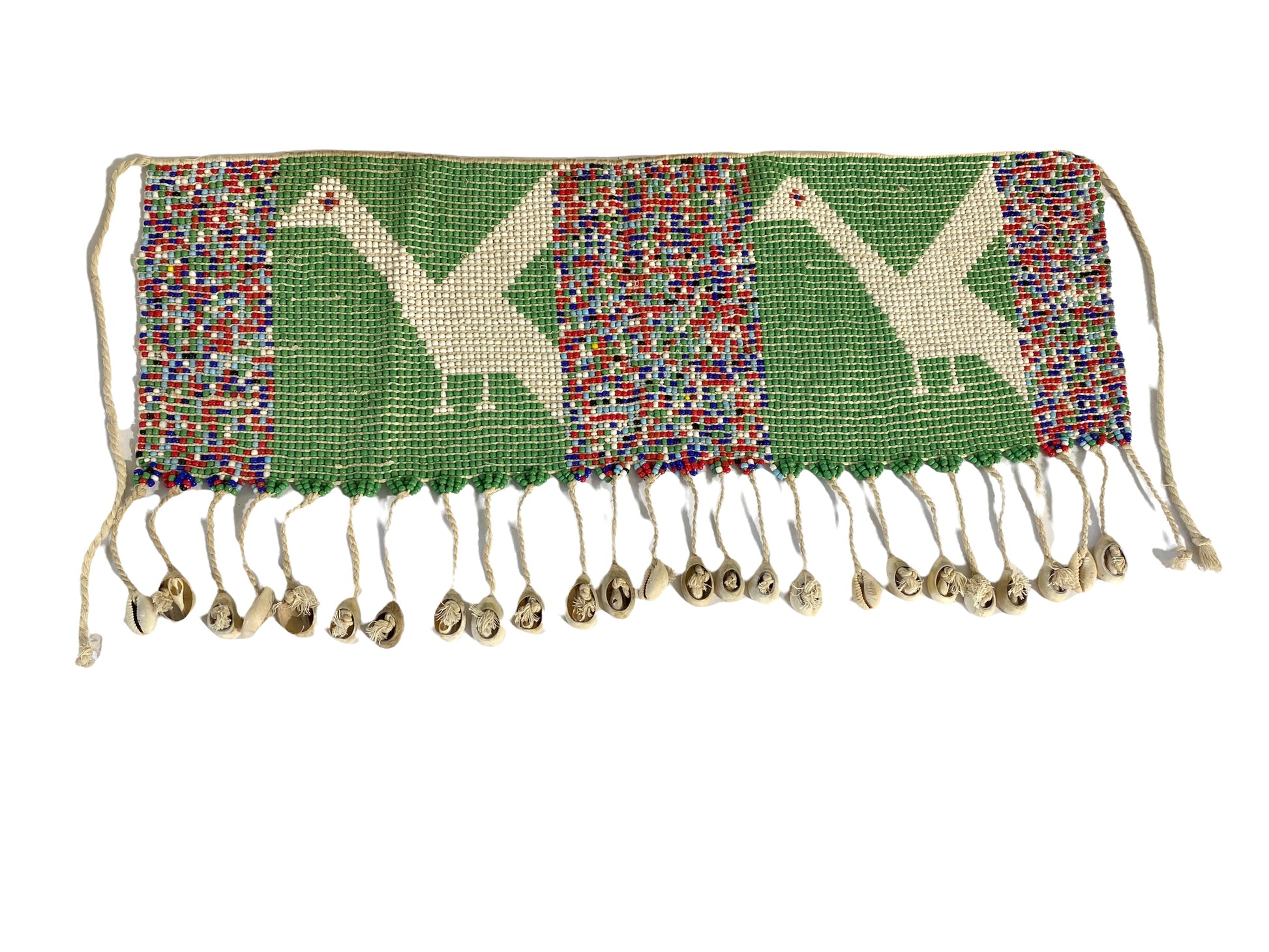 Superb skirt or apron hand beaded with amazing trade glass beads and cowries shells .Can be hanged or framed amazing in Person