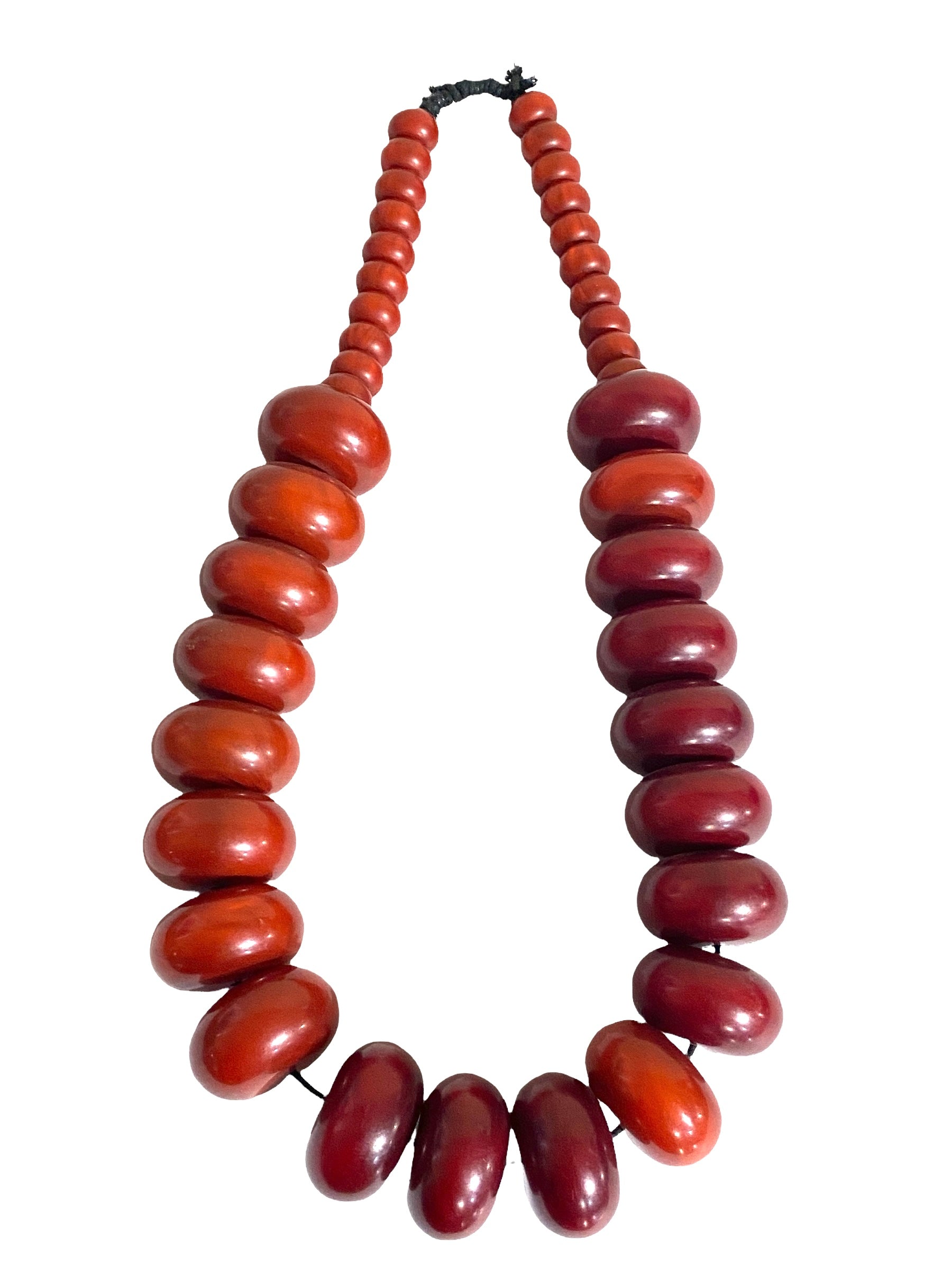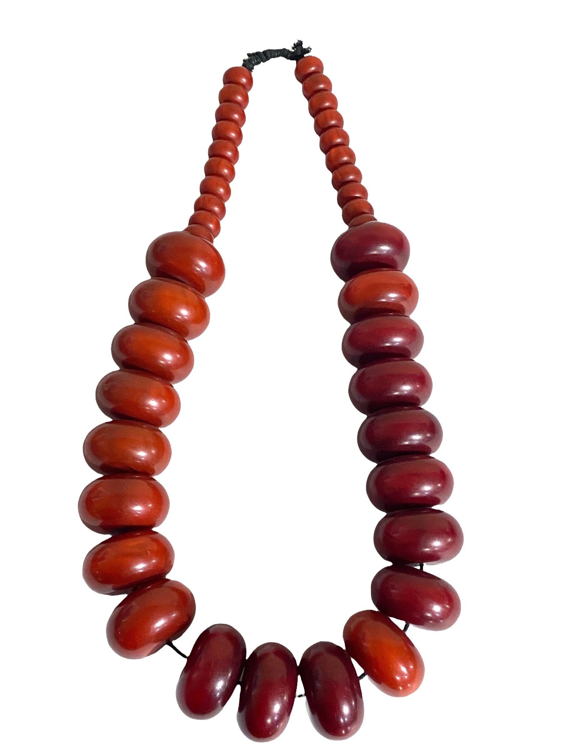 Superb Vintage African Simulated Amber Necklace w/50 trade beads