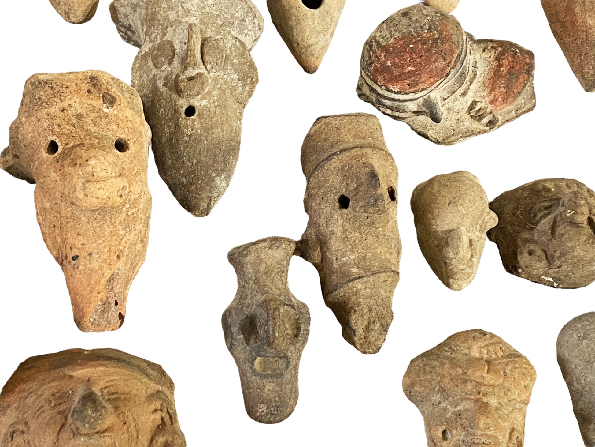 #4635 Rare Pre-Columbian Mounted Pottery 17 Fragments