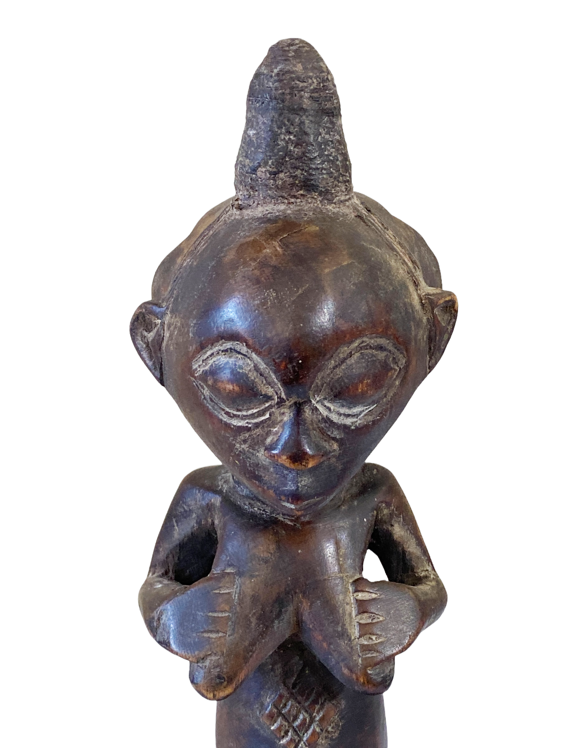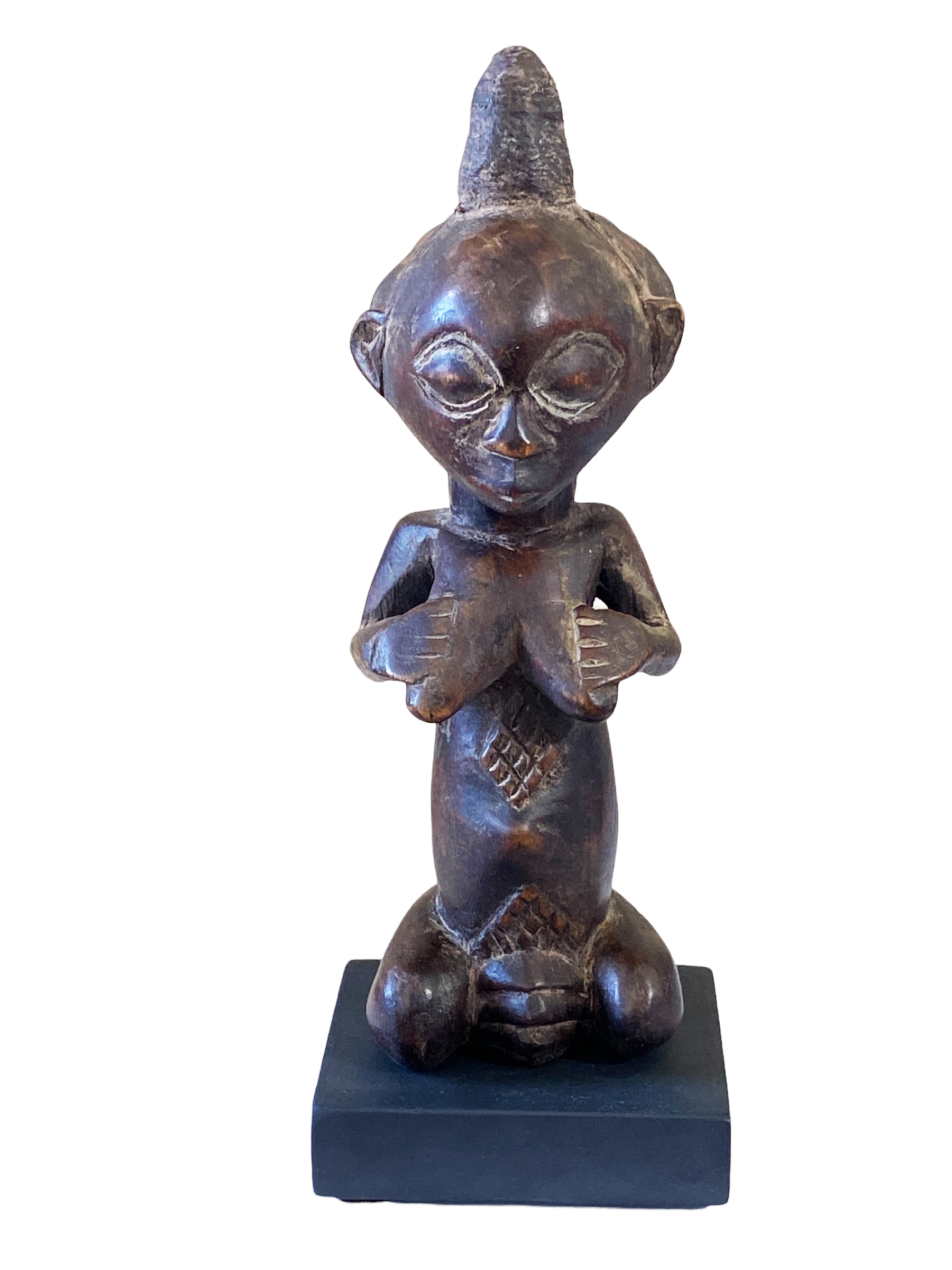 #4745 Tribal African Luba, Court Knelling Fertility Female DR of Congo on Stand 13.5" H