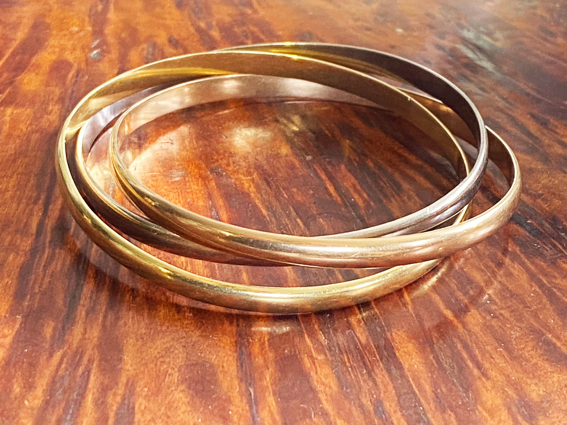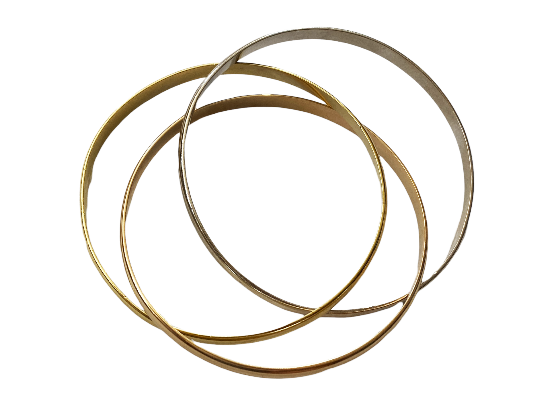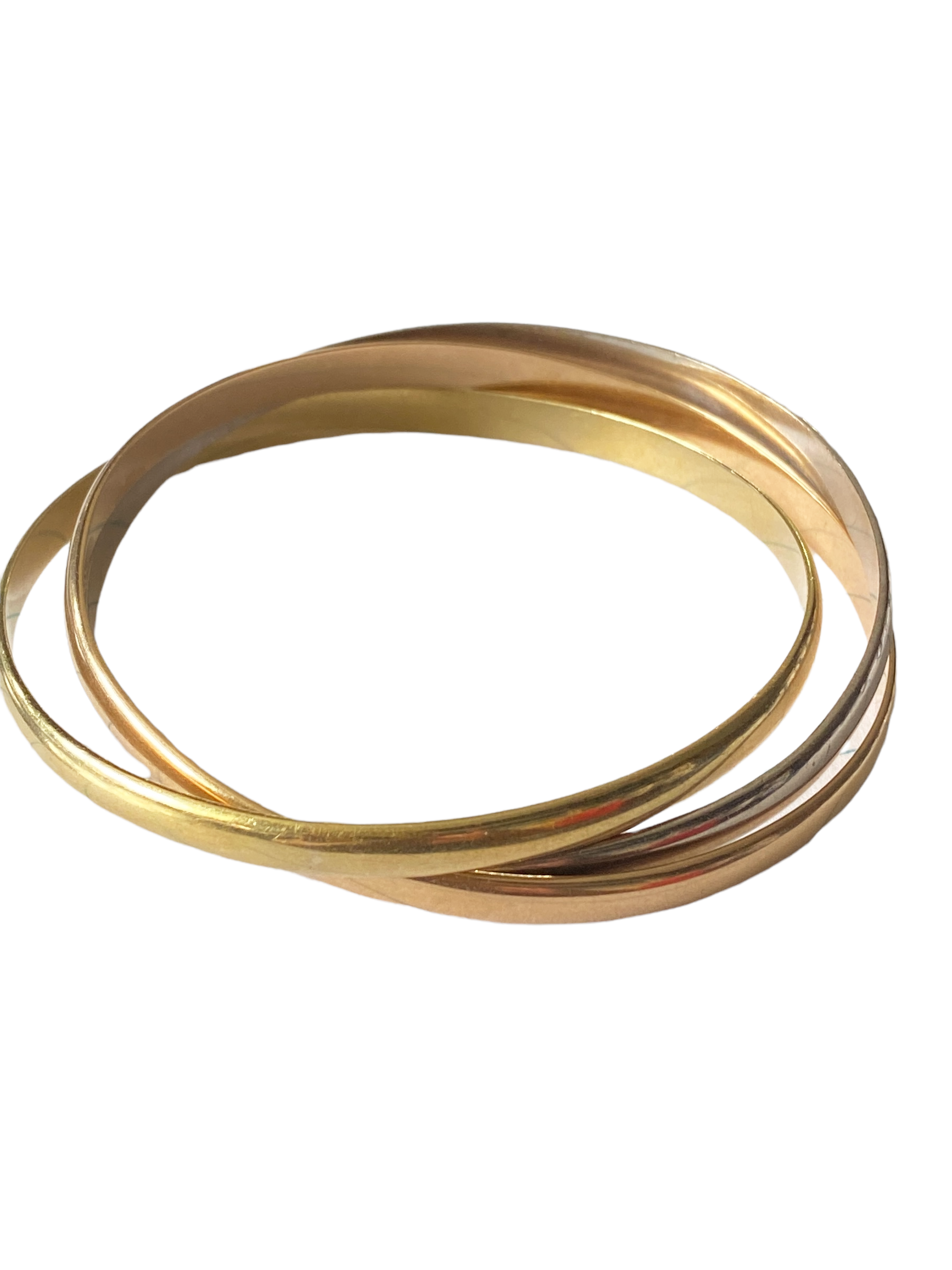 #4861Cartier Style Tri-Tone 18 Karat Interlocking 3 Bangle Trinity Bracelet