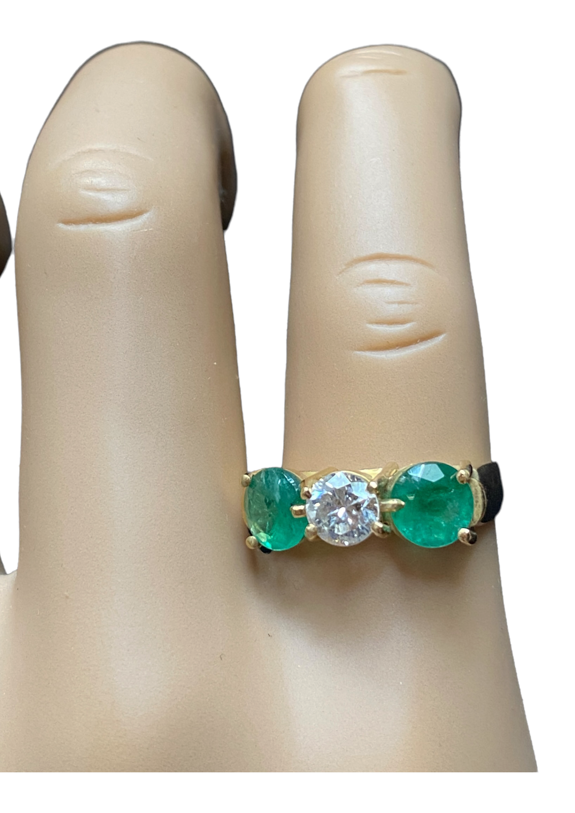 #4866 Superb 18k Diamond and Emerald three stones Ring Size 8.5