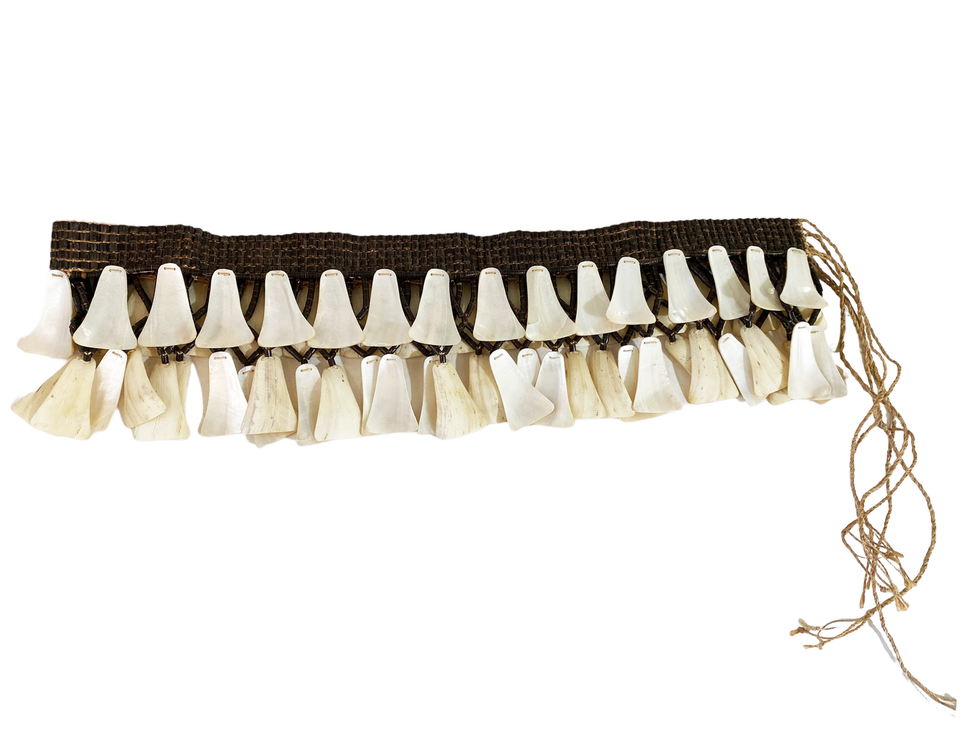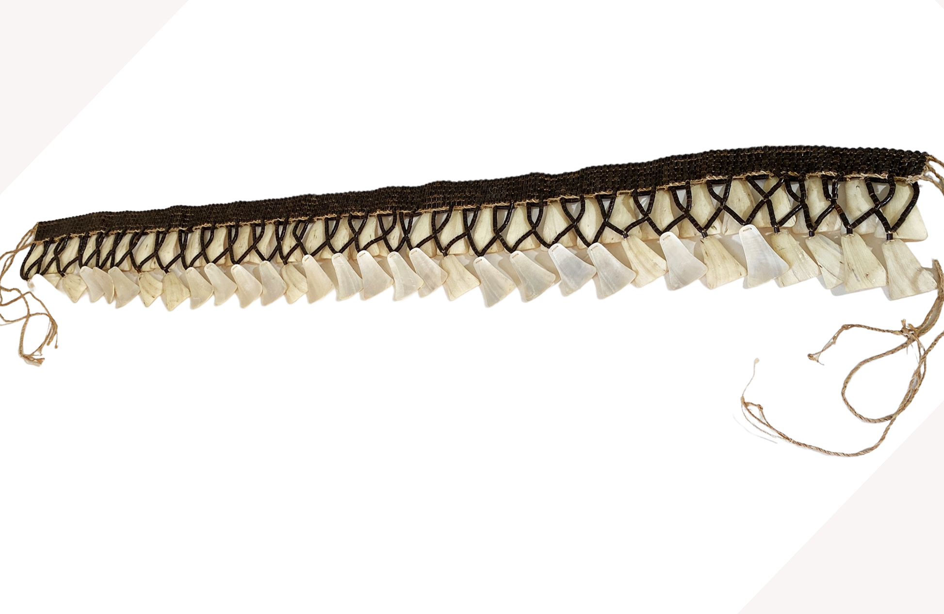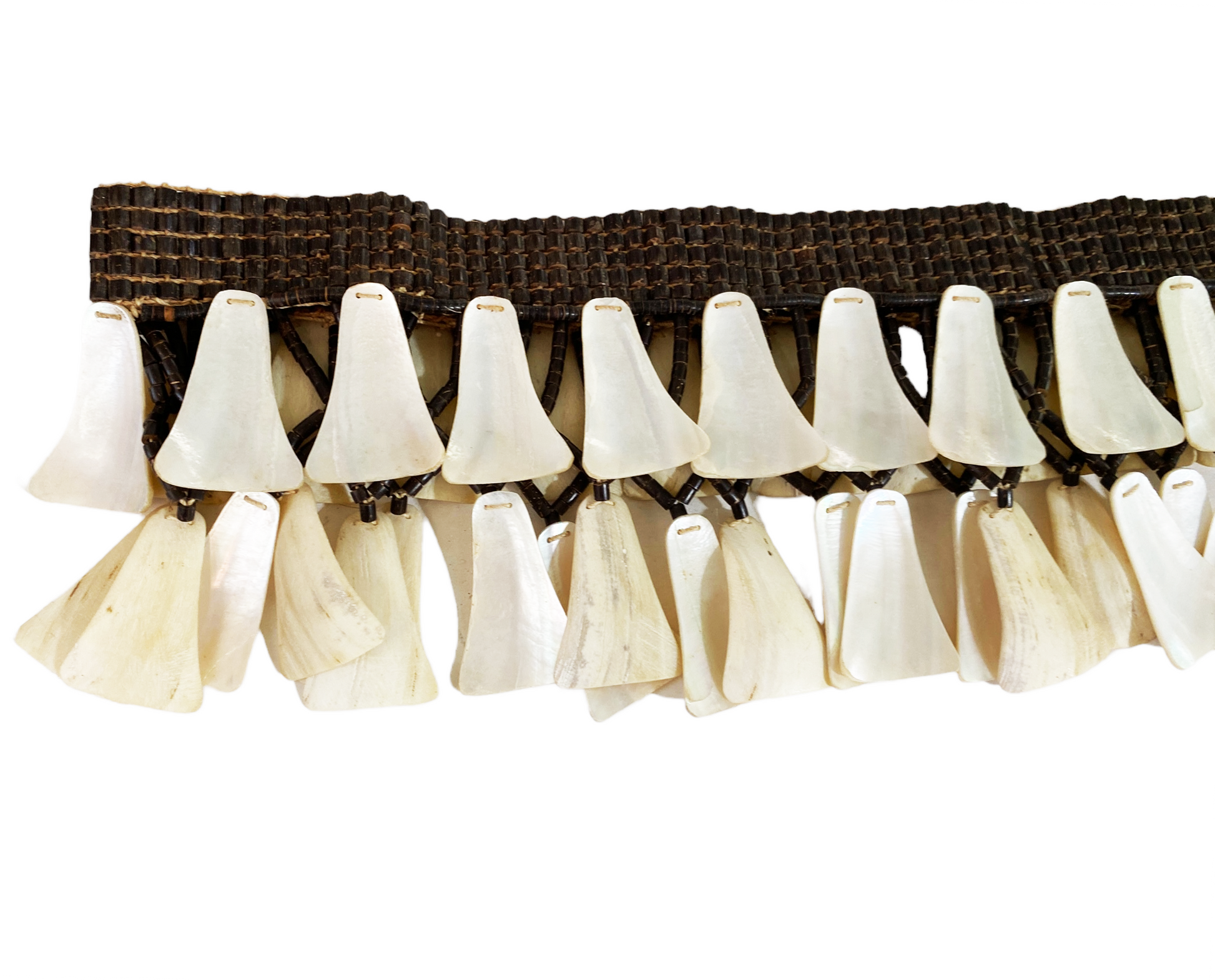 Superb and rare unique Ornamental piece Tribal Belt hand made of tiny Coconut beads and two rows of river shells interlaced with coconut beads ,By the Brazilian Tribe the Mamaindê.