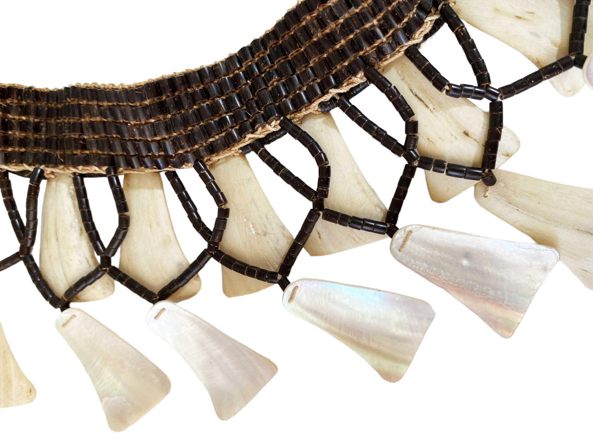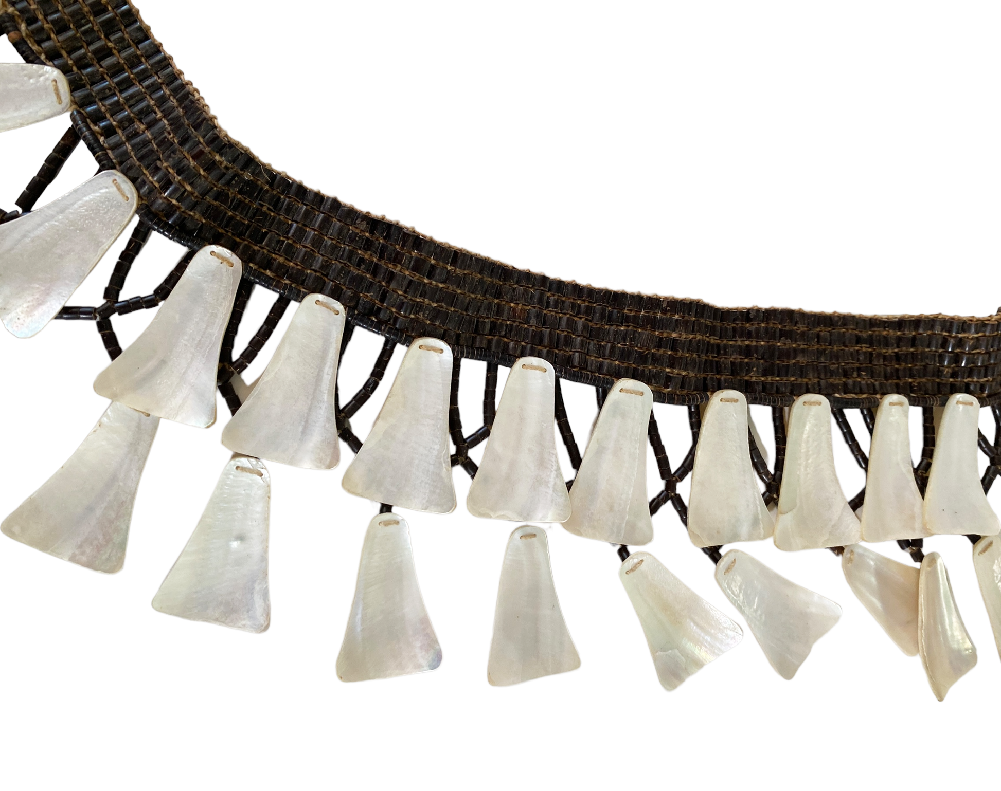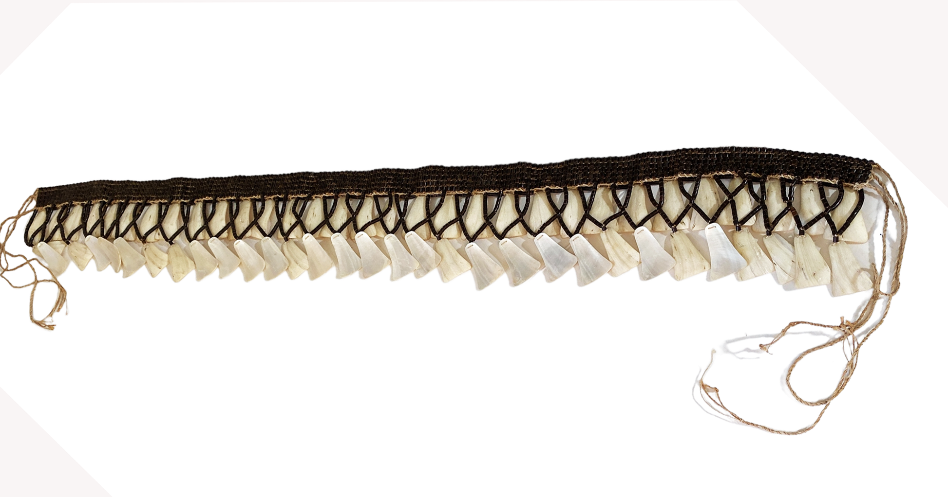 Superb and rare unique Ornamental piece Tribal Belt hand made of tiny Coconut beads and two rows of river shells interlaced with coconut beads ,By the Brazilian Tribe the Mamaindê.