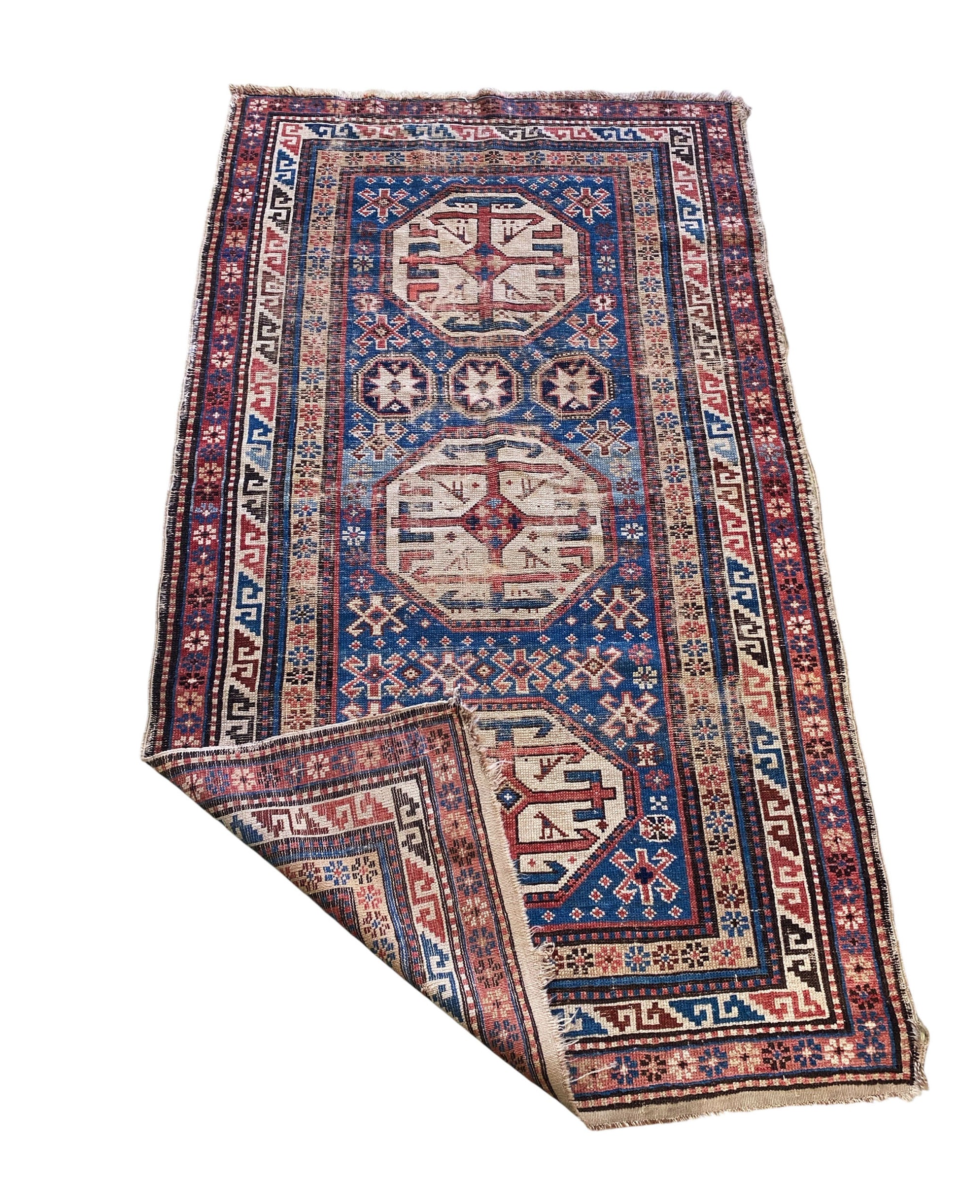 #519 Antique Kazak Handwoven Tribal Rug 38.5" by 68"