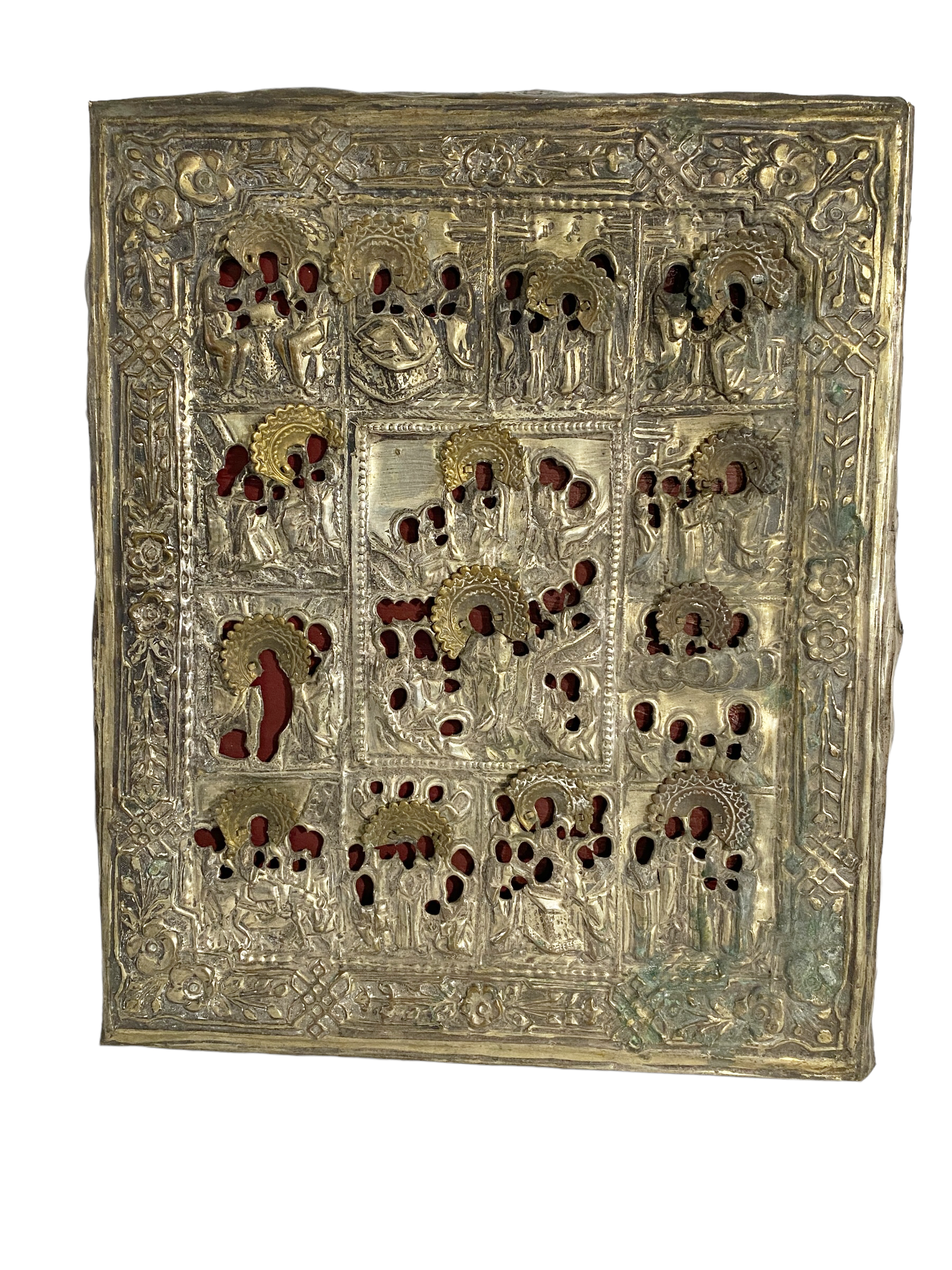 #5214 Antique Russian Silver Riza / Oklad 14.5" H