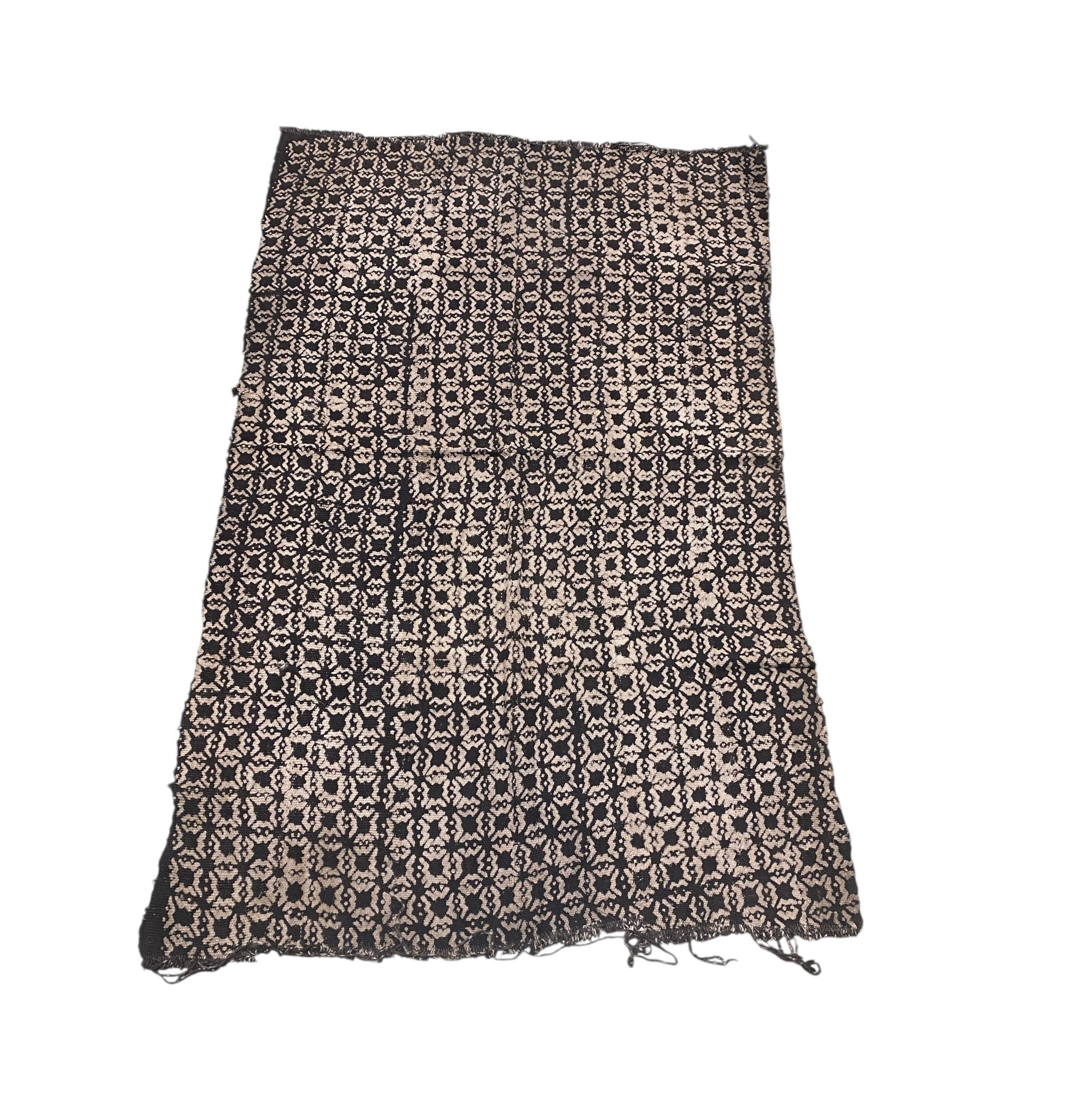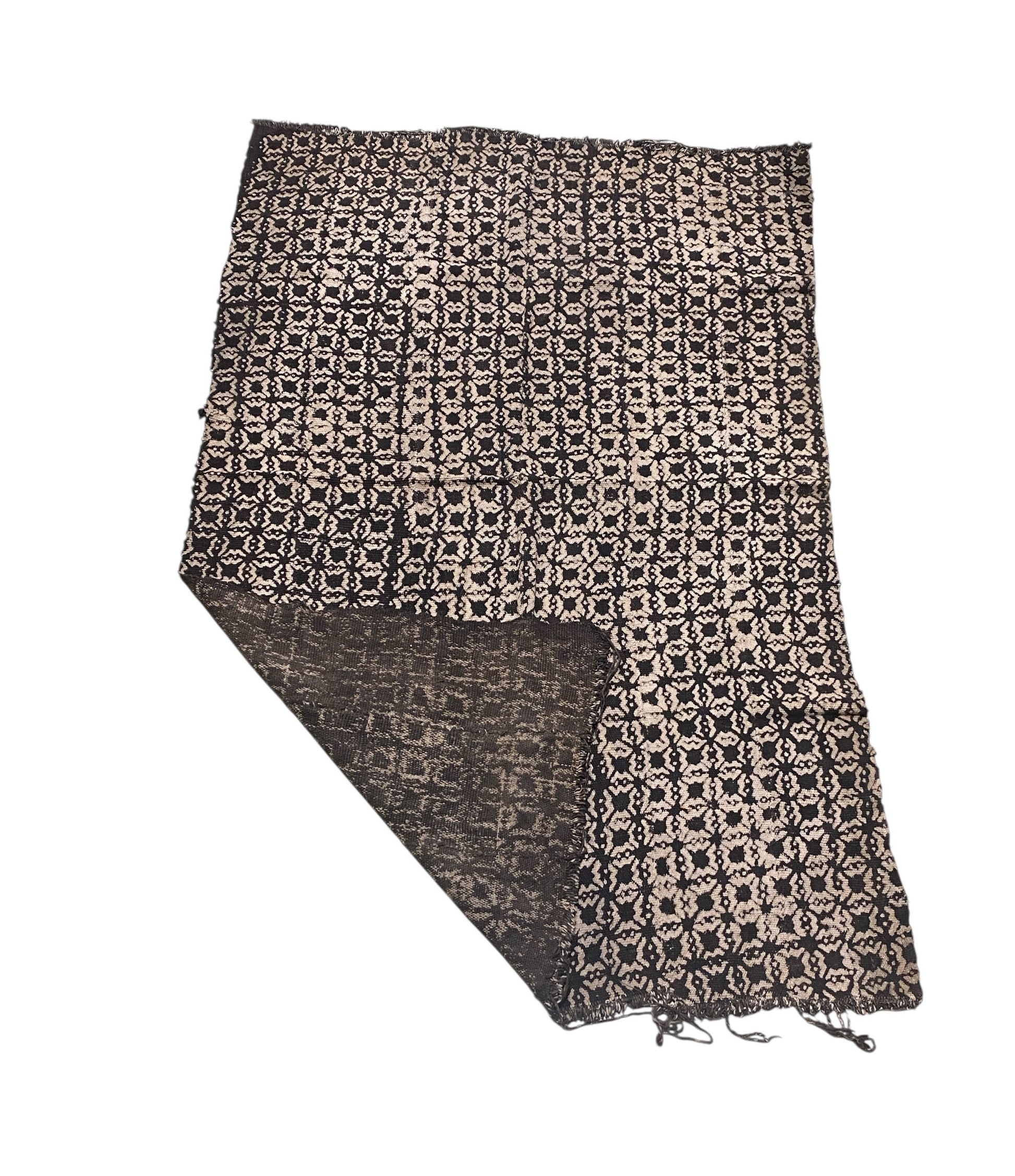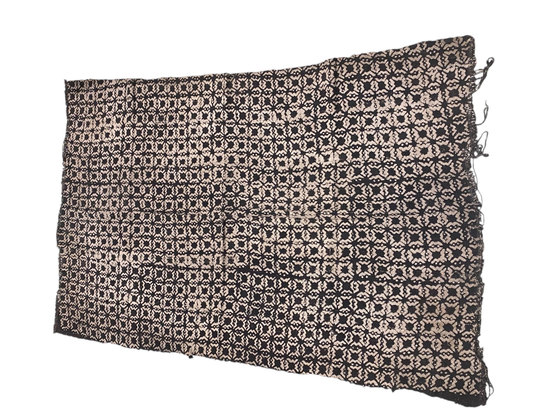 Superb vintage Handwoven mud cloth from Mali by the Bamana people. Cotton textile with black and beige geometric patterns created through traditional natural dyeing. 32" by 50". Vintage condition with dye imperfection overall good condition