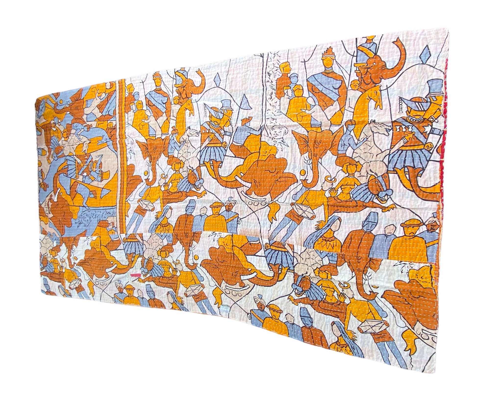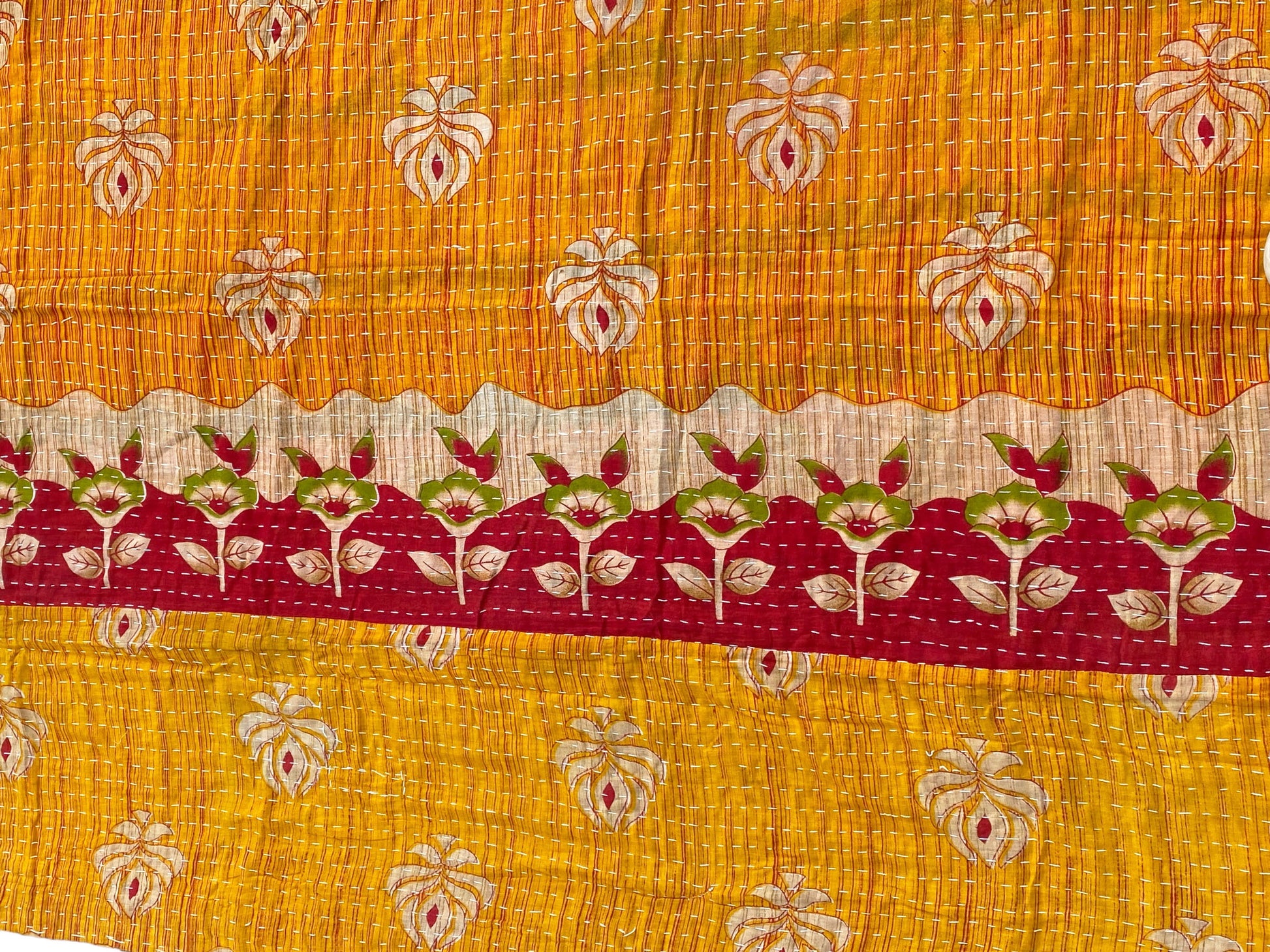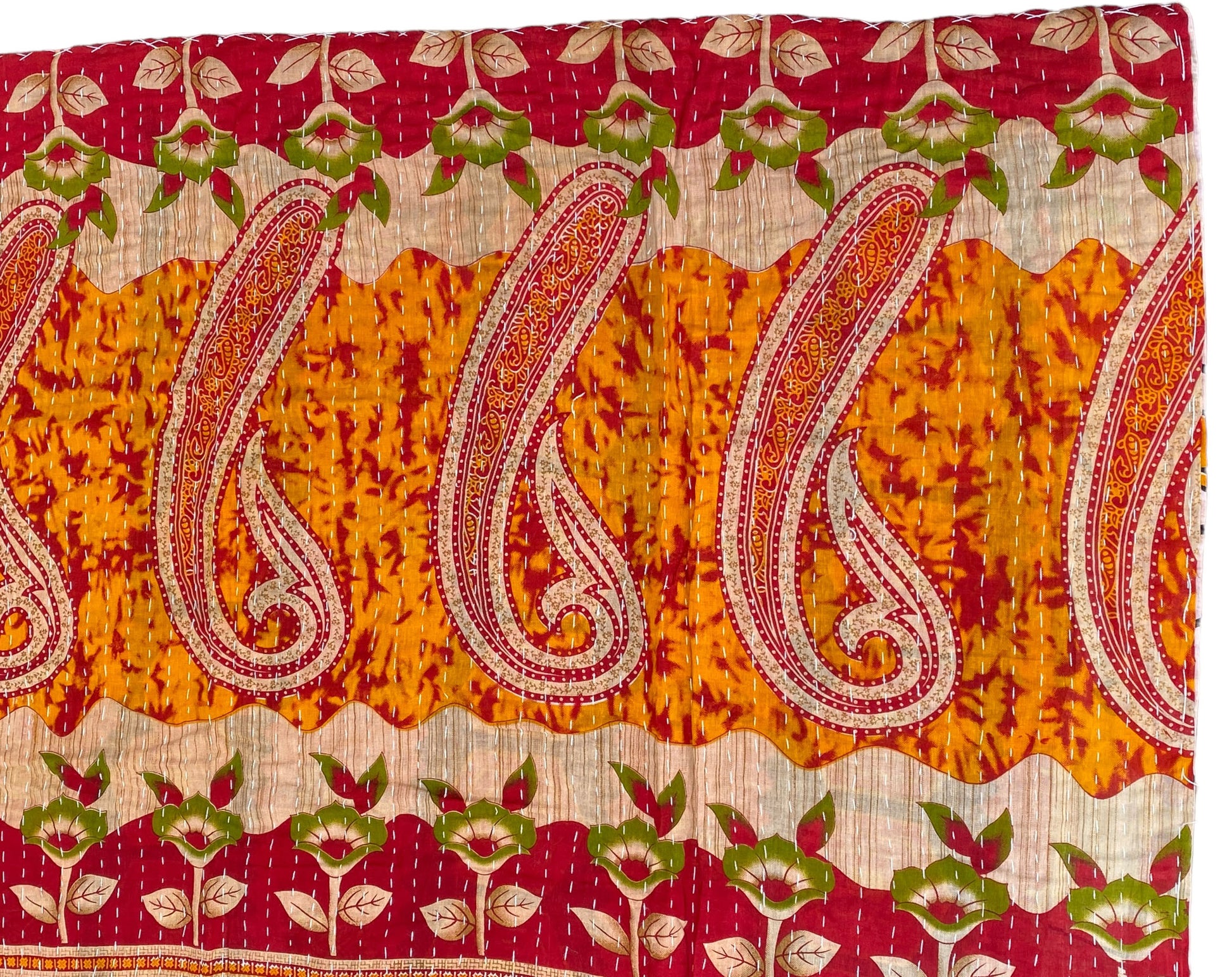 The entire quilt is hand embroidered with end number of straight stitches to create a unique product, one of a kind, All these make them a Vintage Kantha Quilt