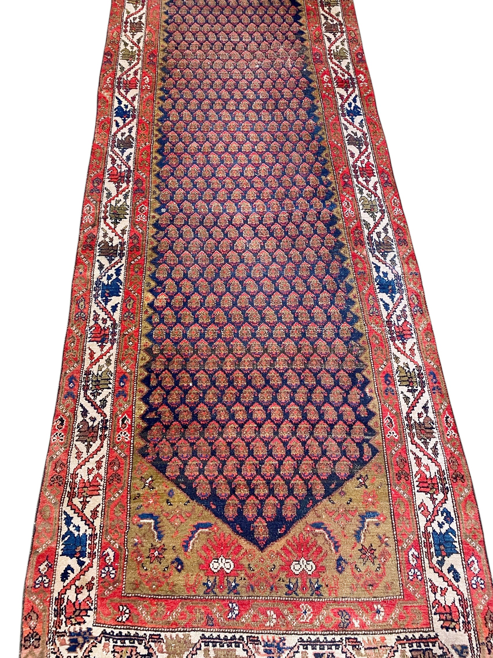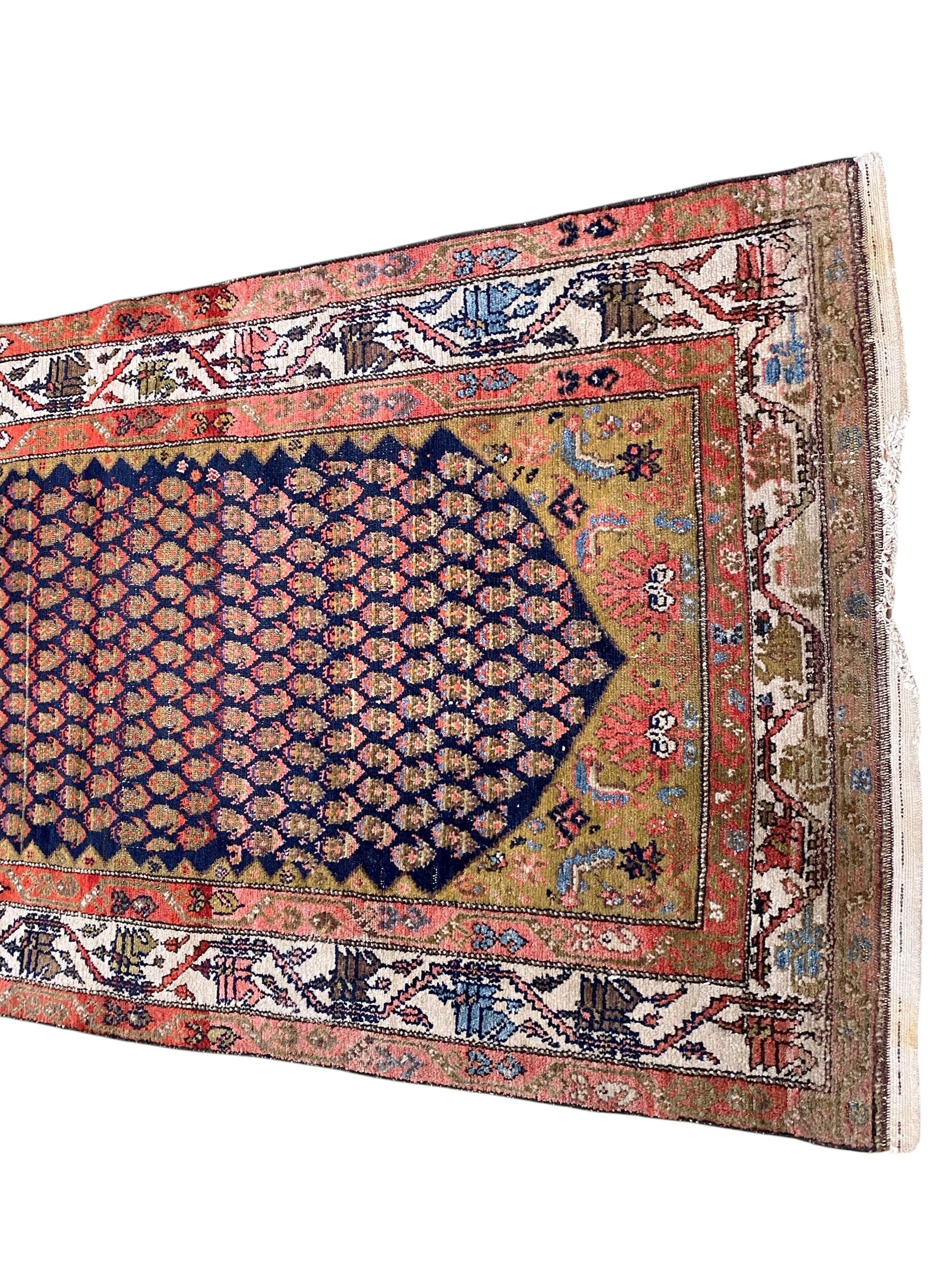 #535 Antique Malayer Paisley Design Runner in Red, Orange, and Blue 3'8 by 16'