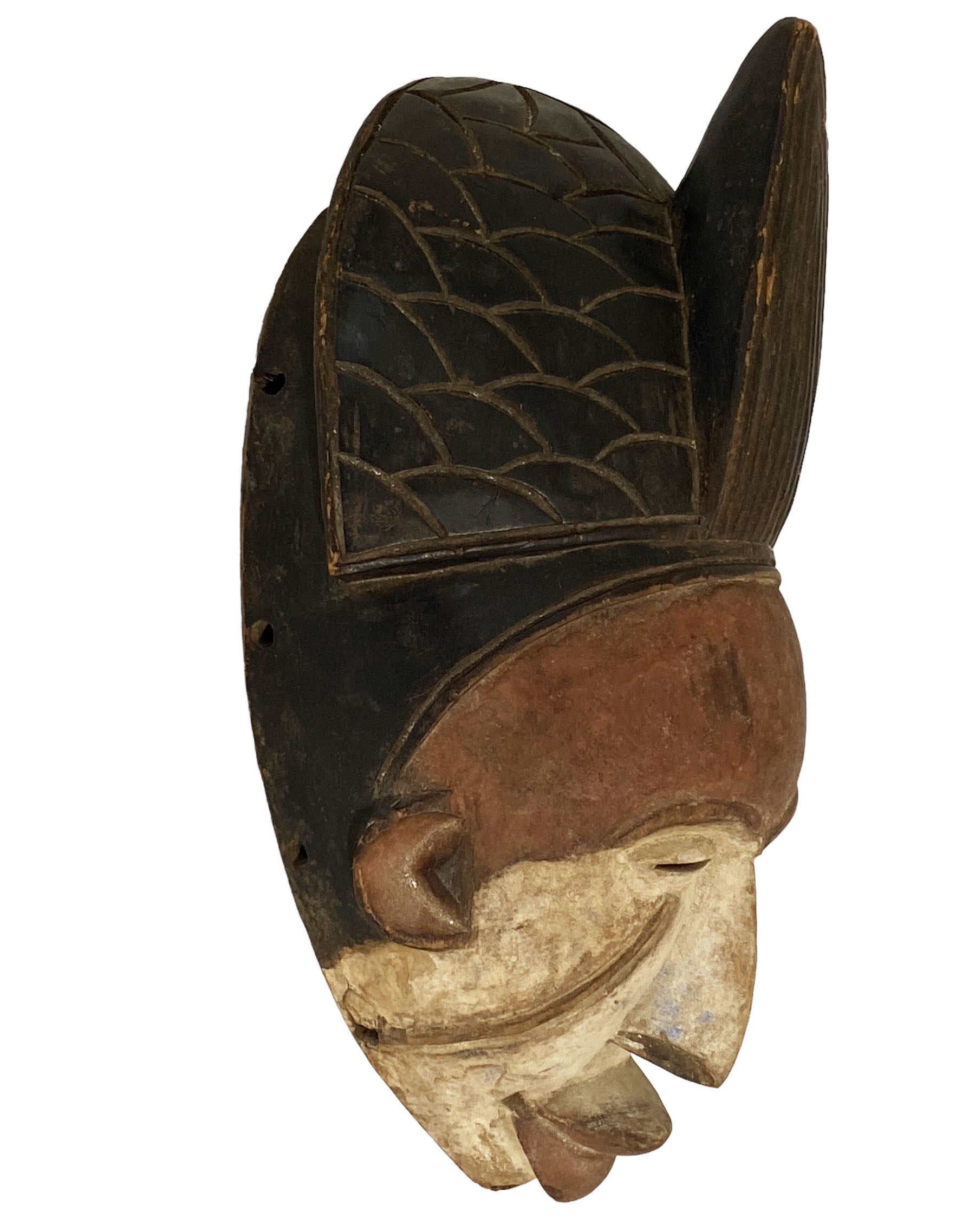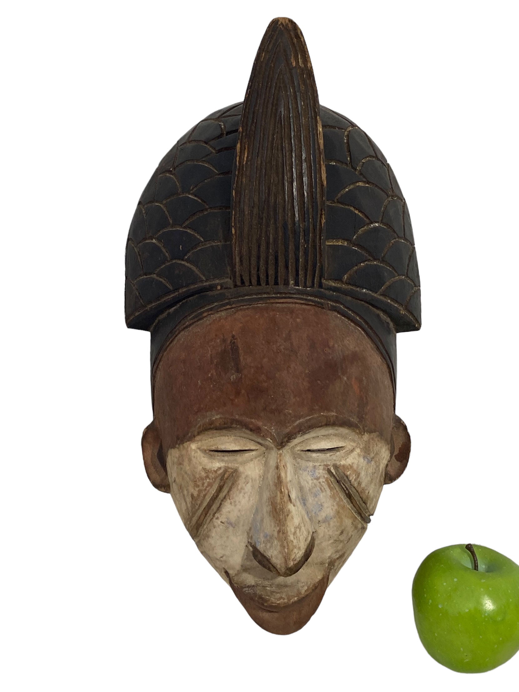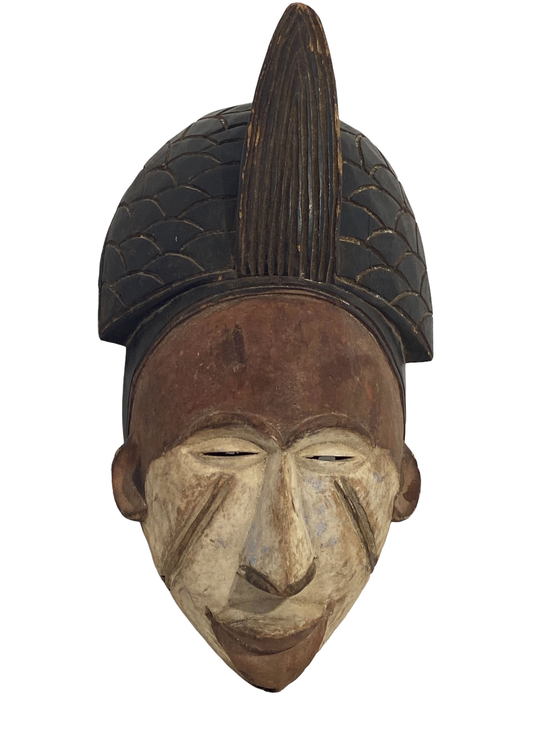 Superb Igbo Nigeria wooden painted mask This mask represents a male character by its headdress.