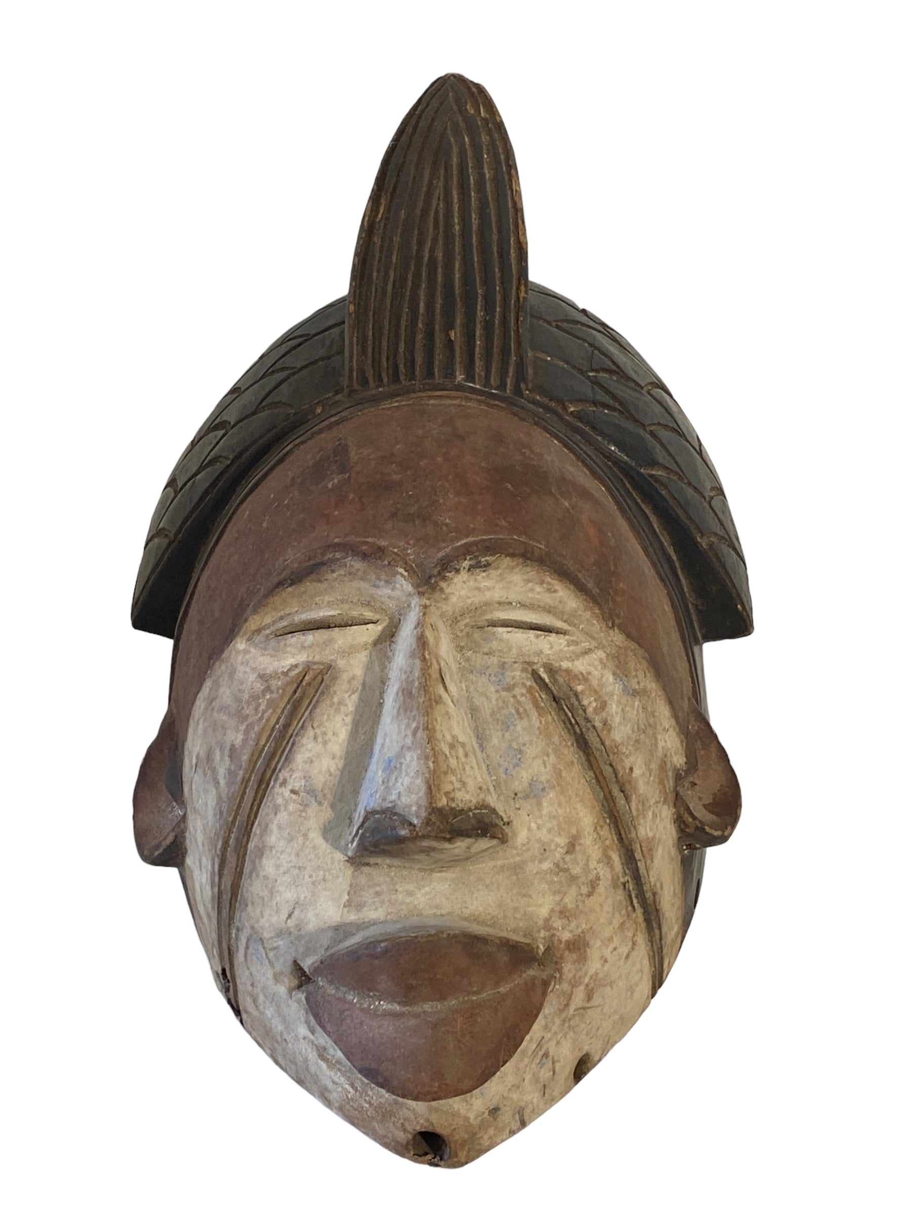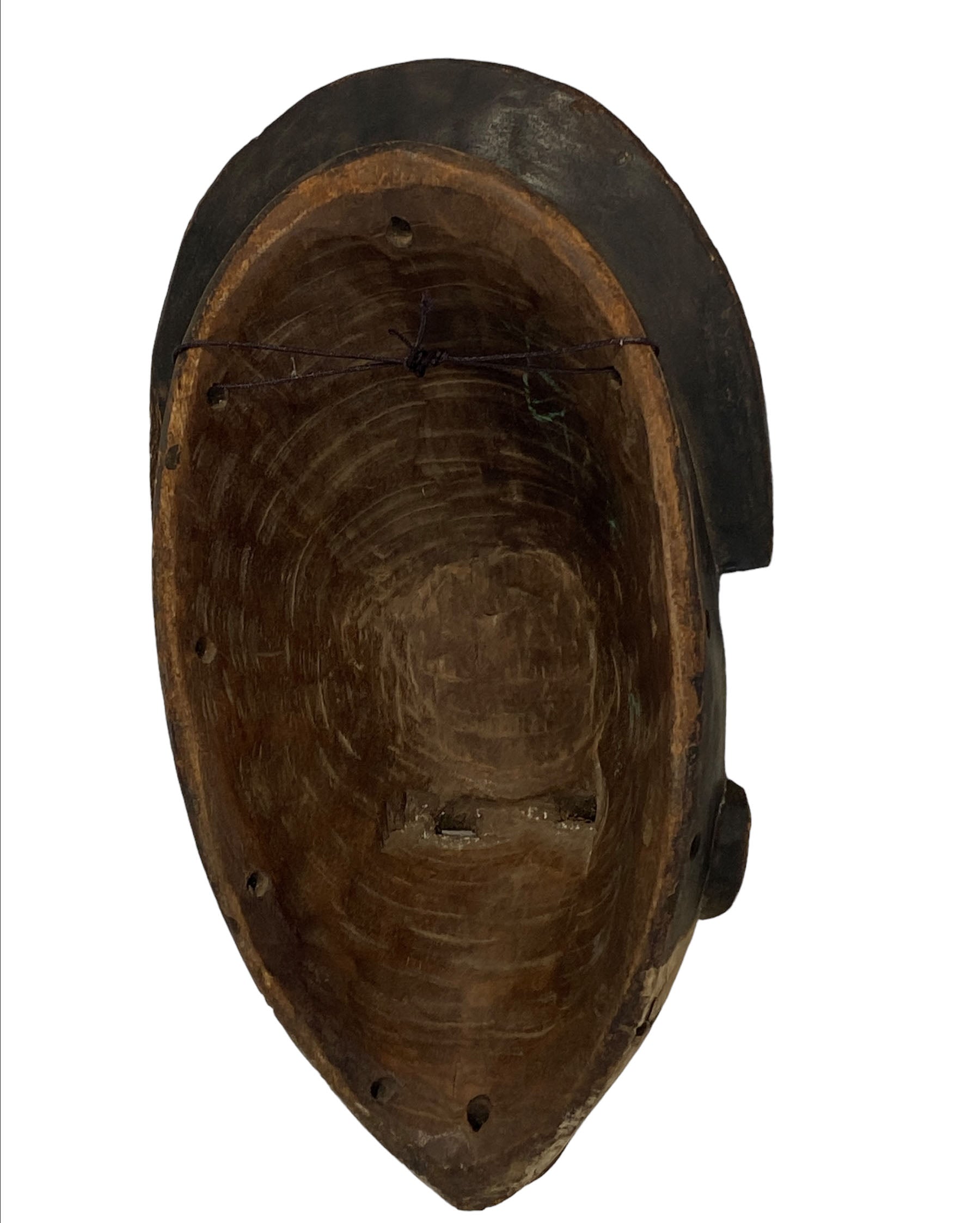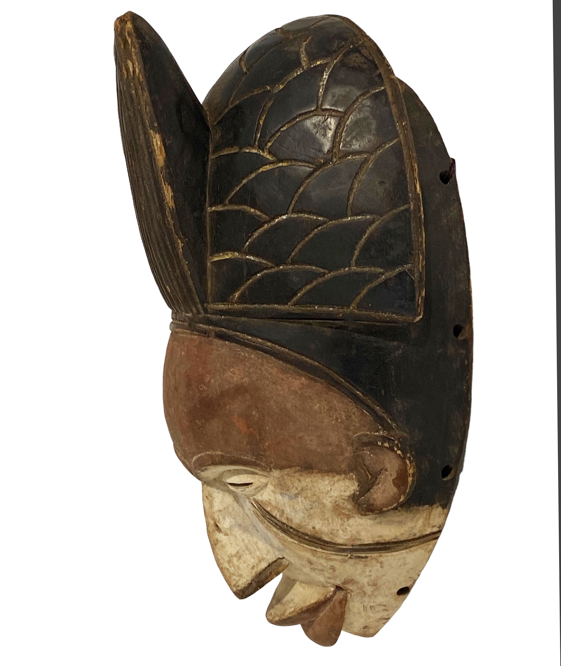 Superb Igbo Nigeria wooden painted mask This mask represents a male character by its headdress.