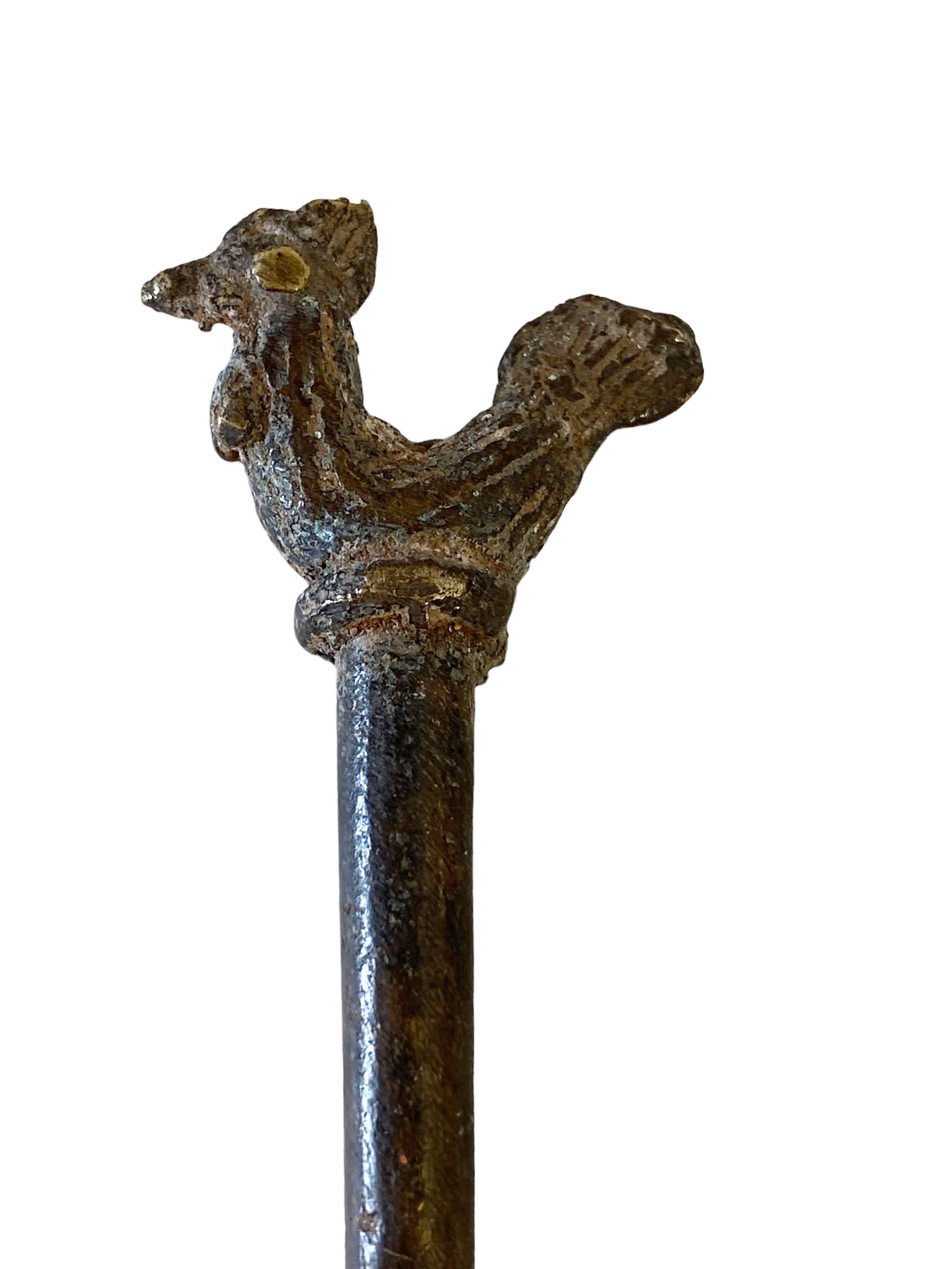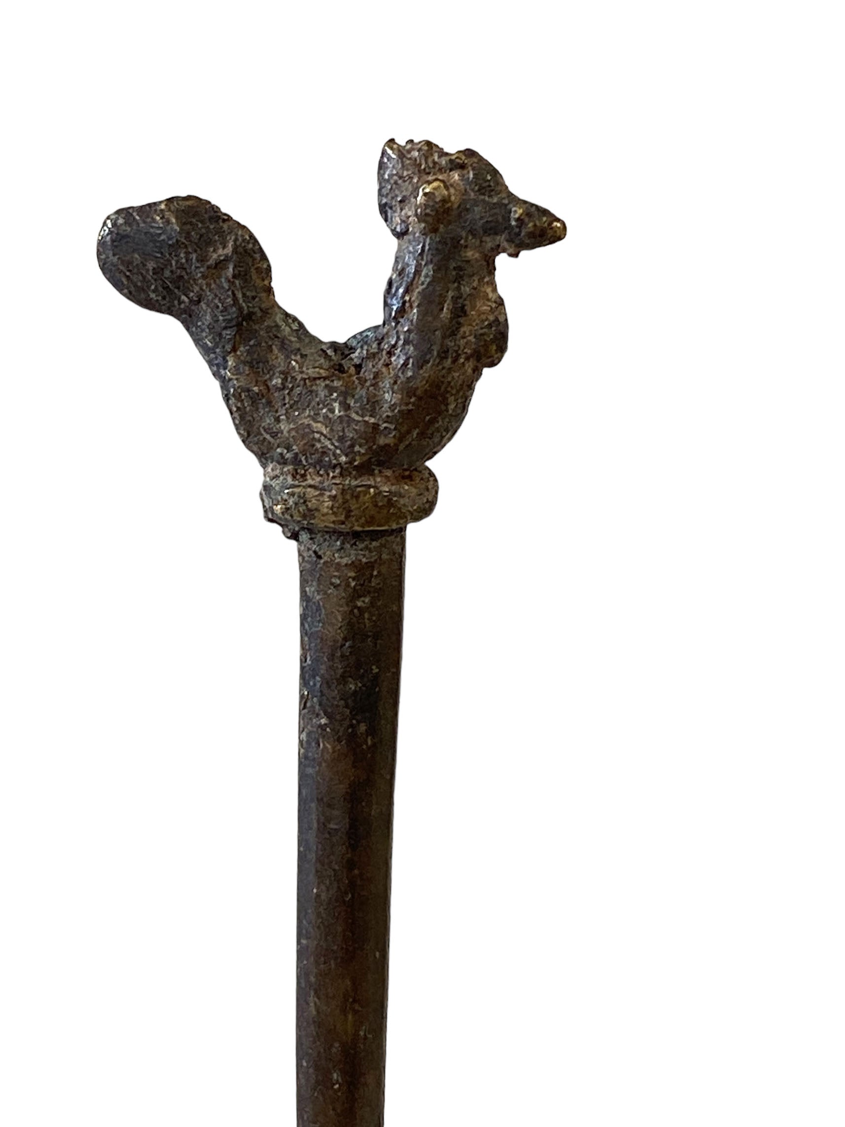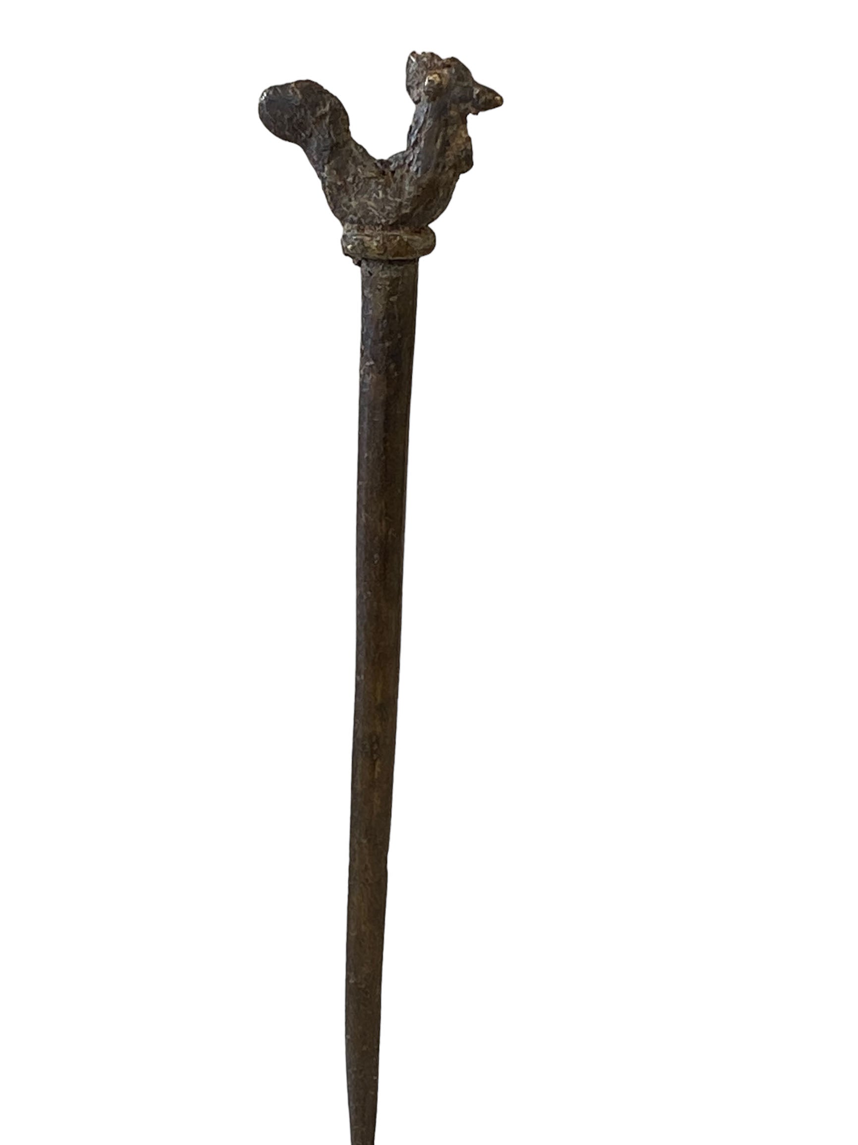 This superb bronze hair pin, created using the time-honoured lost wax technique in Ghana, is a one-of-a-kind piece. Measuring 5.5"H by 1"W, it is in very good condition, showing signs of age and use.