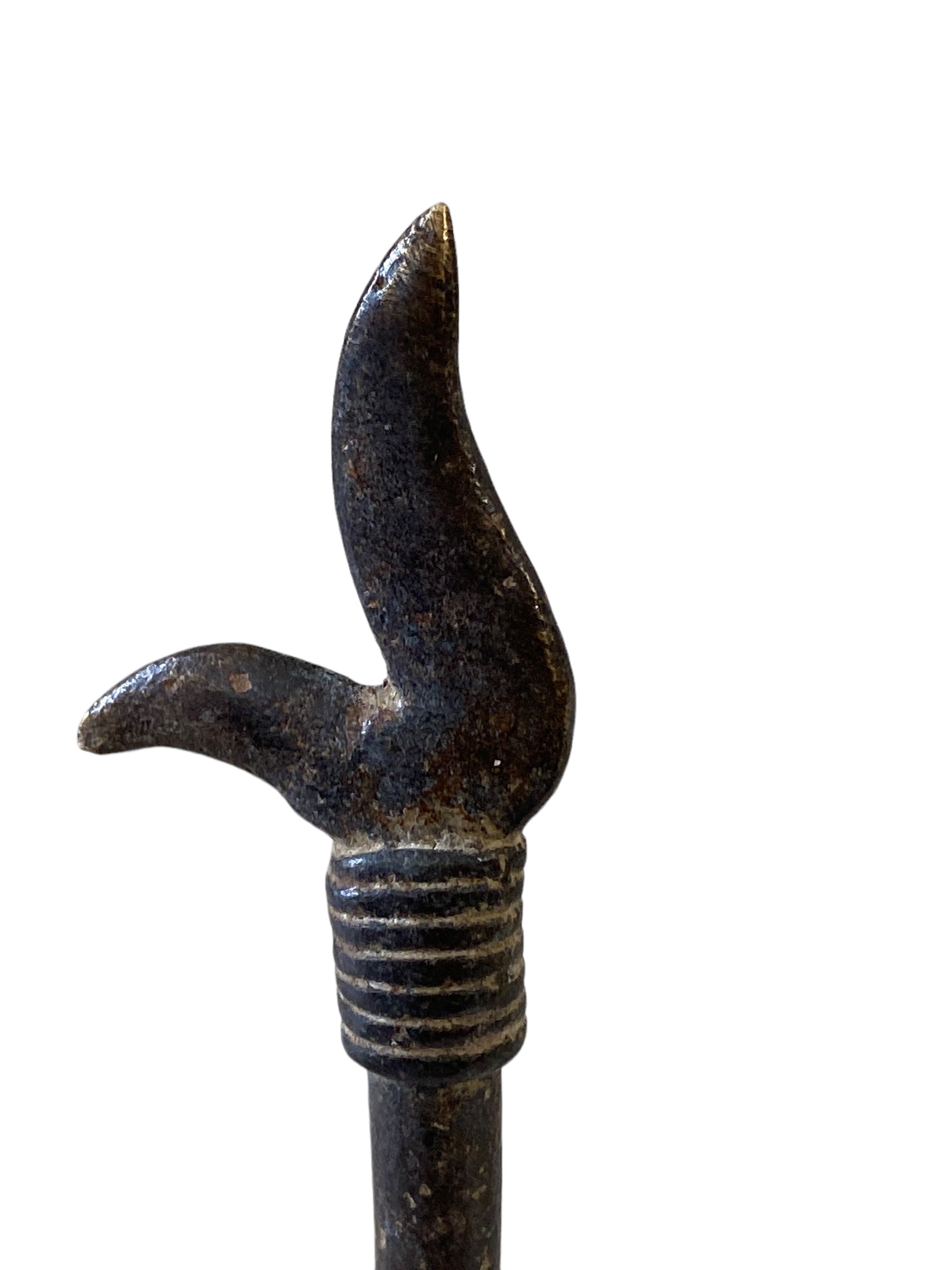 This superb bronze hair pin, created using the time-honored lost wax technique in Ghana, is a one-of-a-kind piece. Measuring 6"H by 1"W, it is in very good condition, showing signs of age and use.