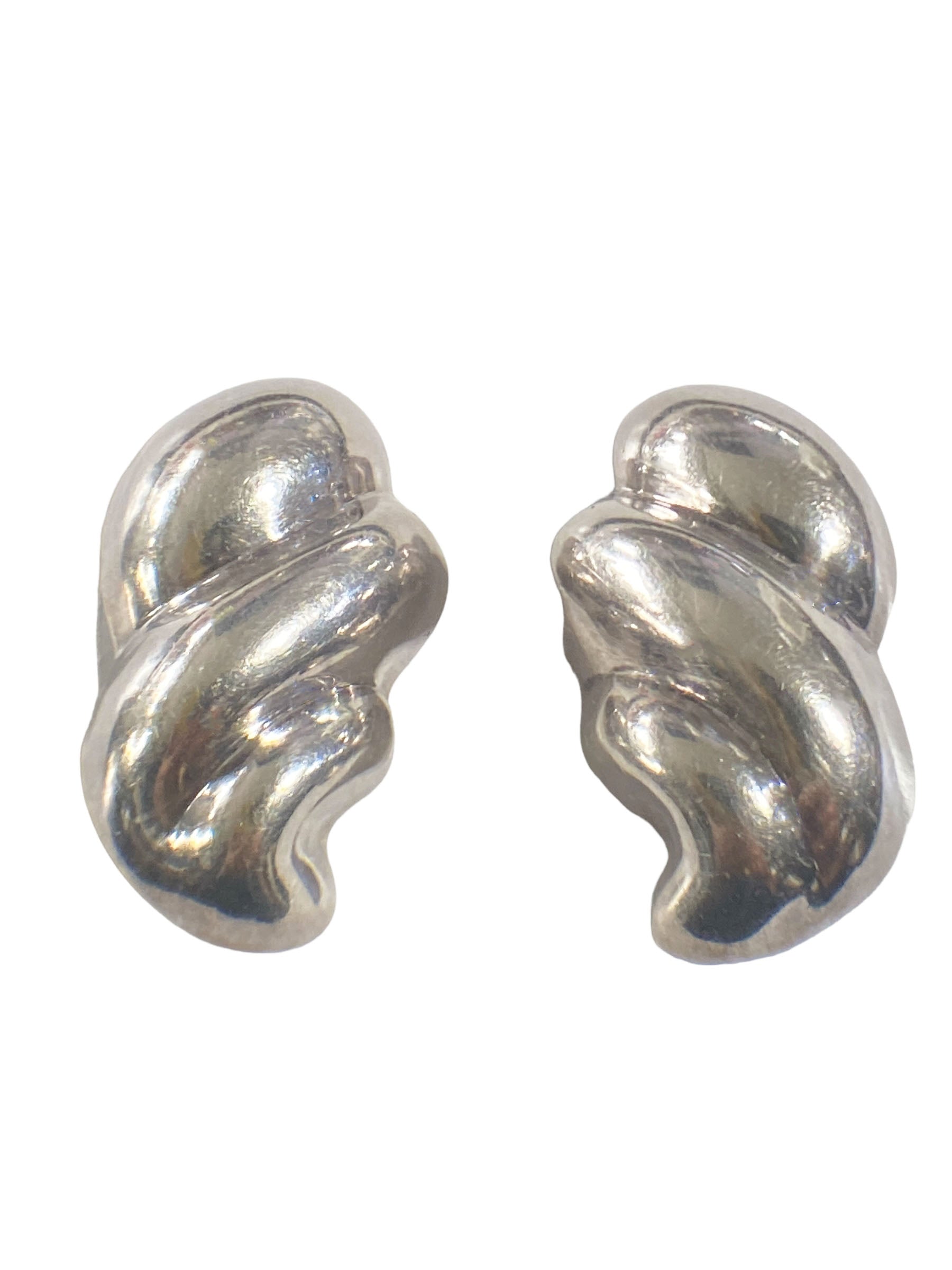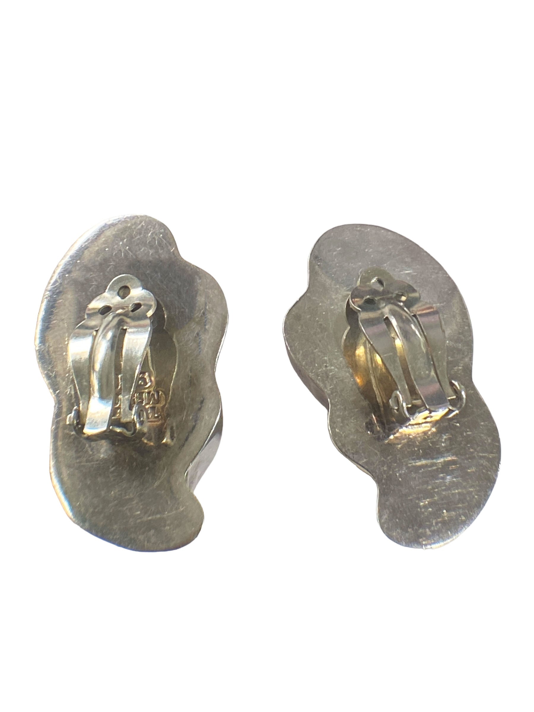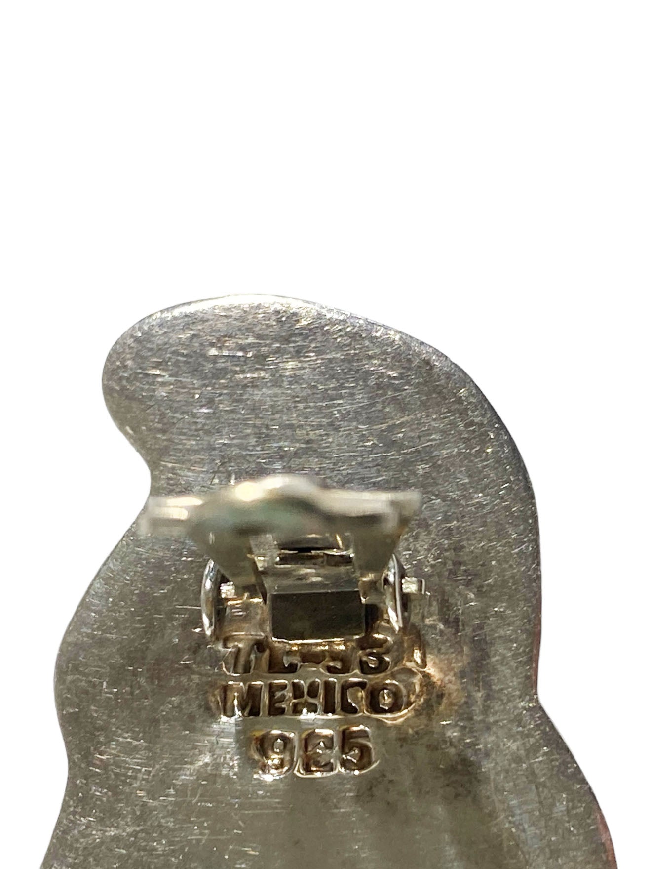 #5890 VTG Modernist Taxco Sterling Silver Mexican Clip-On Puffy Earrings