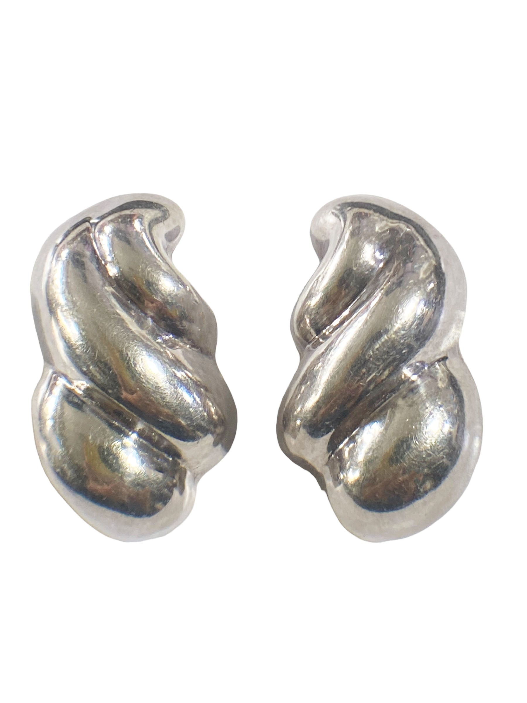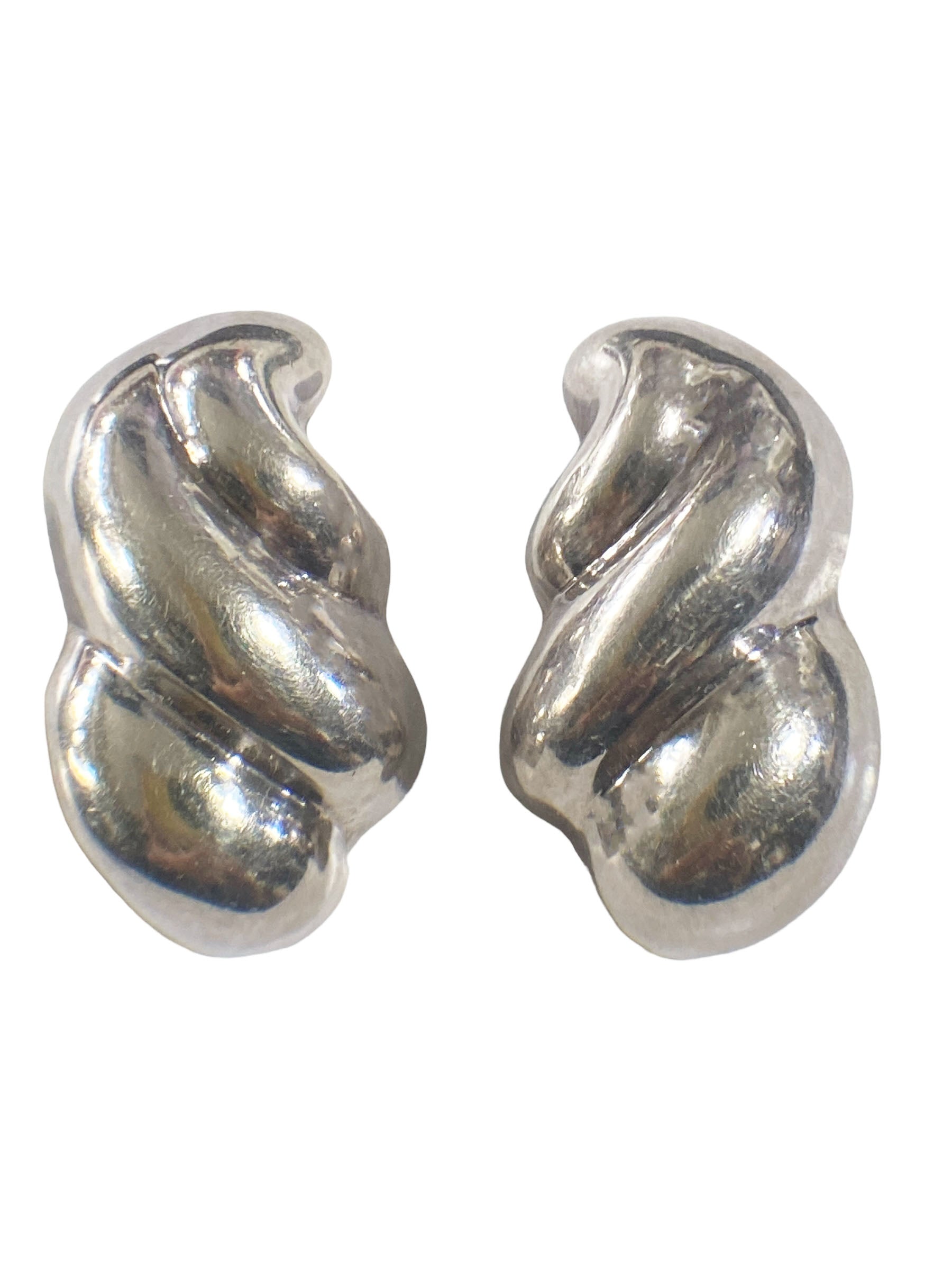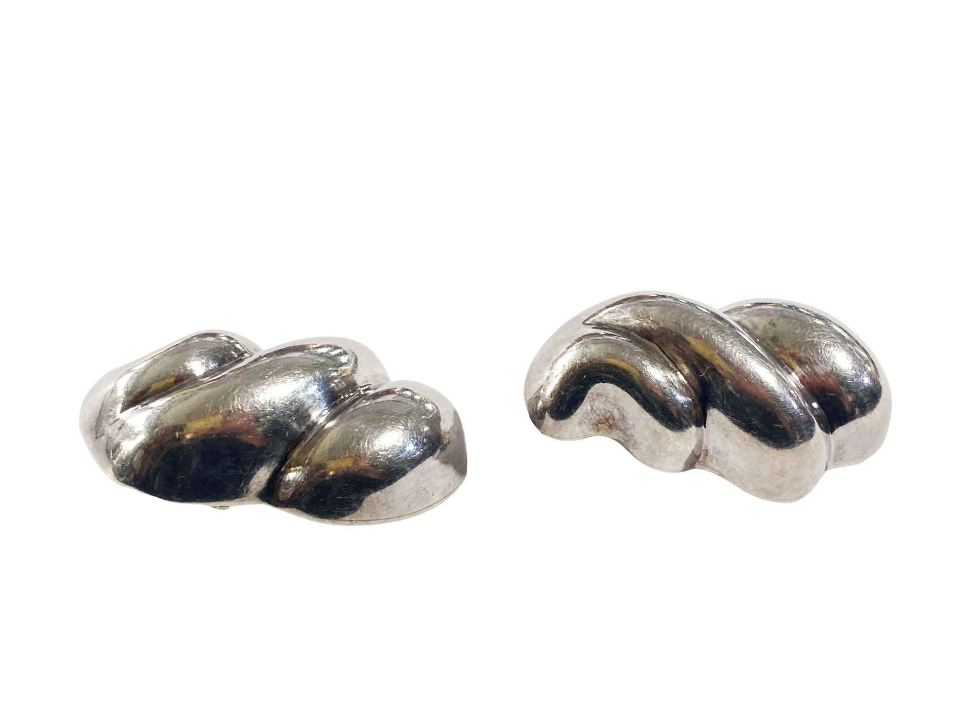 #5890 VTG Modernist Taxco Sterling Silver Mexican Clip-On Puffy Earrings