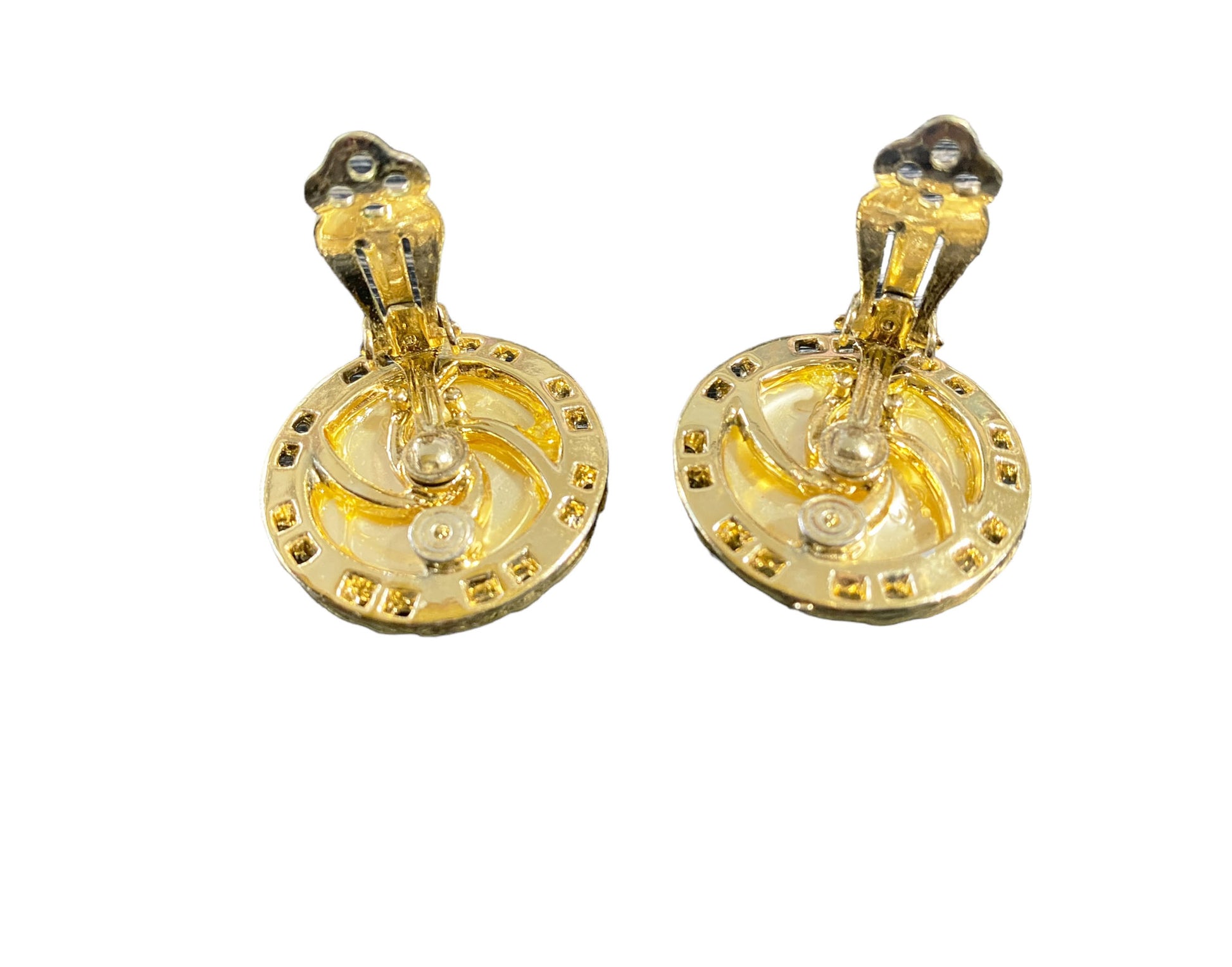 #5891 Vintage Lisner Round large faux pearl, Chain surround, Clips Earrings