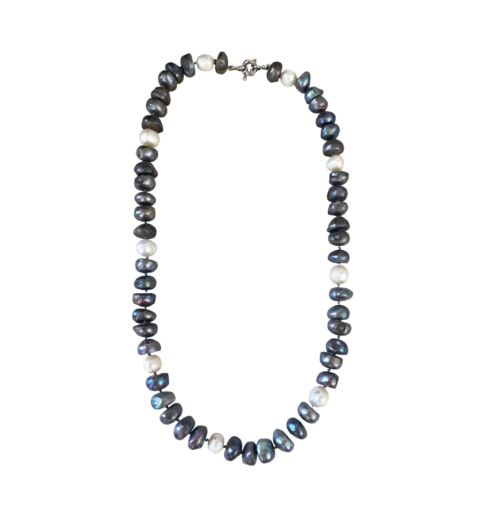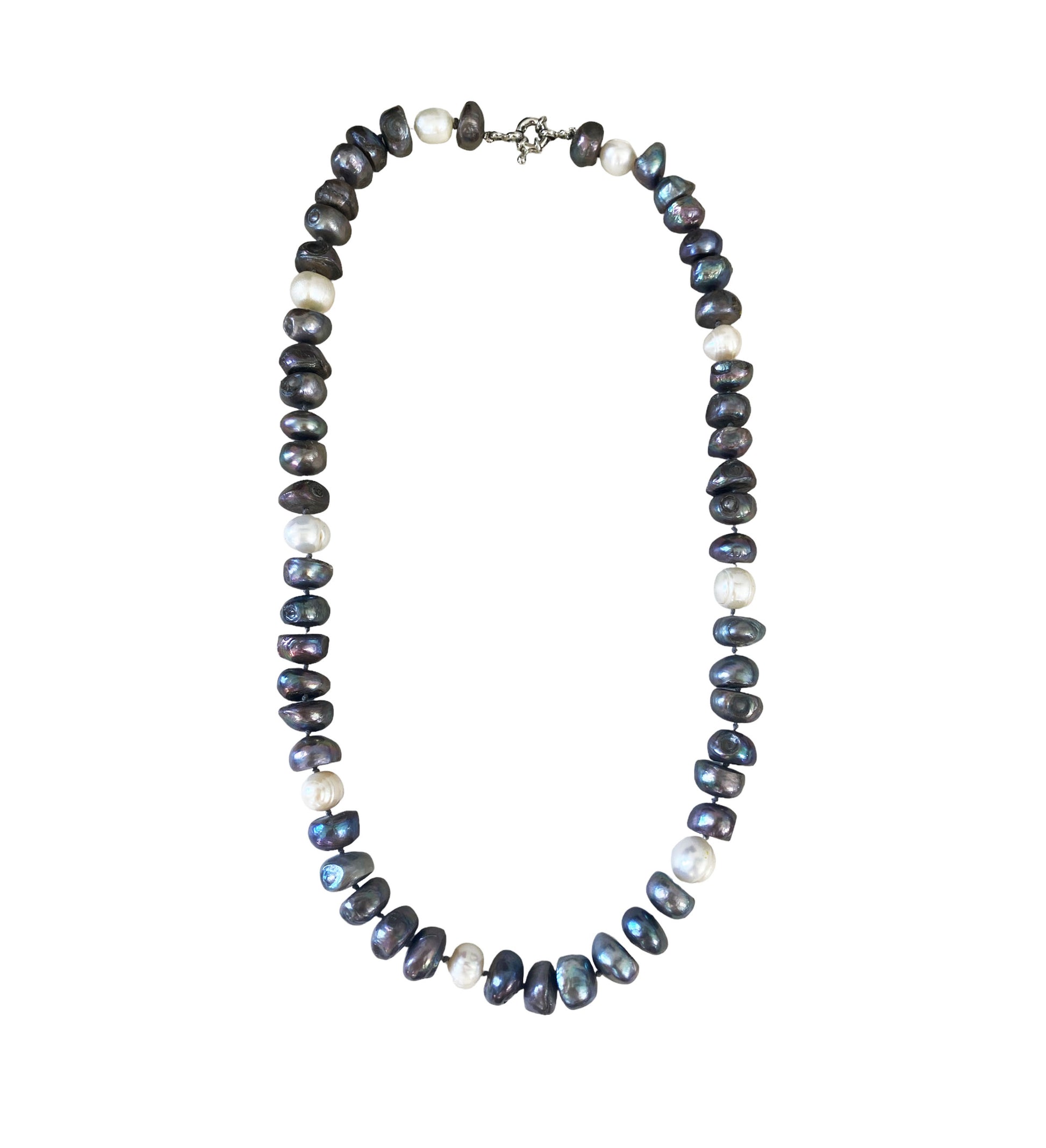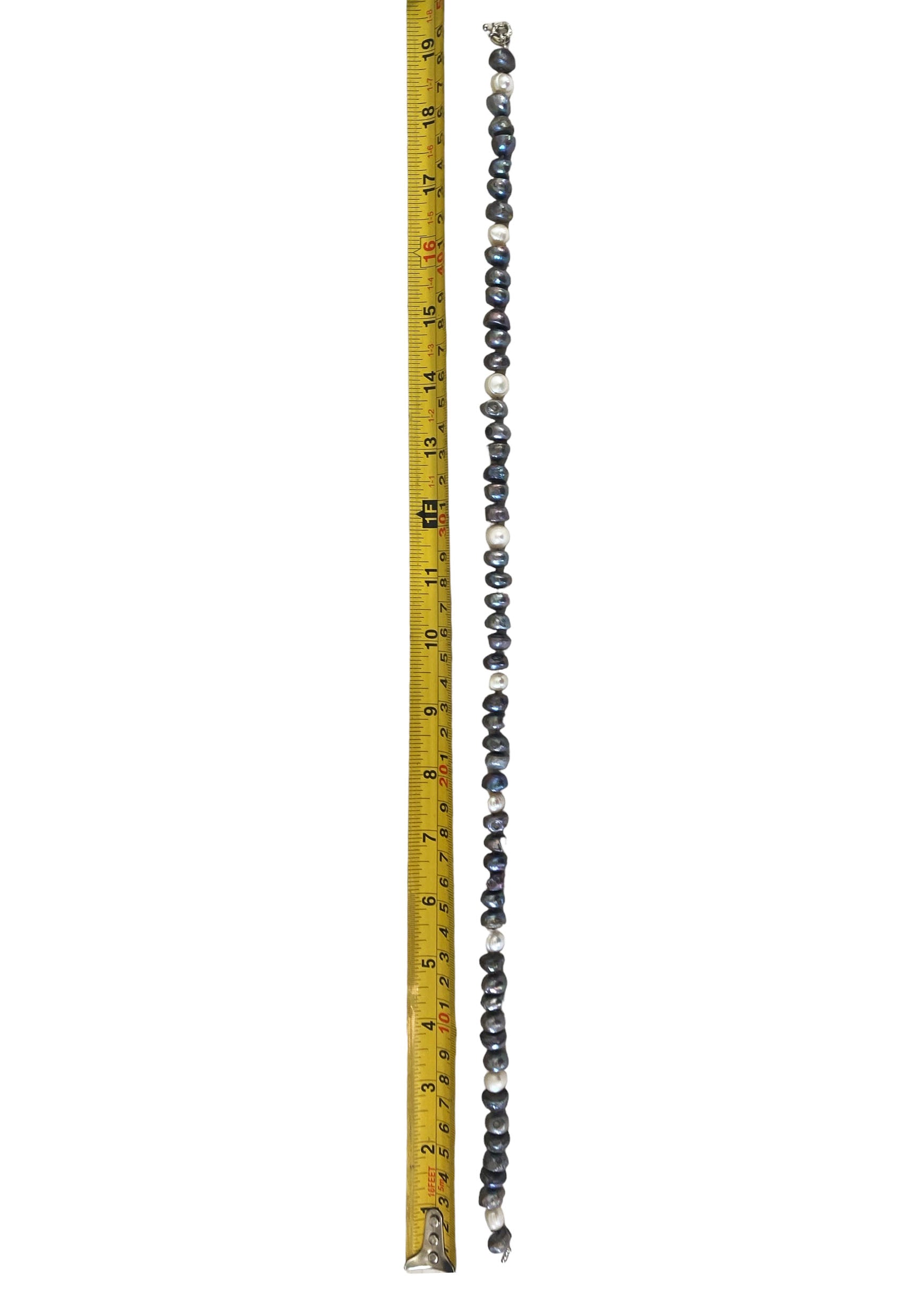 #6134 Vintage Black White Blue Grey 19.5" Long Freshwater Baroque Necklace Pearls