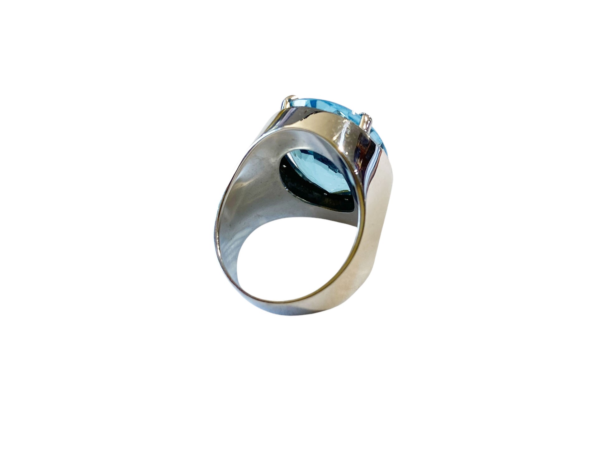 #6251 18k White Gold Ladies Swiss Blue Topaz and Diamond Ring Finger Size 9