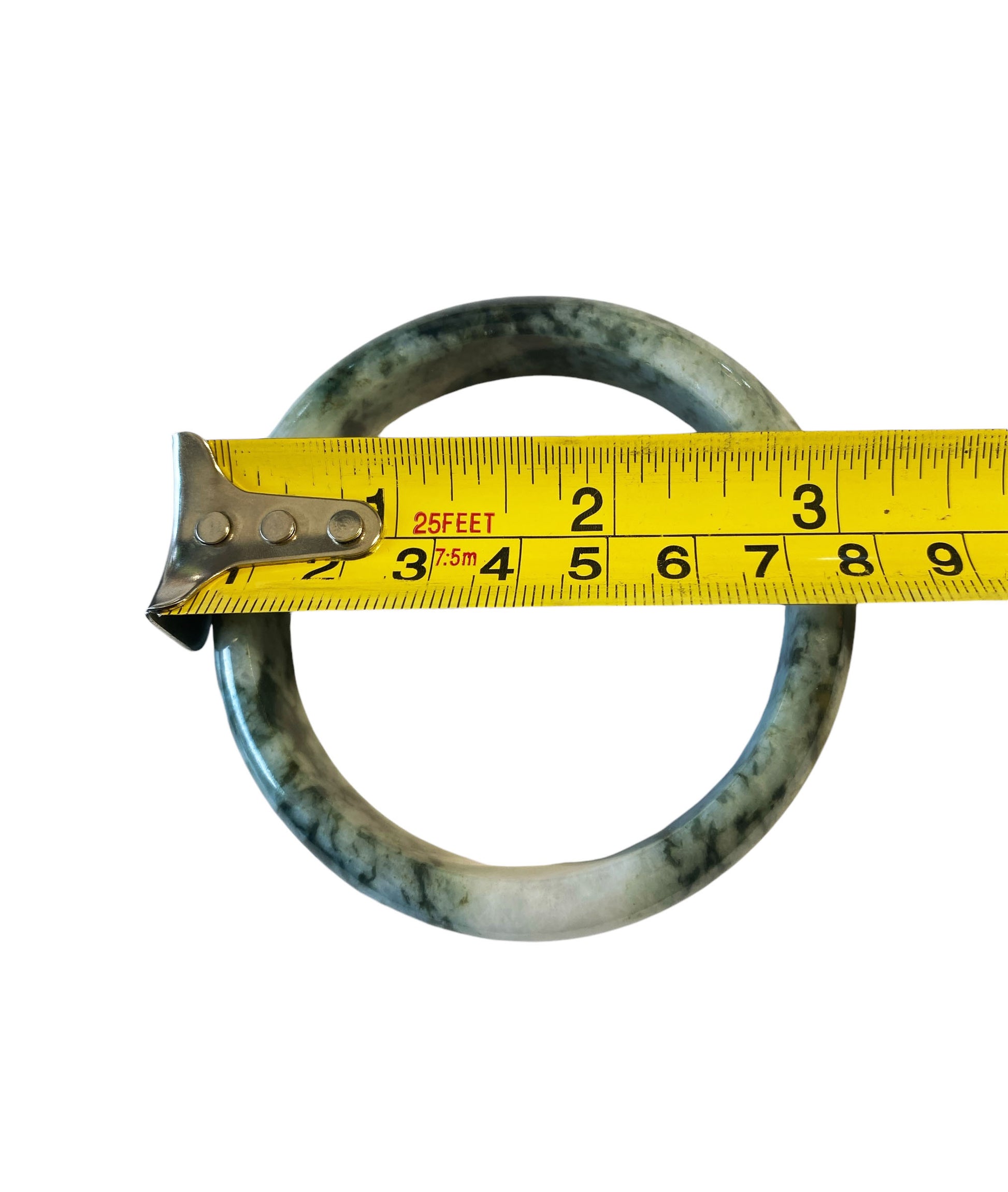 #6253 Mottled gray & Green Jadeite Jade Bangle Bracelet 3.25" Diameter